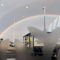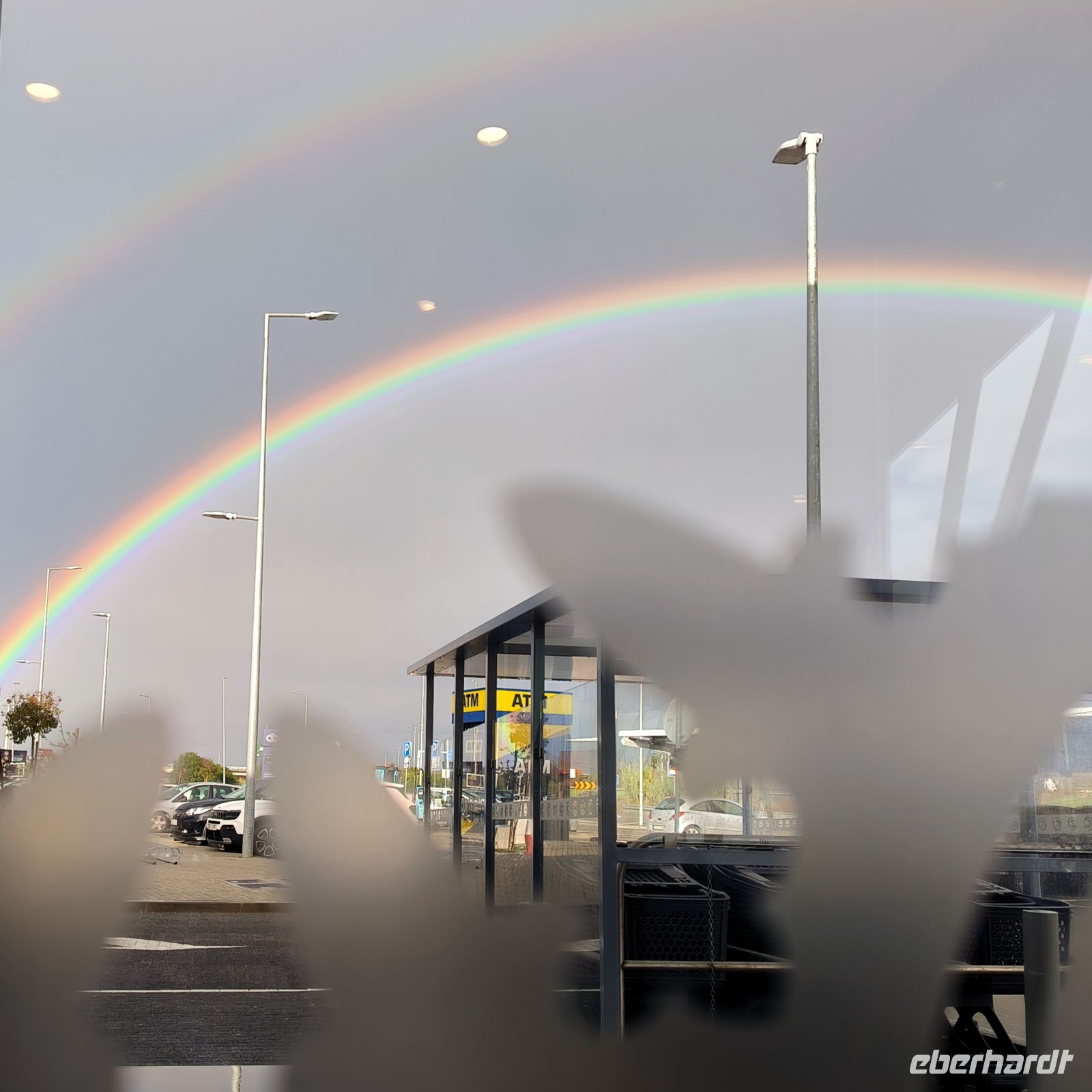 Wem auf der Weiterfahrt nicht die Augen zufallen, der kann noch die Korkeichen am Straßenrand sehen oder wiederum einen Regenbogen, der keine Halluzination ist.