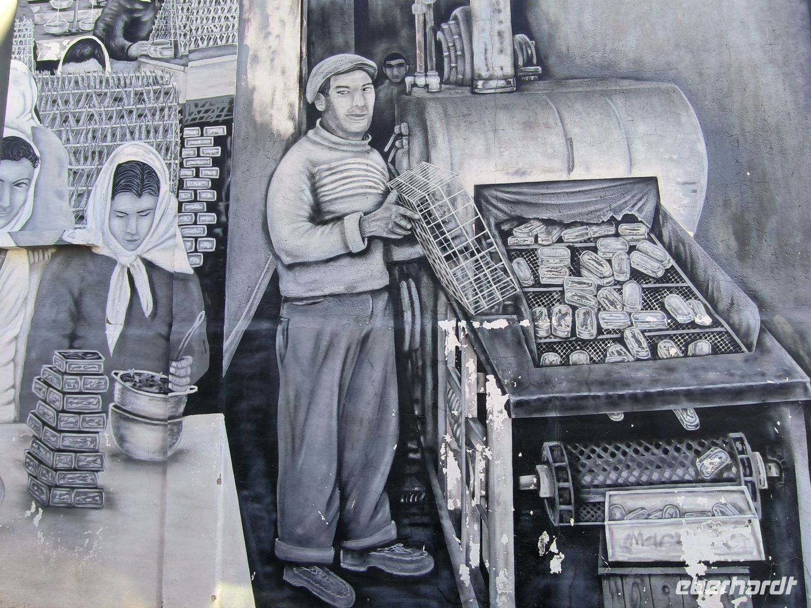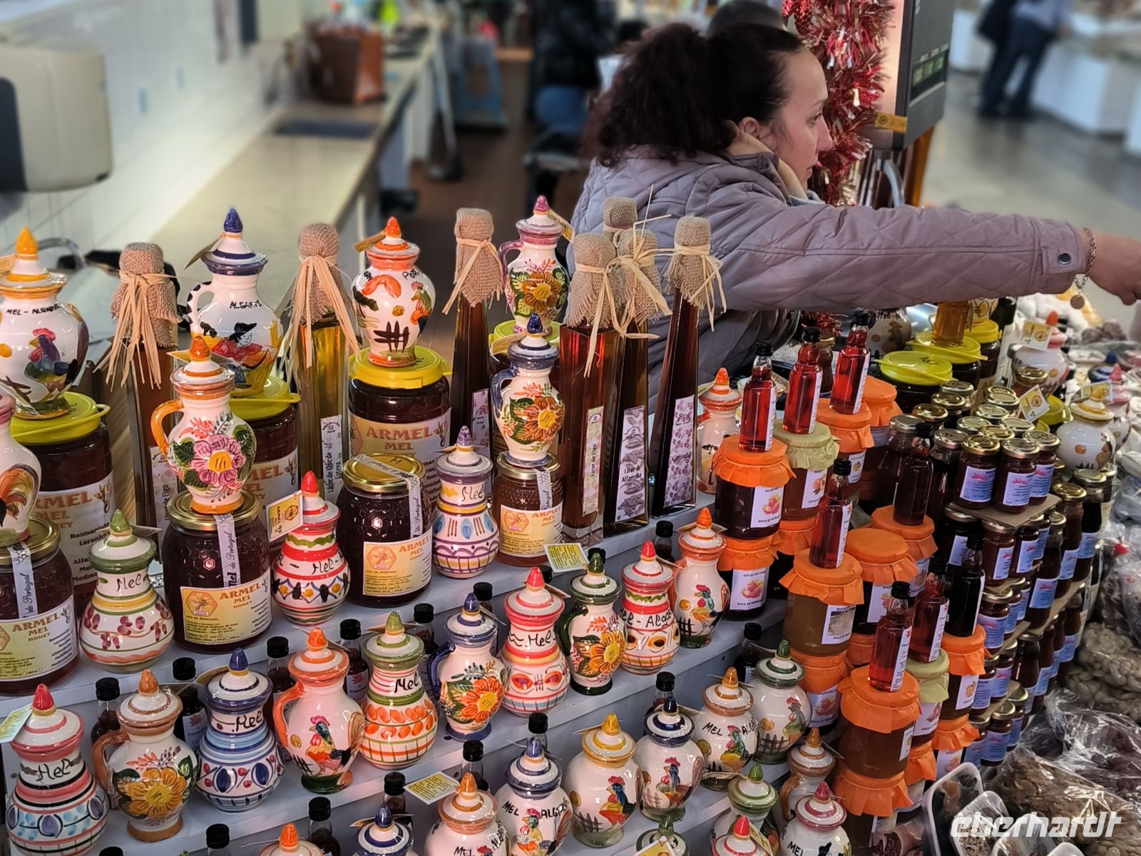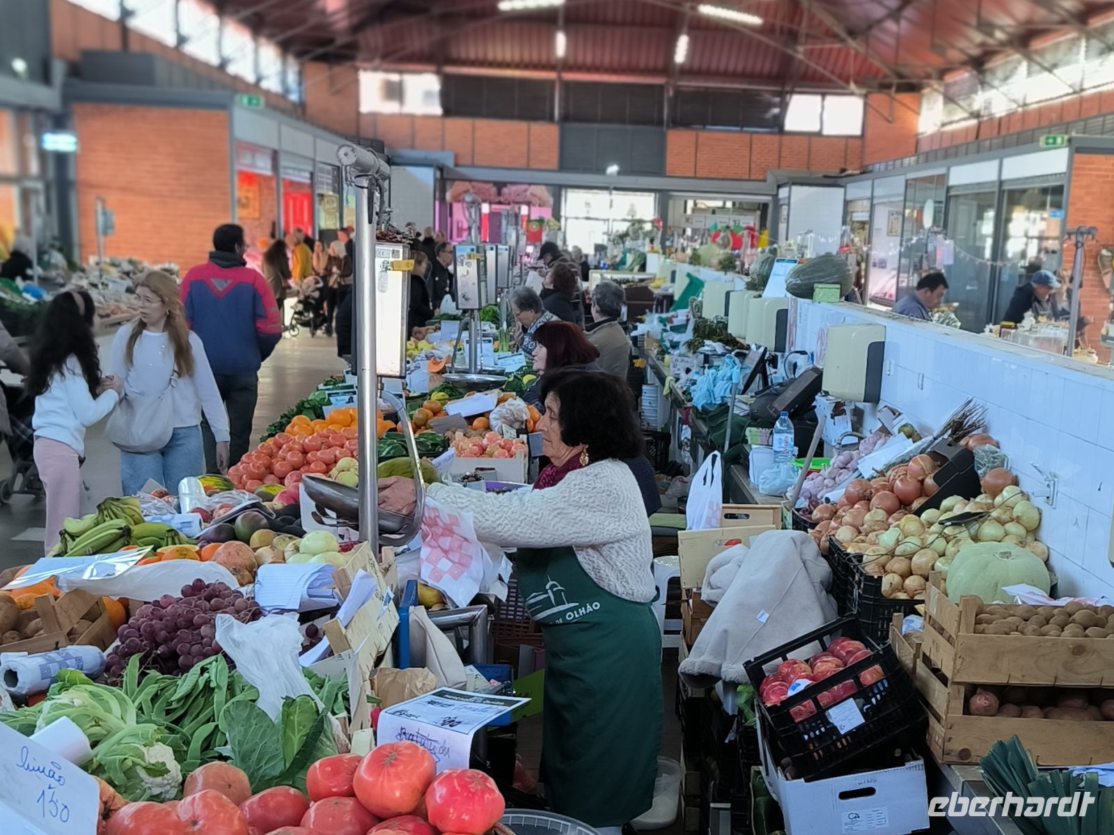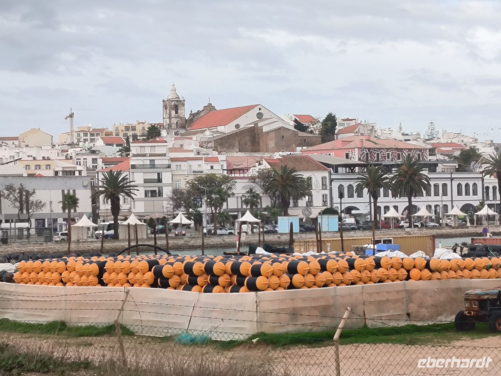 Unser Weg führt weiter nach Olhão, die Stadt wird auch Würfel- oder Kubenstadt genannt. Am größten Hafen der Algarve steht die rote Markthalle mit dem bekannten Fischermarkt, wo heute leider kein Fischer seinen Fang präsentiert. Aber Meersalz, das rote Piri-Piri-Gewürz oder Oliven können wir erstehen.
