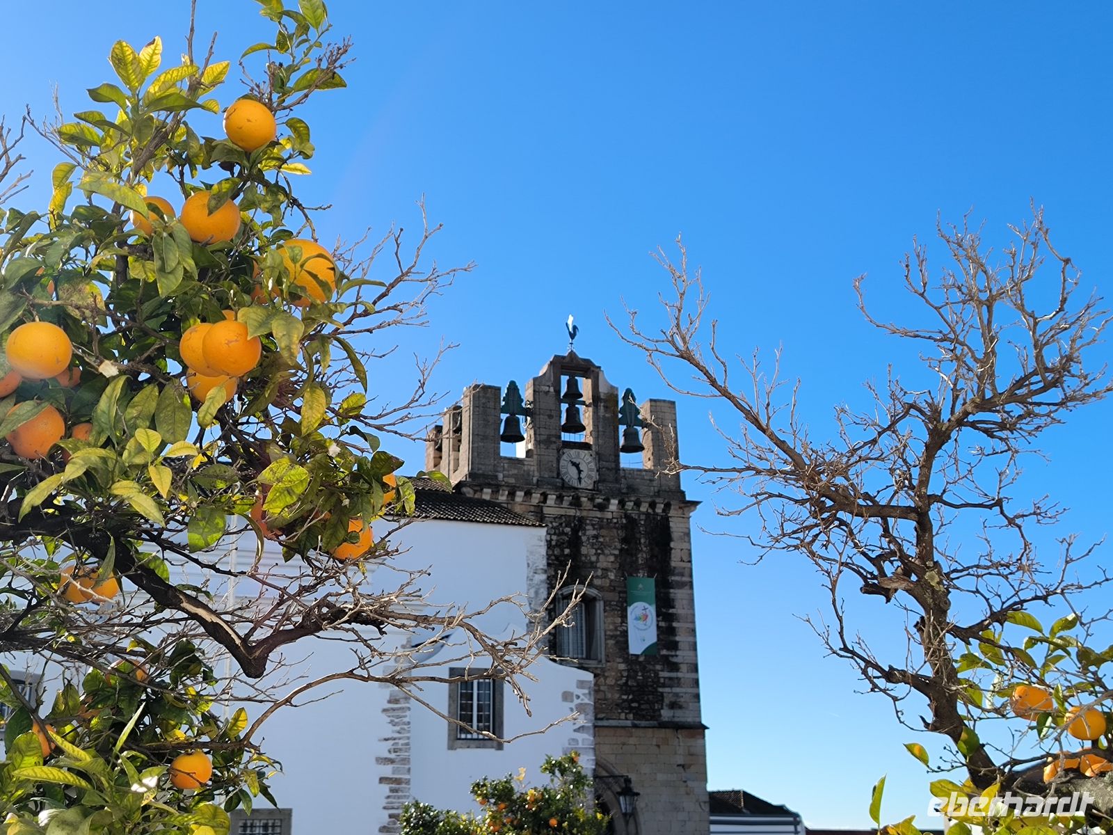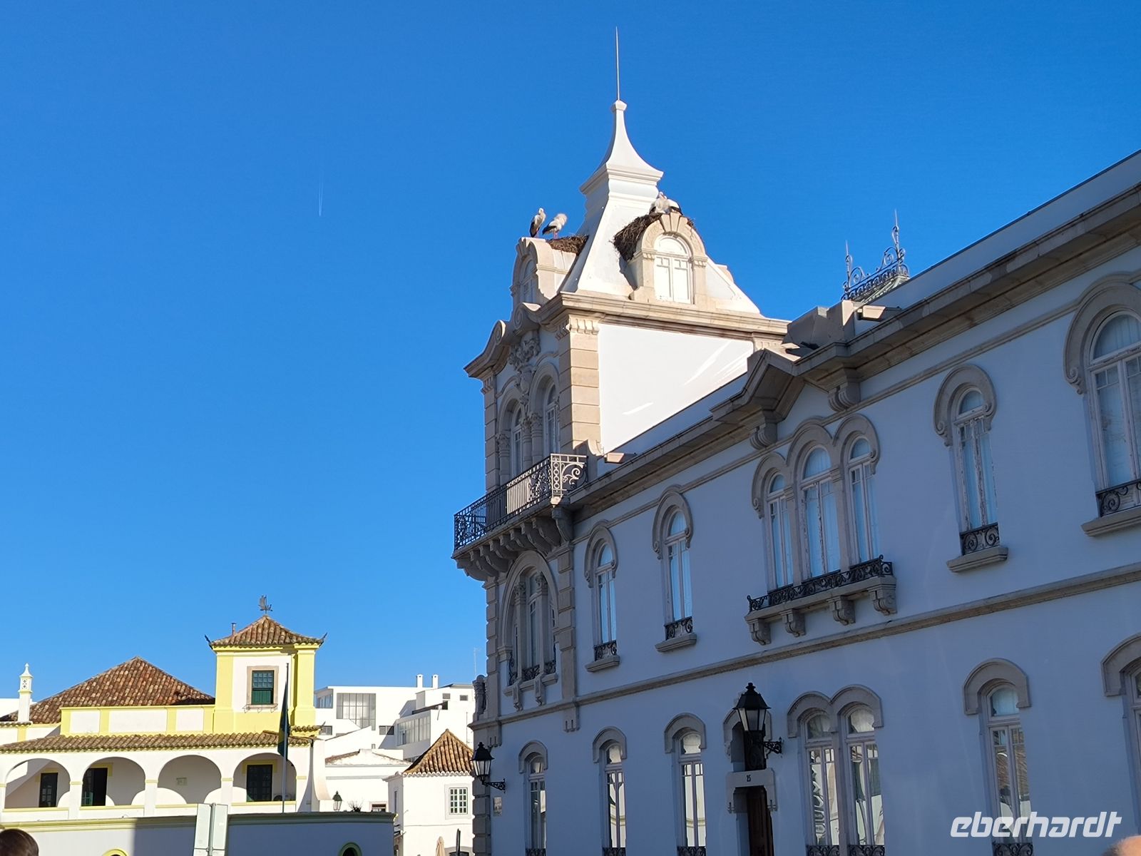 Unser Ausflug heute wird uns bis zur spanischen Grenze führen. Doch zuerst besuchen wir Faro, die Provinzhauptstadt der Algarve, mit Resten der Stadtmauer. Von außen besichtigen wir auch die Karmeliterkirche Nossa Senhora do Carmo. Schon unterwegs haben wir viele Storchennester gesehen, aber auch hier in der Stadt, auf den schönsten Gebäuden, haben sich die Zugvögel eingenistet und klappern mit ihren Schnäbeln. Tatsächlich überwintern Störche vermehrt an der Algarve, da sie hier dank mildem Klima, Müllhalden und landwirtschaftlichen Flächen genug Futter finden, um sich den weiten Flug in die afrikanischen Winterquartiere sparen zu können.