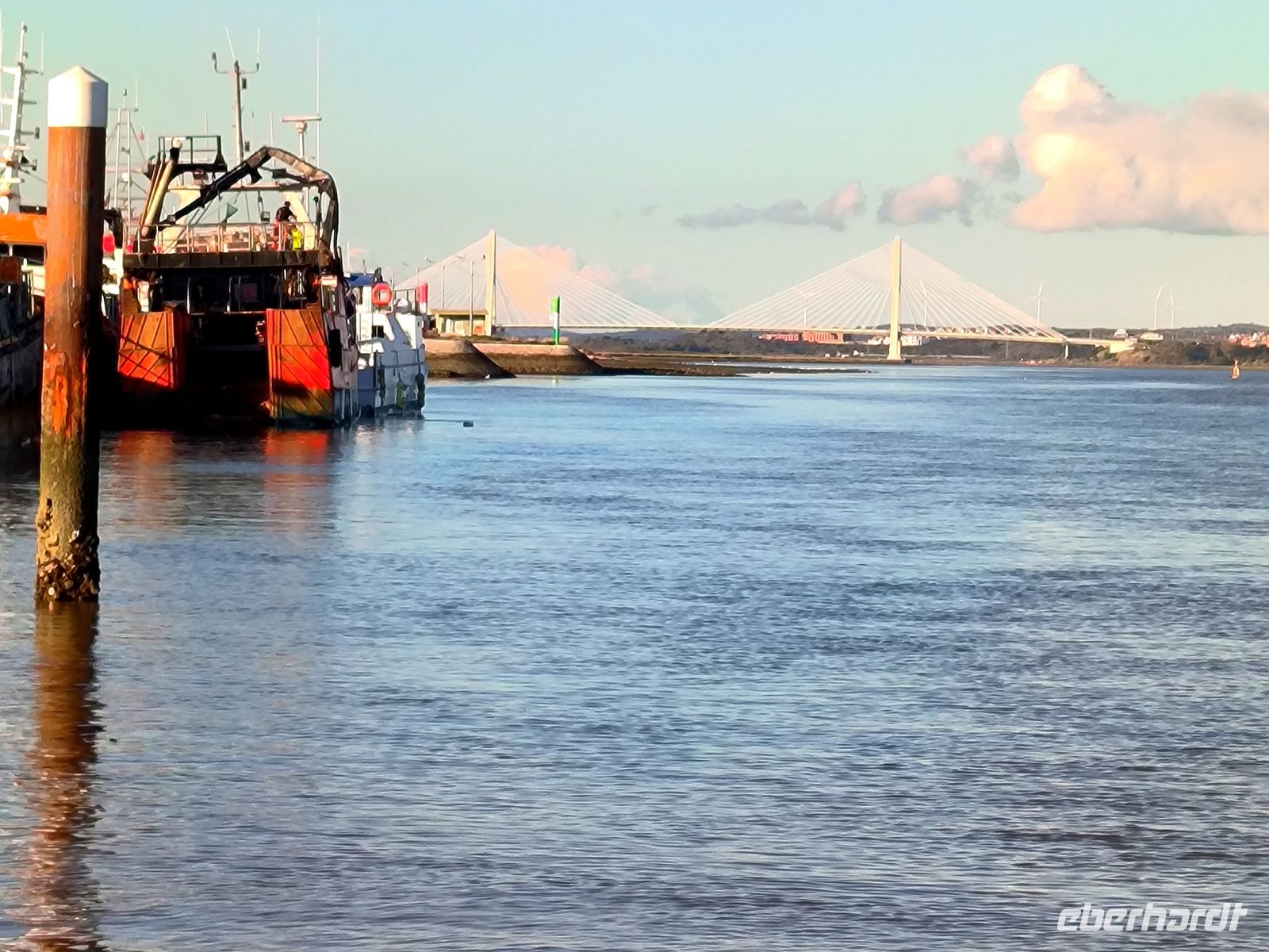 Die Fahrt Richtung Osten geht weiter nach Vila Real de Santo António, welches im 18. Jhd. am Fluss Guadiana künstlich angelegt wurde. Eine große Hängebrücke führt hinüber nach Spanien. Wir winken dem (hier unbeliebten) Nachbarland zu.