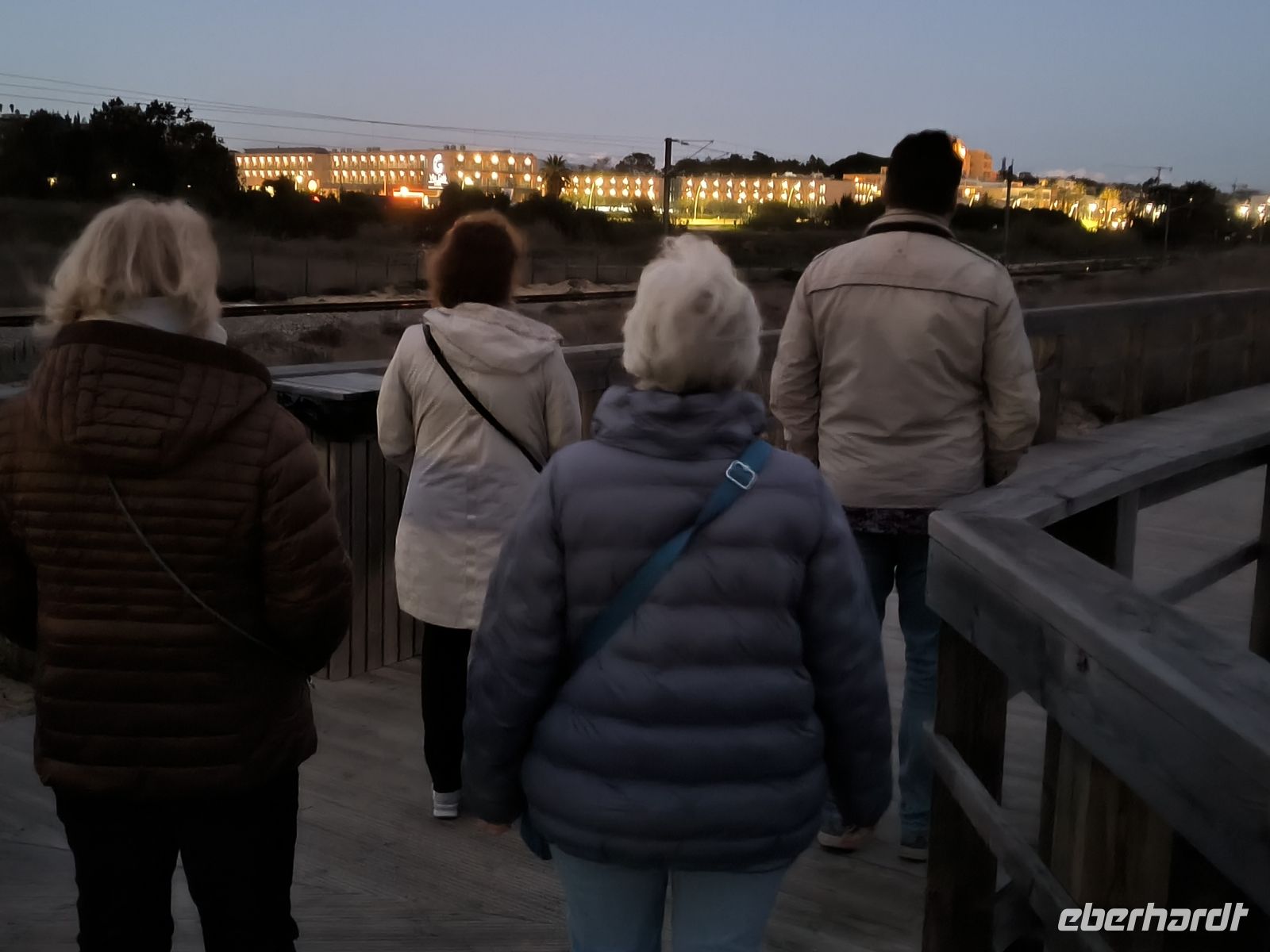 Ein kurzer Fotostopp auf der Forte Santa Catarina gibt den Blick frei auf die Hafenstadt Portimão und den Strand Praia da Rocha. Mit vielen Eindrücken kehren wir ins Hotel zurück. Den Abend beschließen wir in der Hotelbar, wo wir als relativ große Gruppe die einzige Bardame zu Höchstleistungen herausfordern.