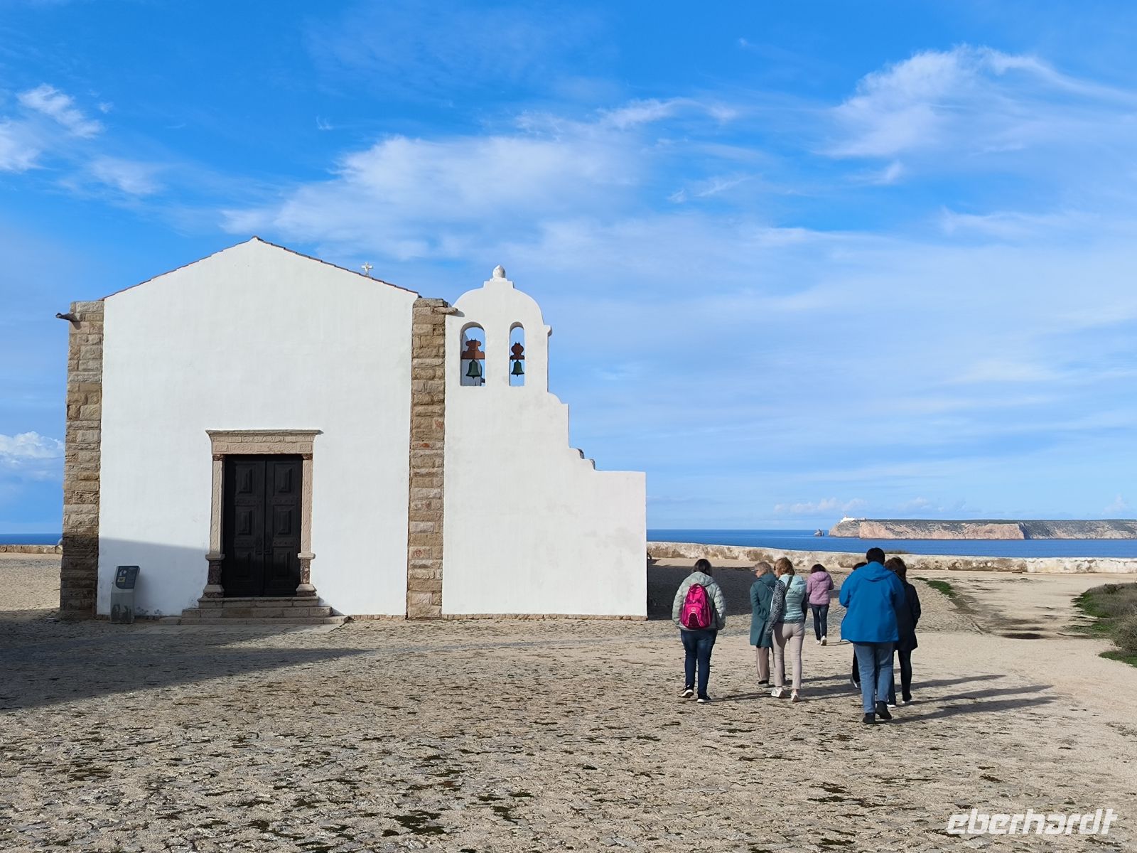 Dann kommen wir nach Sagres, der südwestlichsten Siedlung Portugals und heute ein Surferparadies. Wir besichtigen die Reste der von Infante Dom Henrique alias Heinrich dem Seefahrer gegründete Seefahrerschule in der Ruine der Festung von Sagres. Er war der Initiator der portugiesischen Entdeckungsreisen im 15. Jh., die entlang der westafrikanischen Küste führten und Portugal zur Seemacht machten. Wir umrunden die Festung und haben atemberaubende Ausblicke auf das weite Meer sowie das nahegelegene Kap São Vicente. Den absolut südwestlichsten Punkt Kontinentaleuropas besuchen wir anschließend. Leider ist die „letzte Bratwurst vor Amerika“ heute nicht geöffnet. Aber an diesem bedeutsamen Punkt muss natürlich ein Gruppenfoto sein.