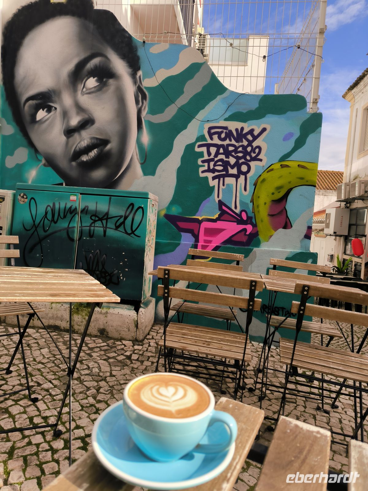 Bom dia, Portugal! Am Ausgang erwartet uns unsere örtliche Reiseleiterin Elisabeth. Sie kommt aus Österreich und lebt seit vielen Jahren an der Algarve. Unsere Busfahrt nach Lagos vermittelt uns erste Eindrücke der Landschaft. Unterwegs machen wir einen Stopp am Supermarkt, damit wir uns mit ein paar Sachen versorgen und den portugiesischen Kaffee probieren können. Ein phantastischer Regenbogen begrüßt uns.