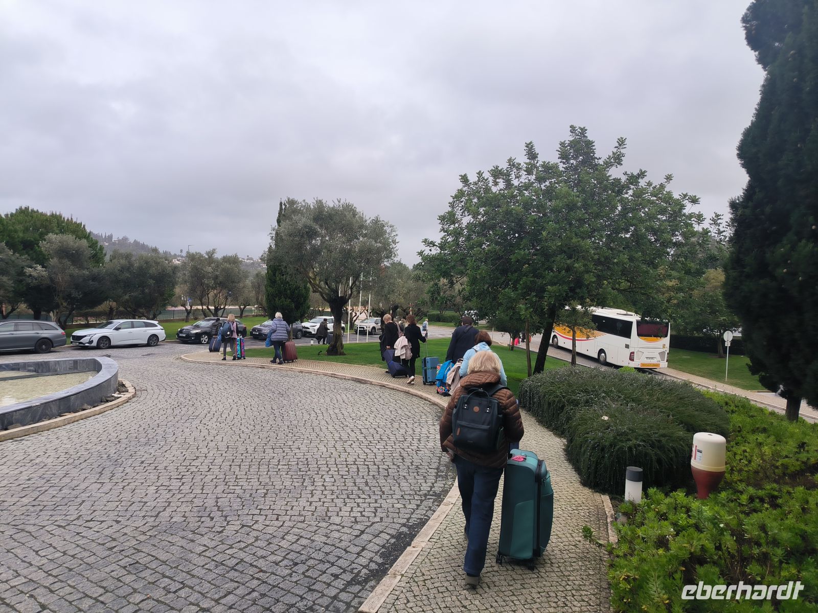 Für die Dresdner beginnt die Reise mit Aufregung. Nachts kam die Info: Der Dresdner Zubringer-Flug wurde gecancelt. Wir wurden von der Lufthansa umgebucht über Leipzig – Frankfurt – Kopenhagen. Dieser Plan findet keine große Zustimmung. Alle 7 Dresdner Gäste fahren also zunächst mit einem Transfer 4:00 Uhr über Kesselsdorf nach Leipzig, um dort den Zug um 5:28 Uhr zu bekommen, 9:00 Uhr Ankunft Frankfurt Flughafen. Reiseleiterin Heike hat den Ehrgeiz, nun doch schneller ans Ziel zu kommen. Also bittet sie eine Dame aus der Gruppe, die schon dort war, vorzufühlen, ob noch eine Chance besteht, dass wir den geplanten Flug schaffen. Zu allem Übel standen auch die Gepäckbänder still. Mit etwas Hektik, Überredungskunst und dann auch Ellenbogen an der Sicherheitskontrolle schaffen wir es tatsächlich in den Flieger nach Faro. Große Erleichterung! So treffen wir uns dann alle in Faro am Kofferband. Ein Koffer fehlt, er wird einen Tag später ans Hotel geliefert.