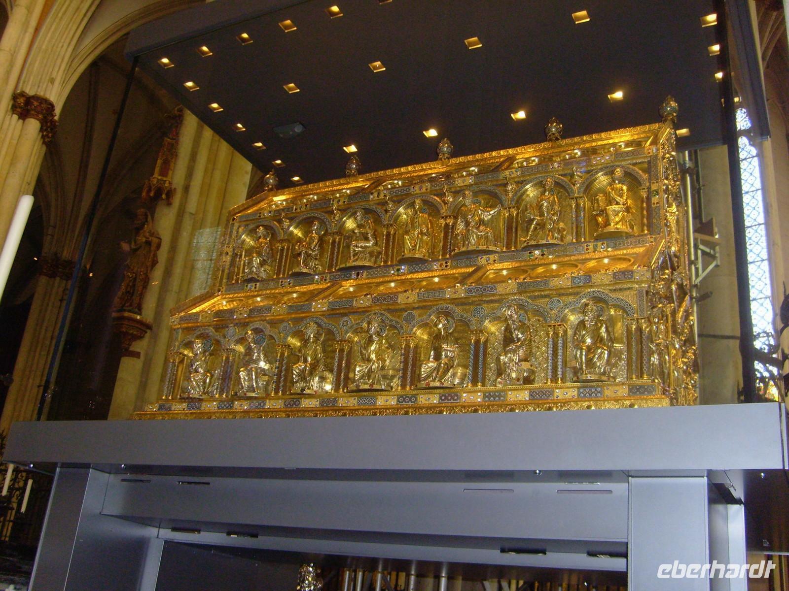 Noch in der Nacht, gegen 1.00 Uhr legte unser Schiff in Köln am Konrad-Adenauer-Ufer an. Wer munter war, oder munter geworden ist, sah einen herrlich beleuchteten Dom, in blau die Kölner Oper, die Hohenzollernbrücke und am gegenüberliegenden Ufer den Gebäudekomplex des Privatsenders RTL. Köln die Medienstadt begrüßte uns hell erleuchtet. Nach dem Frühstück begrüßten uns um 9.15 Uhr die Stadtführer von Köln. Entlang des Rheinufers ging es in Richtung Dom. Ein gewaltiger Bau, der die gesamte Innenstadt beherrscht. Vom Inneren des Domes waren die Gäste beeindruckt. Danach gingen wir noch zum Heinzelmännchen-Brunnen, zu Dünnes und Scheel, zur Glockengasse 4711 und vorbei am historischen Rathaus und St. Michael zurück zur Rheinpromenade an unser Schiff.