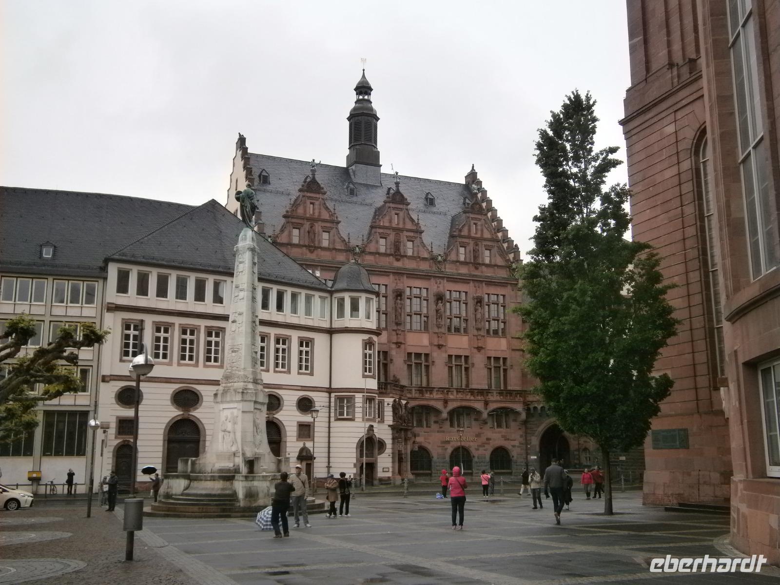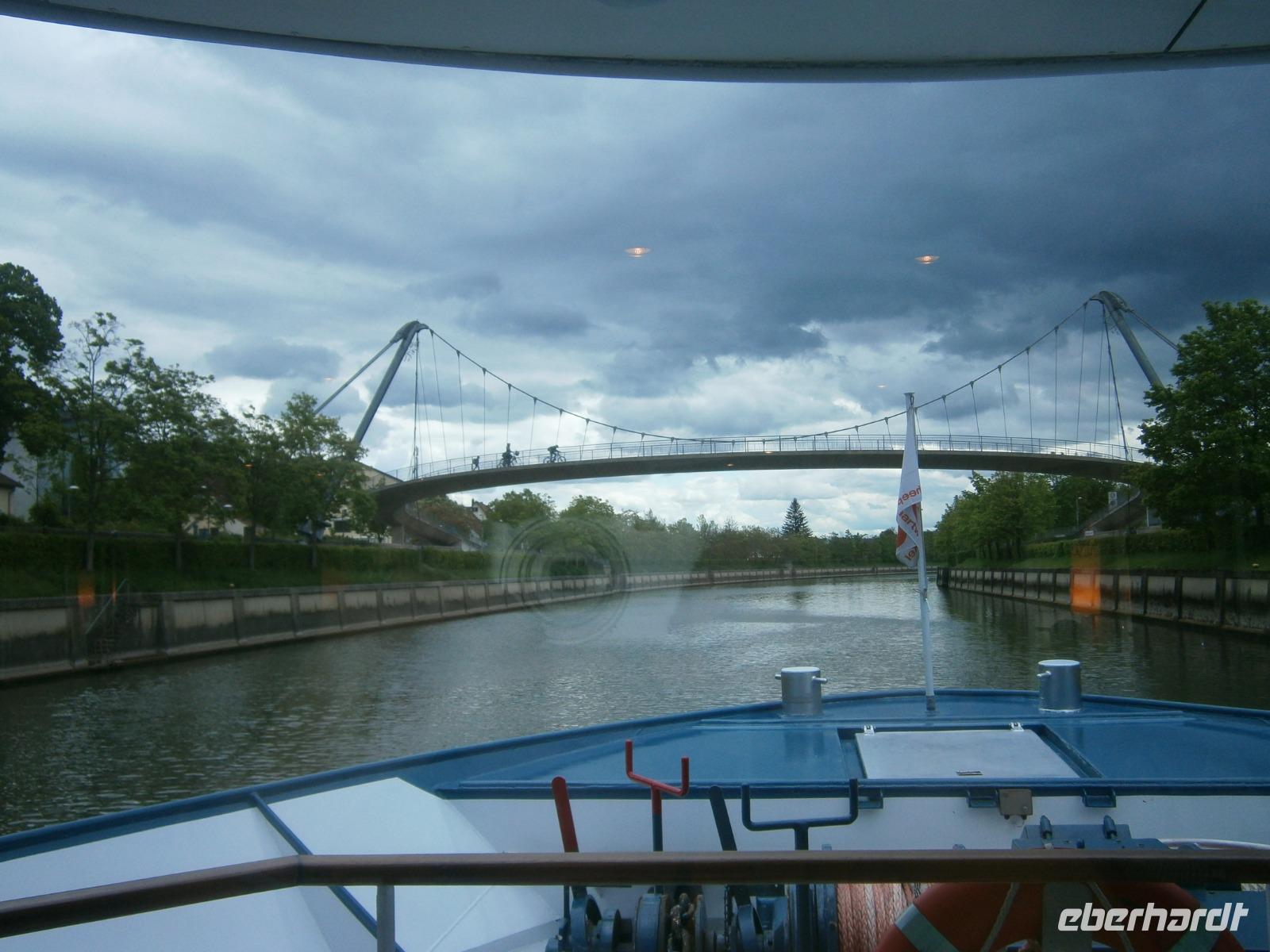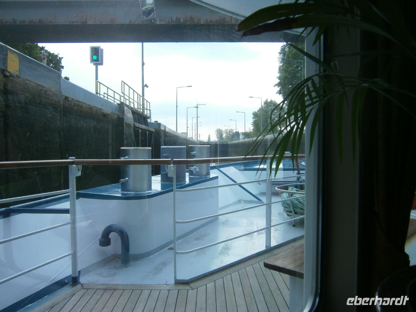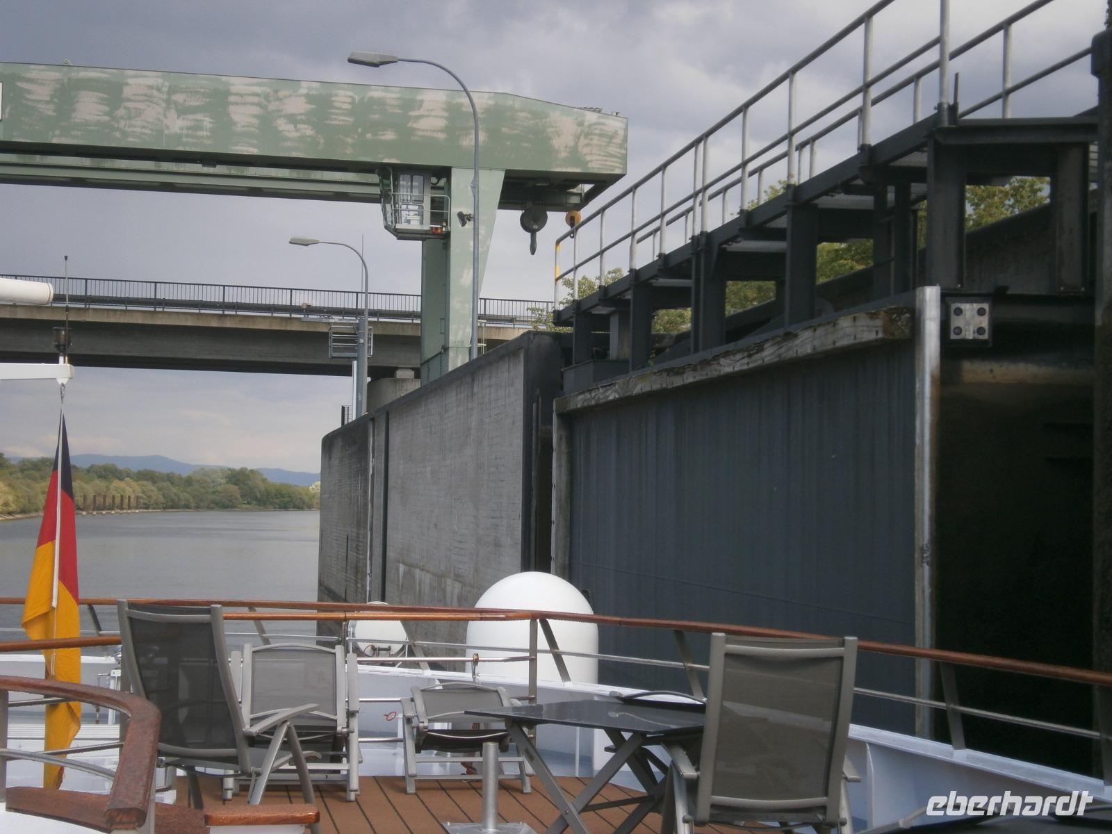 Unser Schiff war inzwischen auf dem Main angekommen. Wir widmeten dieser Stadt unsere Aufmerksamkeit während einer Rundfahrt durch die sehr unterschiedlich geprägten Stadtviertel und einem anschließenden Spaziergang zum mittelalterlichen Stadtkern, dem Römer, mit seinen Fachwerkhäusern und dem prächtigen Rathaus. Am Nachmittag passierten wir auf der weiteren Fahrt auf dem Main zahlreiche Schleusen.