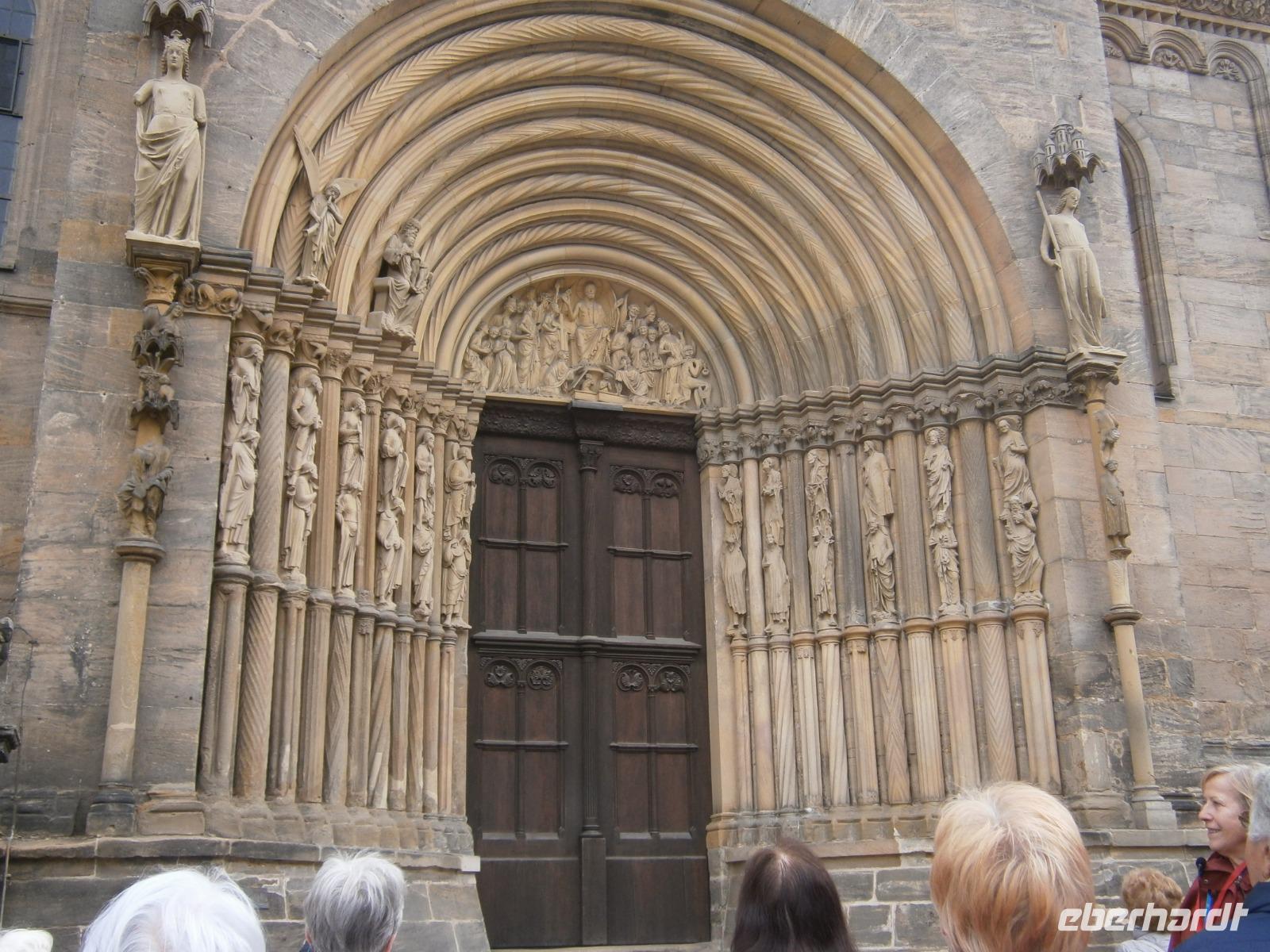 Nach einer Fahrt entlang des Steigerwaldes erreichten wir die Kaiser- und Bischofsstadt Bamberg. Ein Transferbus brachte uns in die Nähe des Wasserschlosses, wo uns die Stadtführer schon erwarteten, um uns die Schönheit ihrer mittelalterlichen Stadt mit ihrem „Klein- Venedig", dem alten Rathaus am Fluss, großen Kirchen und Fachwerkhäusern zu zeigen. Besonders sehenswert ist der Dom mit dem berühmten „Bamberger Reiter" und dem sogenannten Bamberger Altar von Veit Stoß. Nach dem Stadtrundgang ließen sich Bierliebhaber das typische „Schlenkerla"-Bier munden. Nachmittags fuhren wir nun auf dem Main- Donau- Kanal in Richtung Nürnberg.