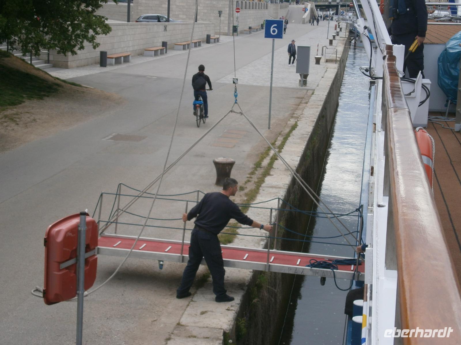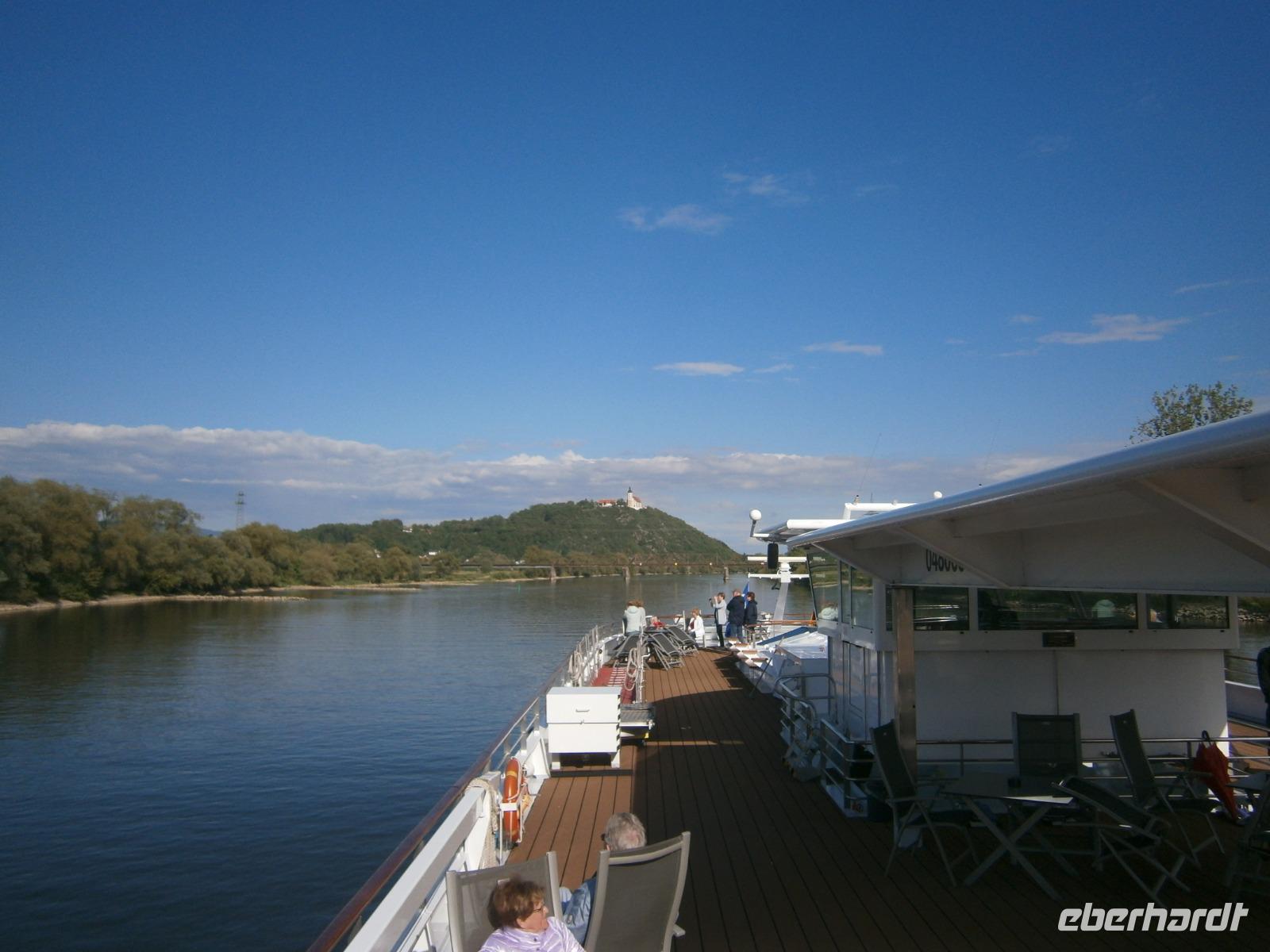 Heute führte uns der Weg durch das landschaftlich liebliche Altmühltal, am Donaudurchbruch und dem Kloster Weltenburg vorbei. In Kelheim erreichten wir die Mündung der Altmühl in die Donau. Schon von unserer Anlegestelle hatten wir einen fantastischen Blick auf die Befreiungshalle, die einem runden Tempel ähnelt. Während der Stadtführung erfahren wir dann, dass sie nach dem Vorbild des Pantheon gebaut wurde und an die Rolle Deutschlands in den Napoleonischen Kriegen erinnern soll. Die traditionsreiche Herzogsstadt Kelheim mit ihren Renaissancefassaden und mittelal- terlichen Stadttoren strahlt Gemütlichkeit aus. Zu Mittag erwartete uns die Crew wieder mit einem wohlschmeckenden 3- Gänge -Menü. Am Nachmittag konnten wir, mit viel Spaß, unter Mikes Fittichen das Falten von Servietten zu Kerzen, Fächern, Lotosblüten, Kronen und anderen kunstvollen Formen lernen.