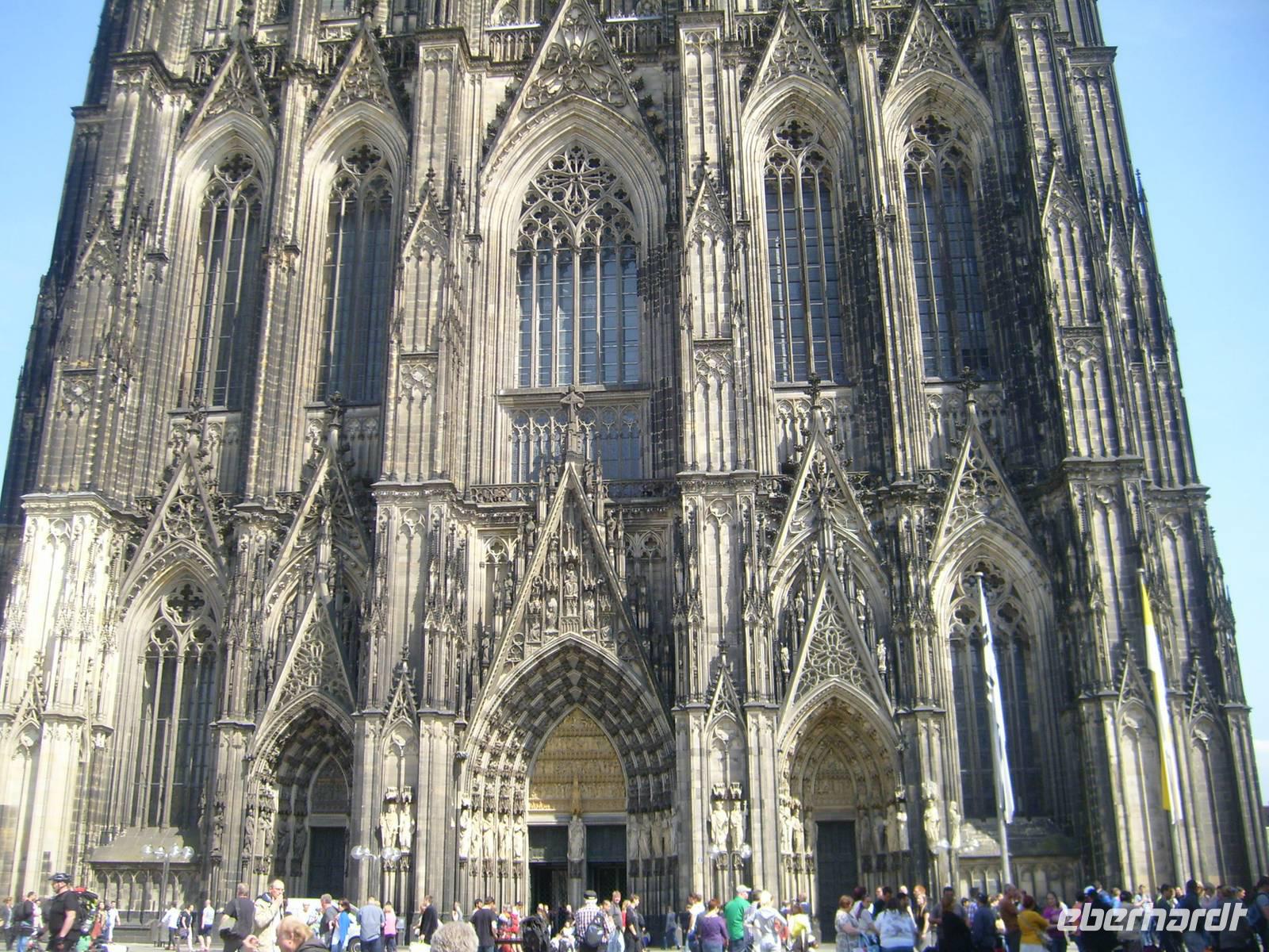 In den frühen Morgenstunden legen wir in Zons an. Von dort geht es mit dem Bus nach Köln. Die MS Rigoletto fährt weiter und wird gegen 18.00Uhr in Köln sein. Auf dem Landweg geht es schneller. In 30 Minuten sind wir mitten in Köln in der Komödienstraße, wenige Schritte vom weltberühmten Dom entfernt. Die Stadtführer stehen bereit und mit den Gästen von Panoramica zusammen bilden wir eine „Sonntagsgruppe“ und 3 weitere Gruppen. Die Sonntagsgruppe hat sich bewährt für Gäste die nicht so gut zu Fuß sind. Zuerst besuchen wir das Wahrzeichen von Köln und UNESCO Weltkulturerbe den Dom. Danach geht es durch die Altstadt von Köln.