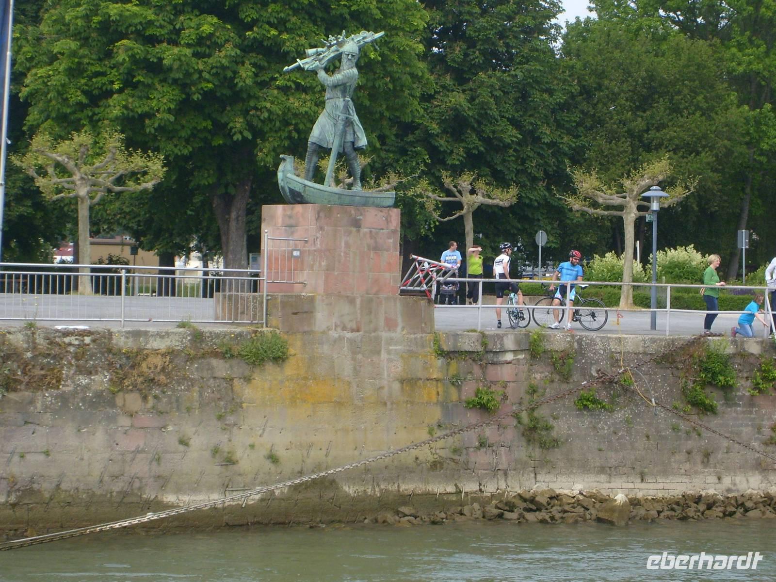 In der Nacht sind wir an Wiesbaden und Mainz vorbei gefahren. Wir fahren vorbei an Worms. Gegen 11.00Uhr sehen wir das Denkmal von Hagen von Tronje. Der hier am Rhein den Schatz der Niebelungen versenkt haben soll. Im Dom zu Worms leitete Luther die Glaubensspaltung der Kirche ein. Die Einwohner von Worms übernahmen den evangelischen Glauben, waren aber Repressalien ausgesetzt. Im Zentrum der Stadt befindet sich ein großes Denkmal mit Persönlichkeiten, die an den Reichstag zu Worms erinnern.