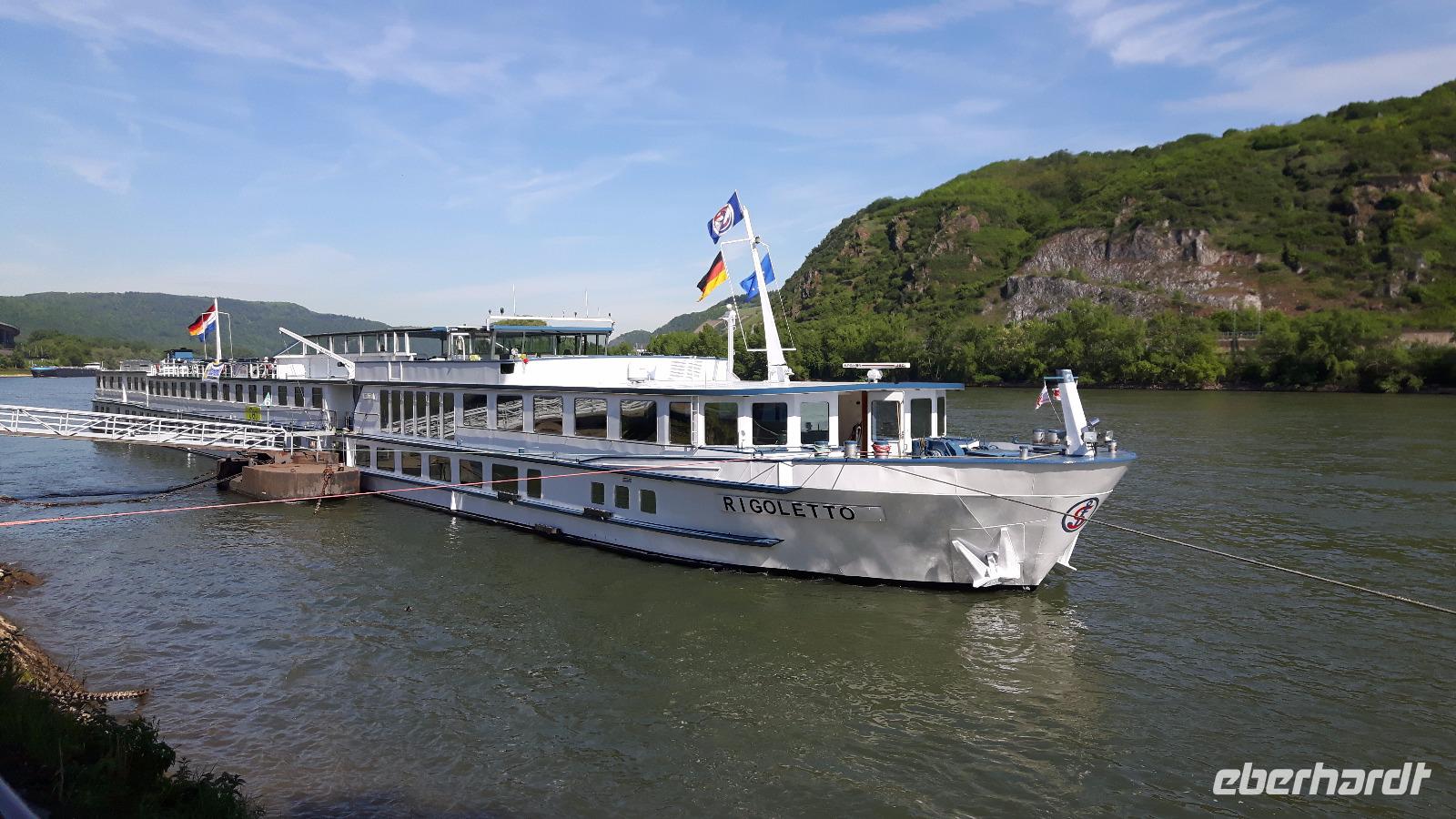 Gegen 8.00 Uhr legte die Rigoletto in Andernach an. Wer wollte besuchte diese gut erhaltene mittelalterliche Stadt auf eigene Faust. Im Zentrum luden die Geschäfte zum Kaufen ein. Nach dem Mittagessen an Bord standen die Busse für den Transfer nach Koblenz bereit. In Koblenz am Peter Altmeier Ufer angekommen erwarteten uns schon die Stadtführer. In der Freizeit ging es mit der „Buga-Seilbahn" hinauf zur Festung Ehrenbreitstein. Von hier oben hat der Gast einen phantastischen Blick auf das Rheintal, das Deutschen Eck, der Mündung der Mosel in den Rhein. Viele Gäste waren schon 2011 in Koblenz zur Bundesgartenschau in der Stadt. Die Festung Ehrenbreitstein hoch über der Stadt dominiert die Seite des Ortes Ehrenbreitstein. Die Seilbahn, mit den 18 Gondeln, überspannt den Rhein vom Deutschen Eck zur Festung Ehrenbreitstein. Gegen 17.00 Uhr kam die Rigoletto in Koblenz an. Den Abend und die Nacht ankerte das Schiff in Koblenz. Wer nicht noch einen Abendspaziergang zum beleuchteten Kaiser Wilhelm Denkmal oder zum Koblenzer Schloss machen wollte, mixte sich an Bord seinen eigenen Cocktail unter Anleitung von Barkeeper Patrick.