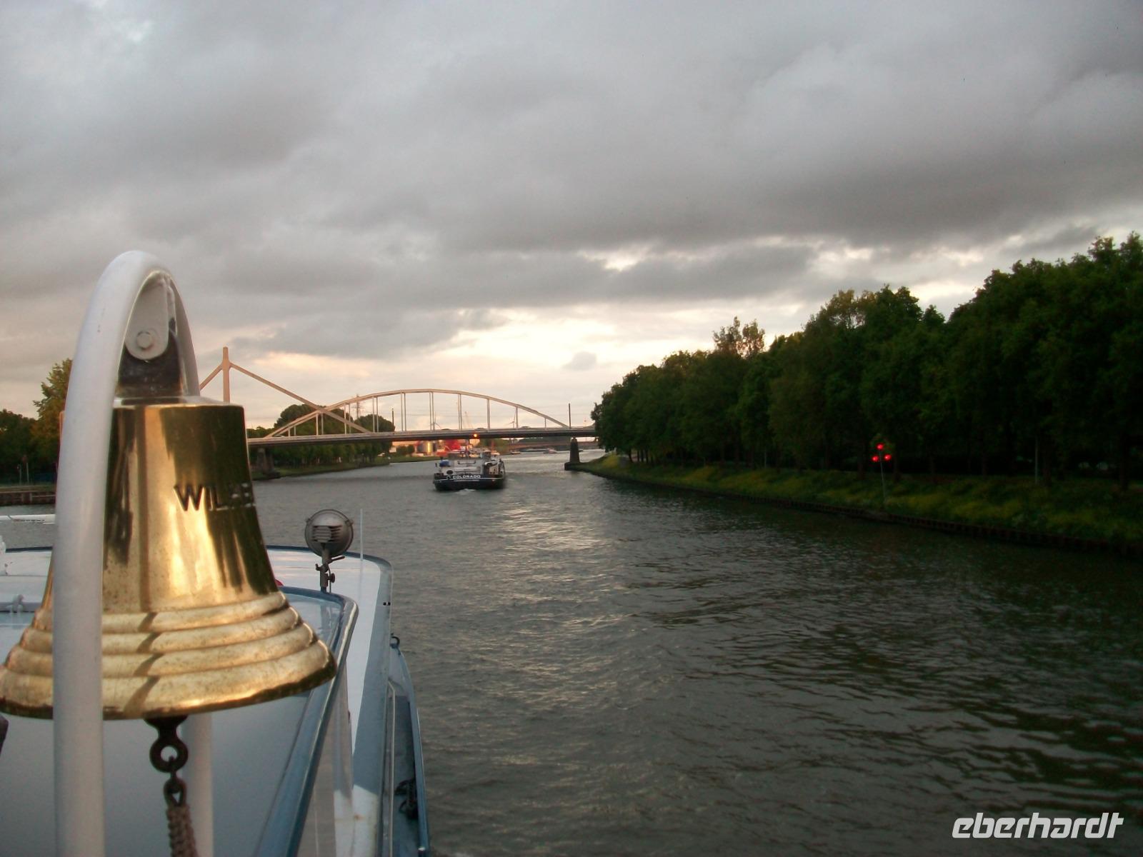 Gemütlich gleitet auch heute Vormittag die „Rigoletto" durch das das ruhige Wasser des Rheins; wir genießen die schöne Zeit auch oben auf dem Sonnendeck, allerdings mit einer Jacke. Das Mittagessen vergeht und bald kommen uns auf der rechten Seite die mächtigen Türme eines großen Gotteshauses entgegen - wir haben unser heutiges Ziel erreicht. Fleißige Hände machen das Schiff fest, die Gangway wird gelegt und auf dieser Verbindung gehen wir an Land.