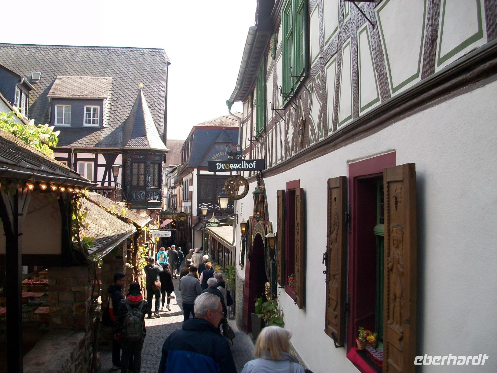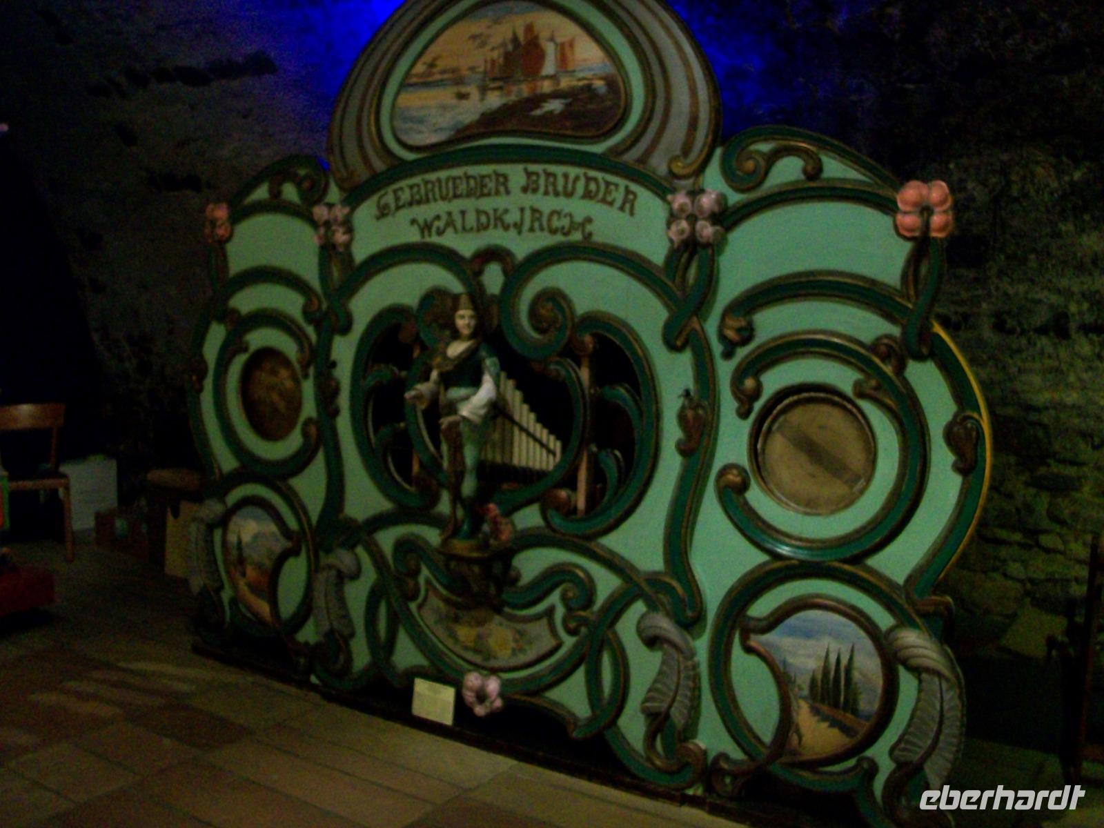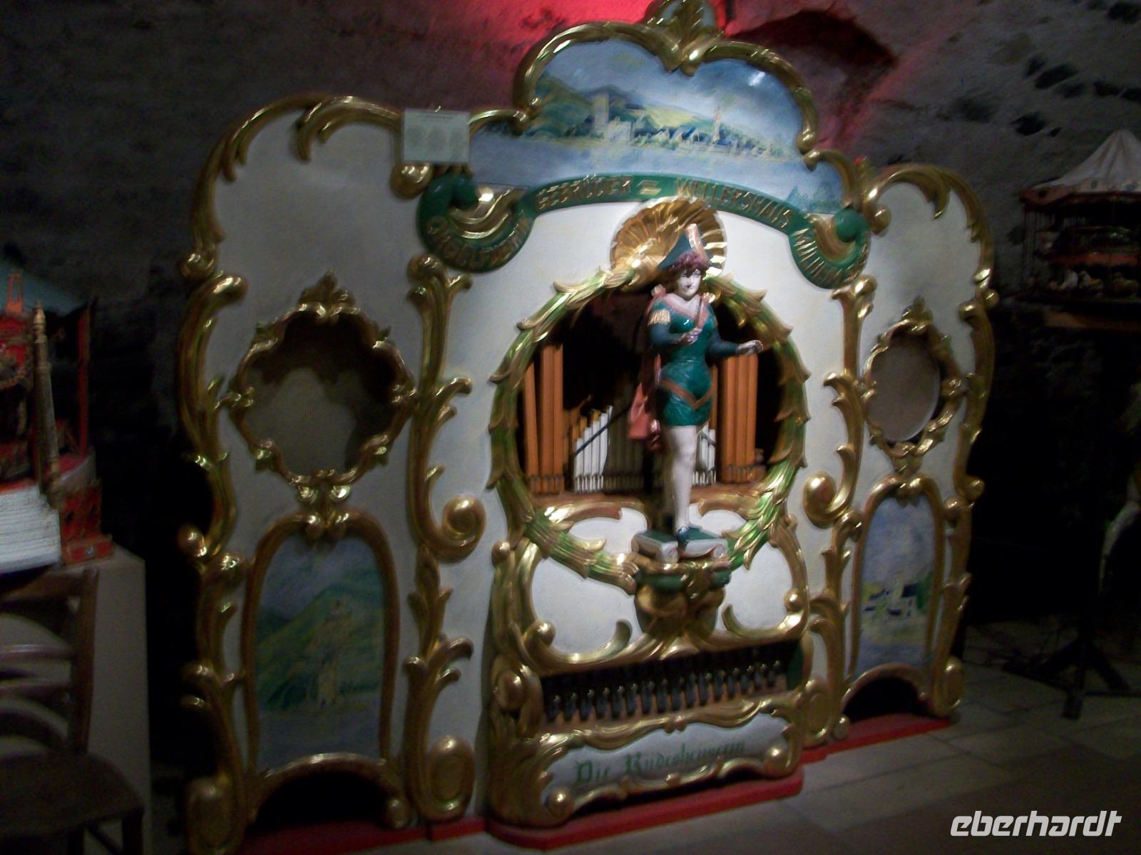 Gleich gegenüber hält der Winzerexpress; es ist ein kleines „Bähnle" und es bringt uns durch die Weinberge in das gepflegte historische Zentrum von Rüdesheim. Hier werden wir schon im Musikkabinett erwartet, eine Reise in die Welt mechanisch erzeuget Musik steht uns nun bevor. Wir sehen vom Grammophon über das automatische Klavier bis hin zur Jahrmarktsorgel mit ihren ohrenbetäubenden „Sound", so ziemlich alles was sich menschlicher Erfindungsgeist diesbezüglich einfallen lies. Da nun auch die Sonne ihren Weg durch die Wolken fand, genießen wir hier im malerischen Rüdesheim einen schönen Nachmittag.