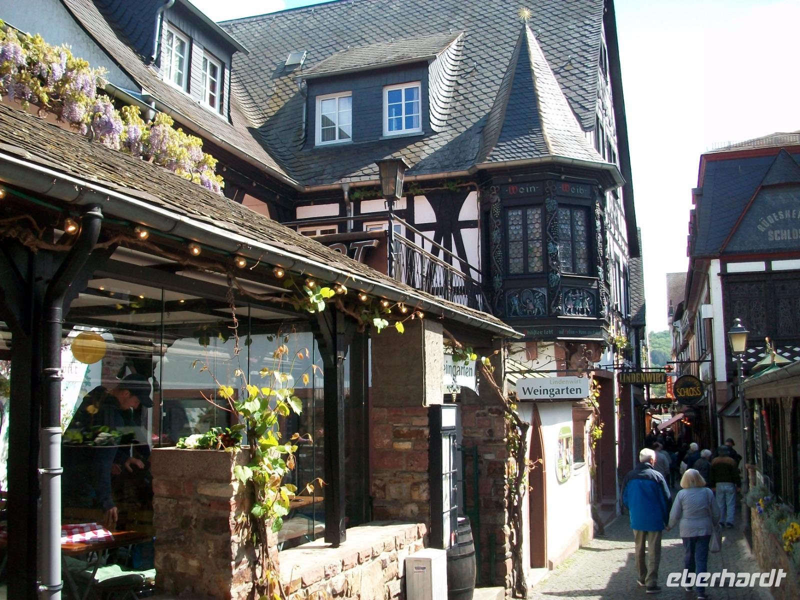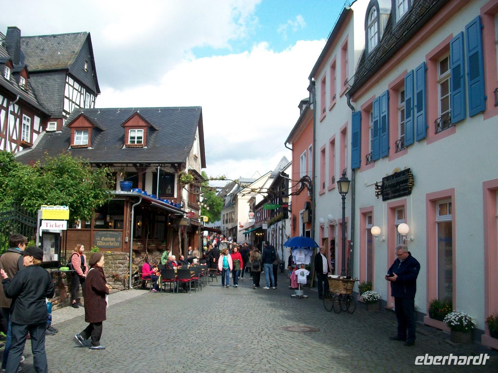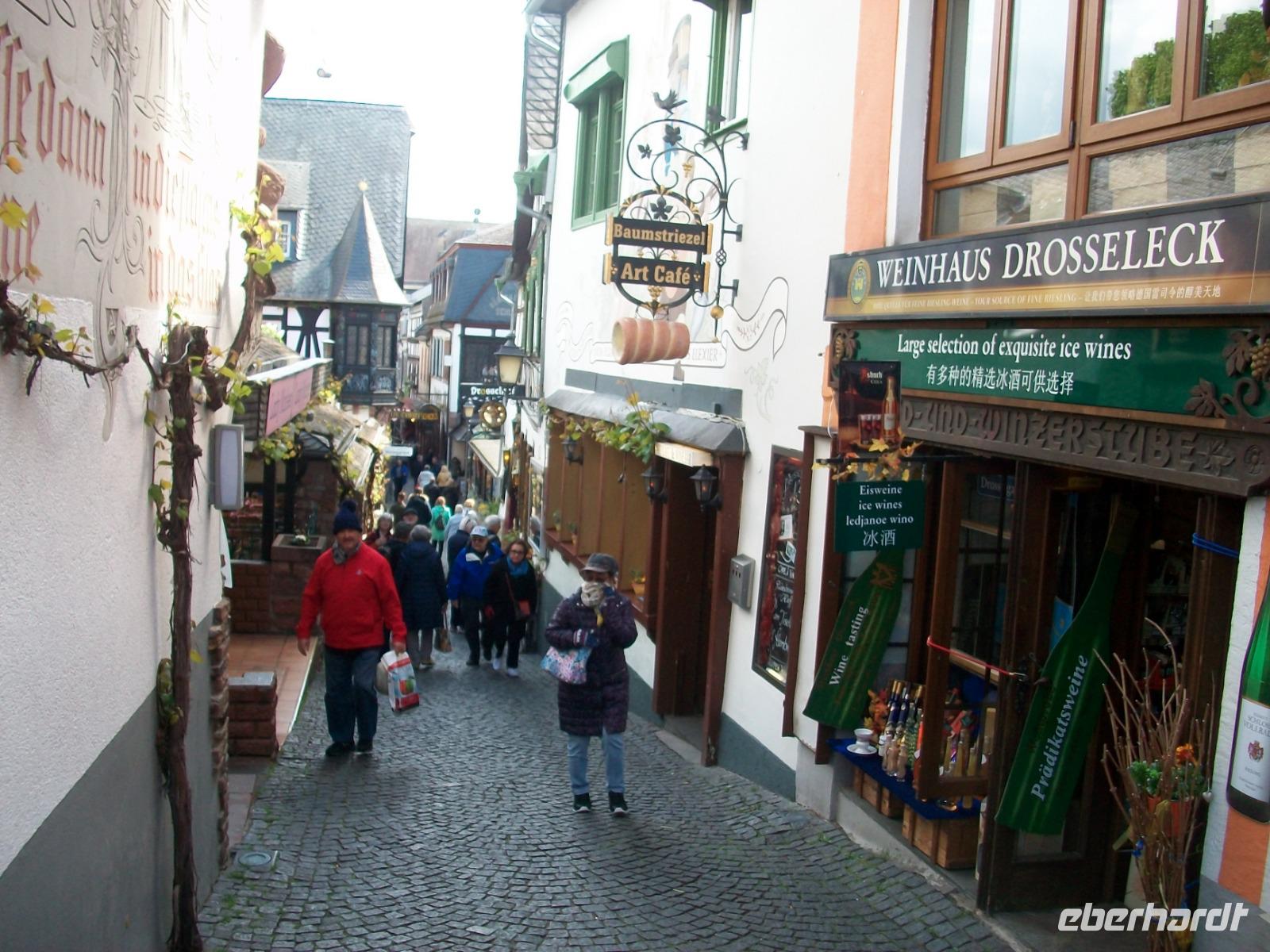 Gleich gegenüber hält der Winzerexpress; es ist ein kleines „Bähnle" und es bringt uns durch die Weinberge in das gepflegte historische Zentrum von Rüdesheim. Hier werden wir schon im Musikkabinett erwartet, eine Reise in die Welt mechanisch erzeuget Musik steht uns nun bevor. Wir sehen vom Grammophon über das automatische Klavier bis hin zur Jahrmarktsorgel mit ihren ohrenbetäubenden „Sound", so ziemlich alles was sich menschlicher Erfindungsgeist diesbezüglich einfallen lies. Da nun auch die Sonne ihren Weg durch die Wolken fand, genießen wir hier im malerischen Rüdesheim einen schönen Nachmittag.