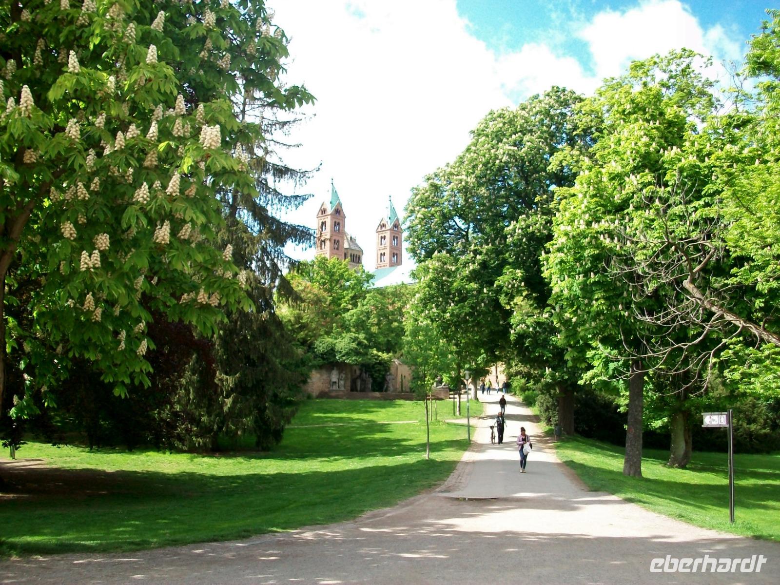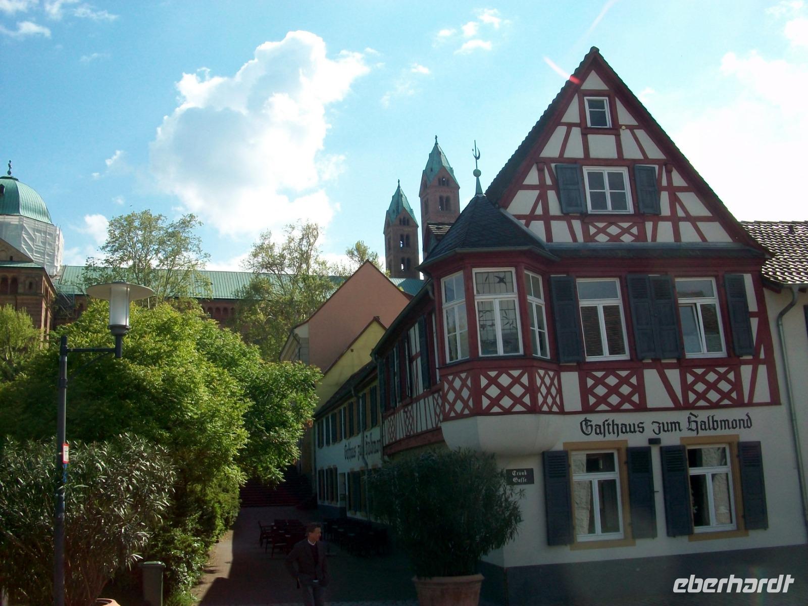 Bald verlassen wir das Rheinufer und gelangen durch einen schönen Park an die Rückseite des Domes, es ist das Wahrzeichen von Speyer. Unsere Führerin lässt nun die Historie auferstehen; die Reise geht zurück in unruhige Jahrhunderte und wir sehen voller Staunen zu welch gigantischer Leistung die Menschen damals fähig waren. Dann geht es noch in die Altstadt; viele gepflegte Bürgerhäuser, einige davon in Fachwerk ausgeführt, zeigen ein wunderschönes Stadtbild welches uns bis heute erhalten blieb.