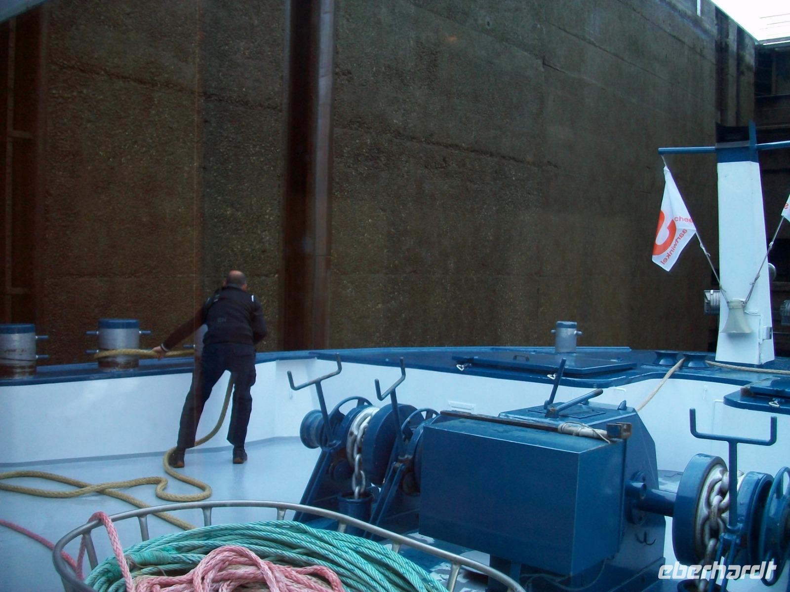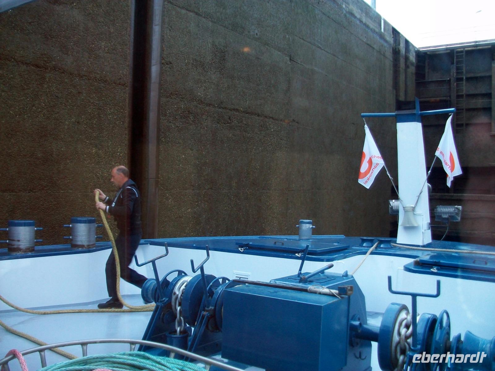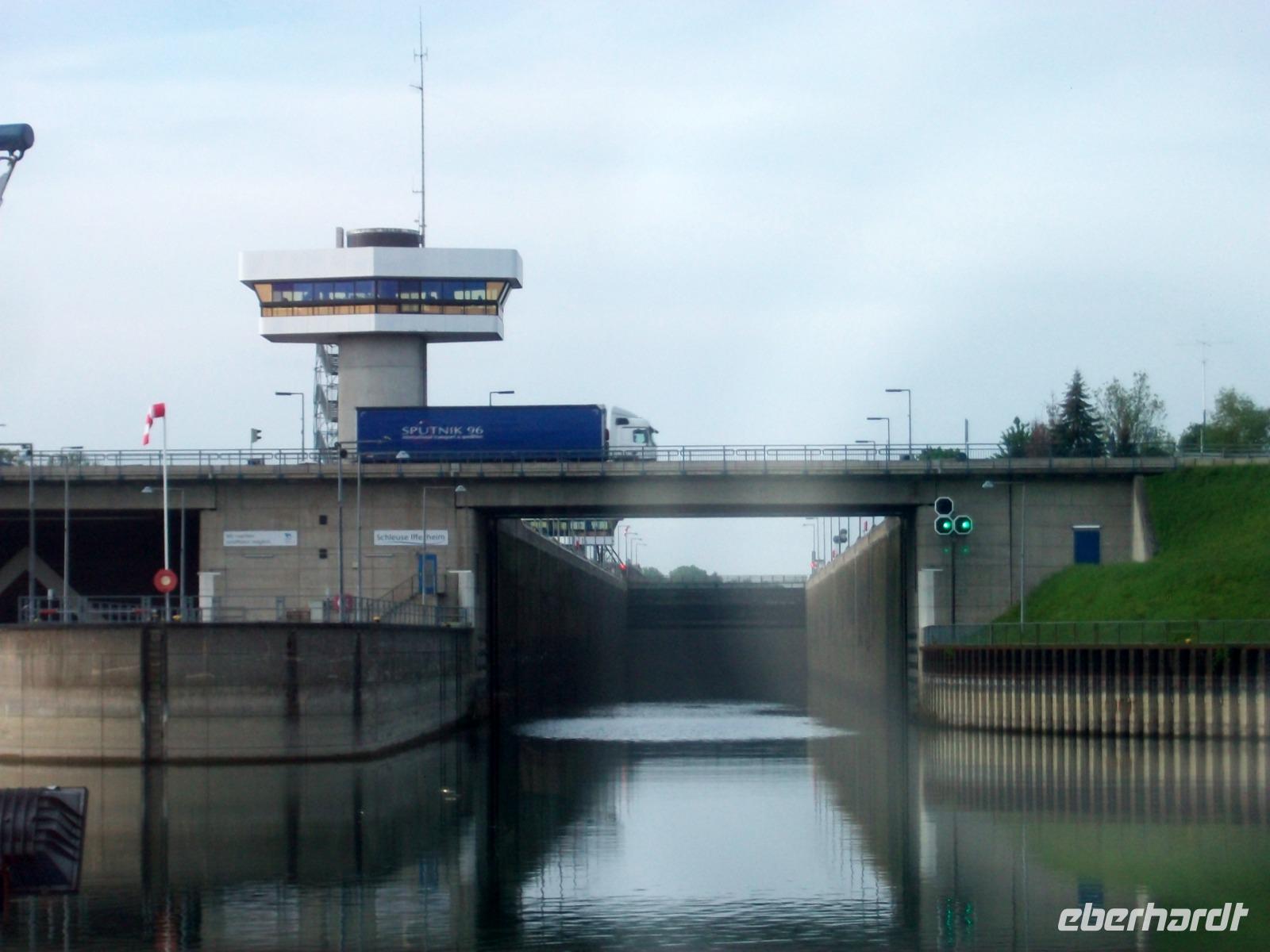 8.5.2019. Über Nacht passierten wir zahlreiche Schleusen; mitunter mussten wir uns anstellen, denn wir waren nicht das einzige Schiff auf dem Rhein, der Fluss ist schließlich eine wichtige Wasserstraße für den Warenverkehr.