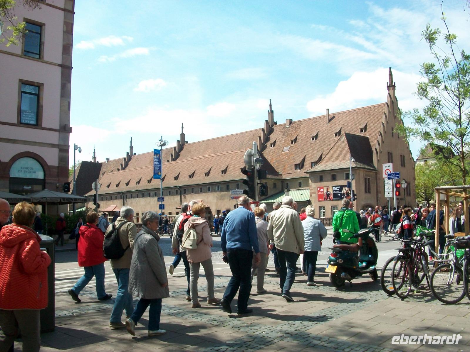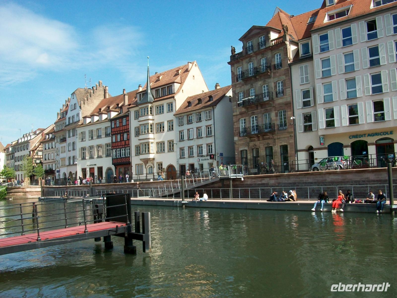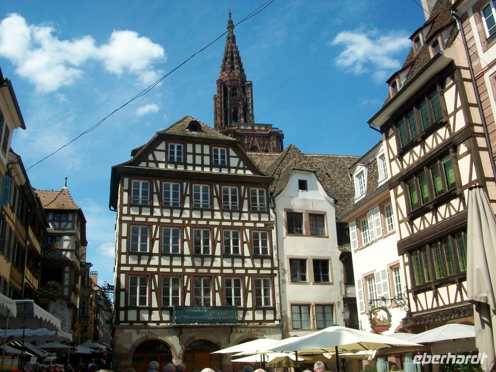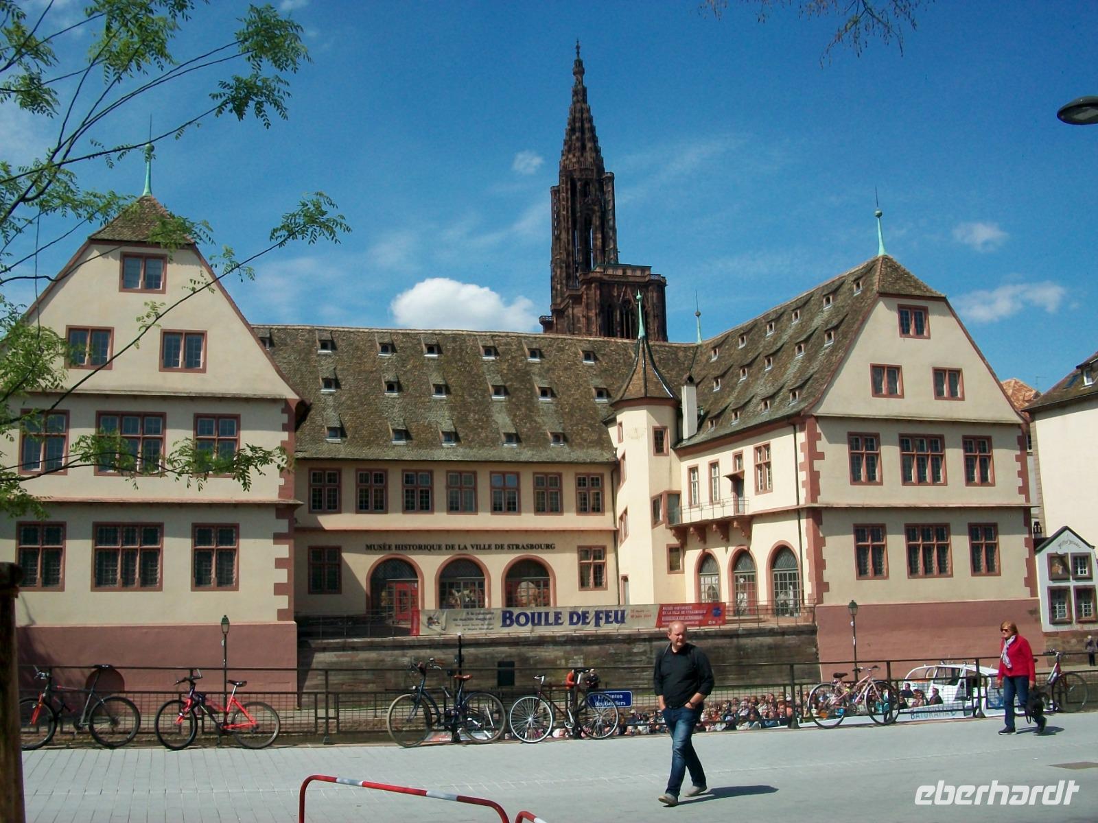 Wenig später sind wir zu Fuß unterwegs um die Historie von Strasbourg zu erkunden. Von überall ist der mächtige Turm des Münsters zu sehen; diesem schönen Gotteshaus gilt unser nächster Besuch. Entlang einer wunderschönen Fachwerkarchitektur gelangen wir dorthin, und ganz wichtig: Die Sonne strahlt was sie kann. Danach steht ein besonderes Erlebnis auf dem Programm, eine Schifffahrt auf der Ill; dieser Fluss durchzieht die Stadt die wir nun noch einmal aus völlig ungewohnter Perspektive betrachten können.