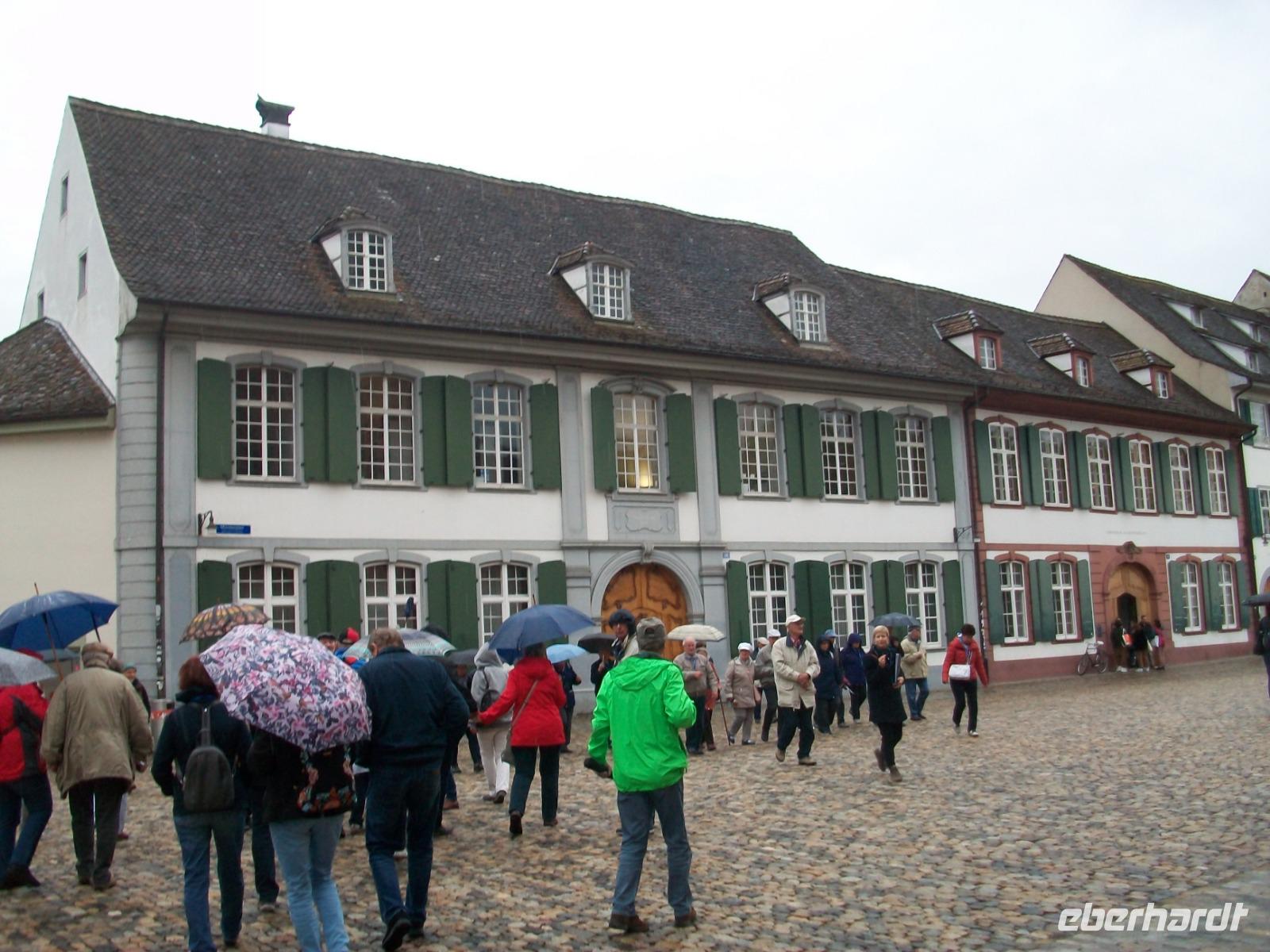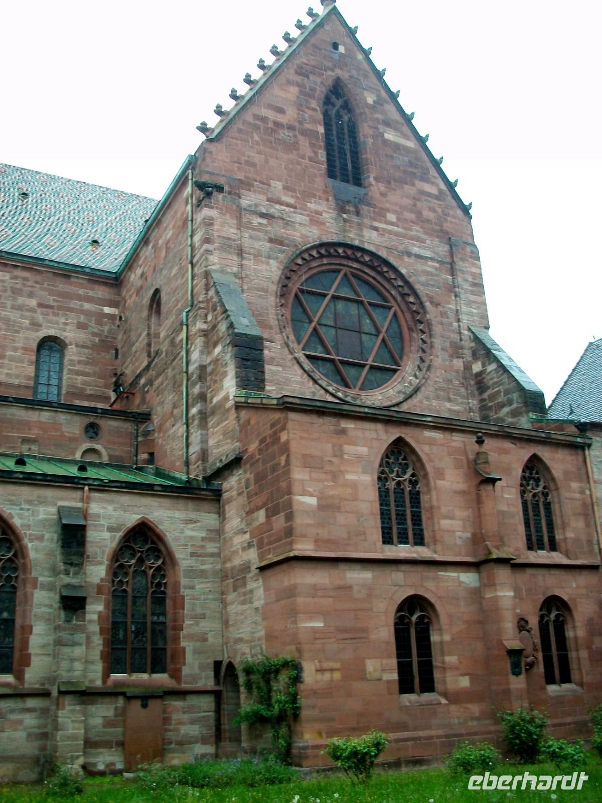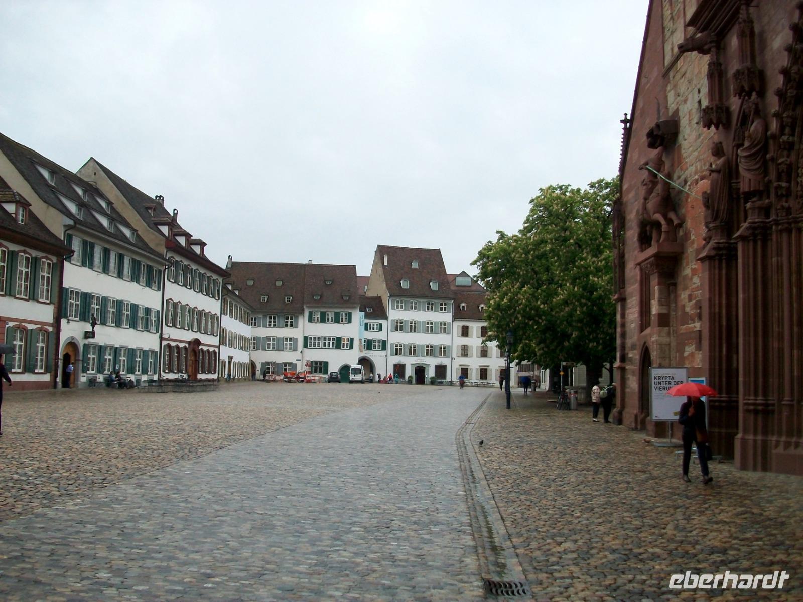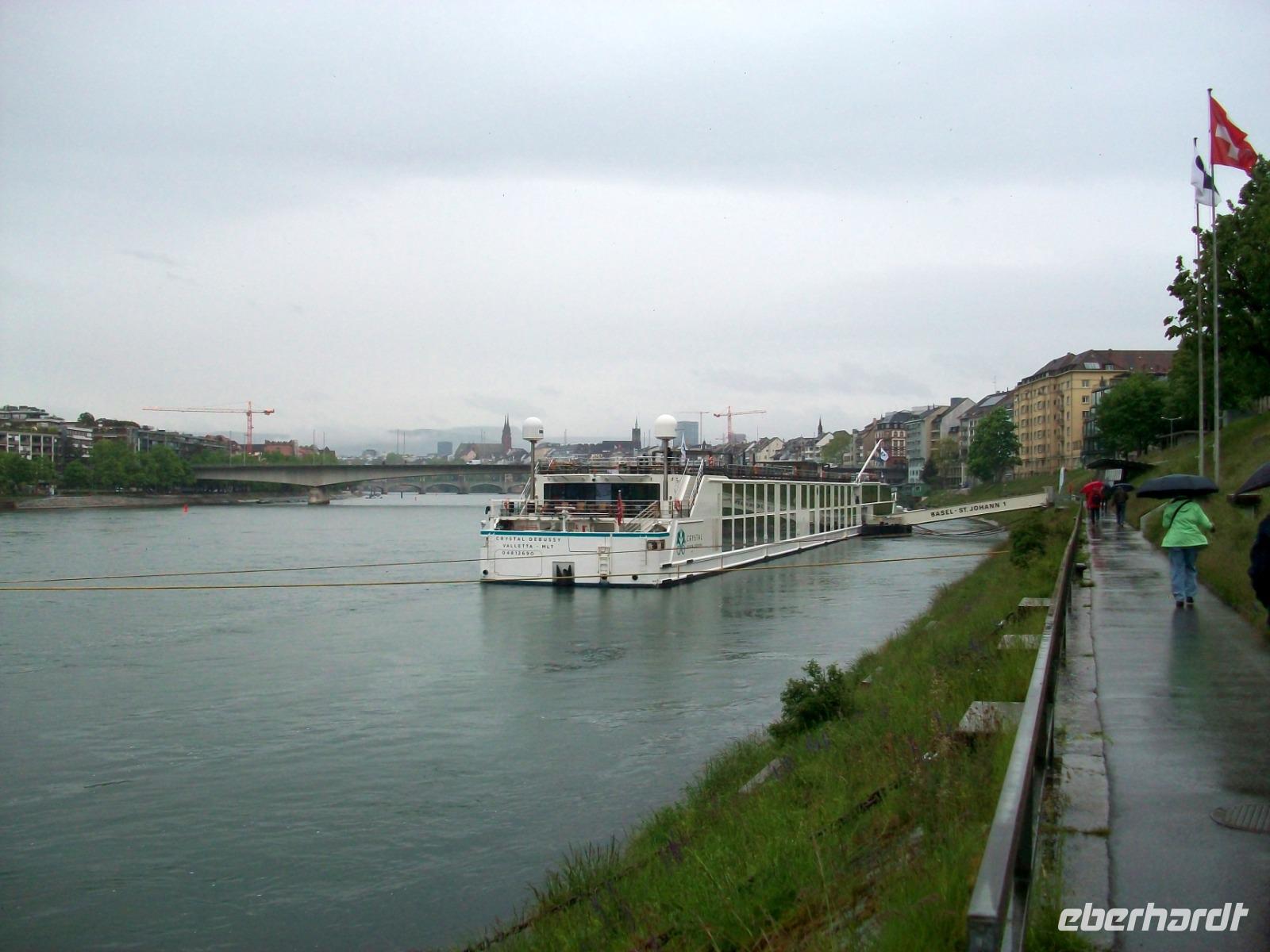 Heute hat Petrus den Himmel wieder mit Wolken überzogen, mal schauen wie das Wetter sich gestaltet. Unser Ziel ist Basel und somit werden wir heute auf Schweizer Boden gelangen. Auf französischer Seite sind einige Industrieanlagen zu sehen, bald jedoch langen wir am Anleger St. Johann an, wir haben unser Ziel erreicht. Hier endet nun schließlich unsere Schifffahrt auf dem Rhein, aber eine letzte schöne Stadt steht noch auf dem Programm. Nur Petrus spielt nicht mit; als wir mit den Bussen in Basel auf Rundfahrt sind regnet es leicht. Dennoch erfahren wir sehr viel über diese sehenswerte Stadt. Wir sehen von Basel auch die Moderne die geprägt ist von Handel und Industrie; als wir uns jedoch zu Fuß aufmachen, dringen wir in die Historie der Stadt ein. Bald kommt das mächtige Münster in unser Blickfeld; wir gelangen durch den schönen Kreuzgang in das Innere und unsere Führerin aus Basel hat einige interessante Fakten zu diesem beeindruckenden Gotteshaus zu bieten.