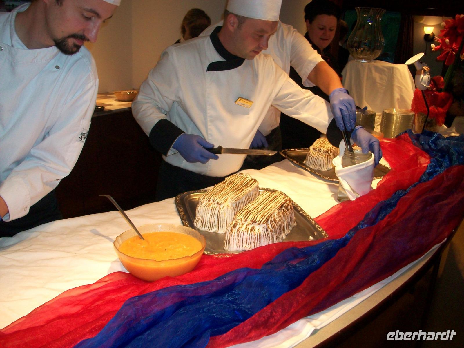 Zurück zum Schiff. Heute ist nun leider schon der letzte Abend angebrochen. Es steht aber noch das Kapitänsdiner auf dem Programm. Pünktlich erscheint Marco in seiner Galauniform, damit kann es beginnen. Später wird uns noch ein außerordentlich leckeres Abendessen in mehreren Gängen serviert. Der Abend klingt stimmungsvoll aus und Miro, der Musikant, findet die richtigen Noten dazu.
