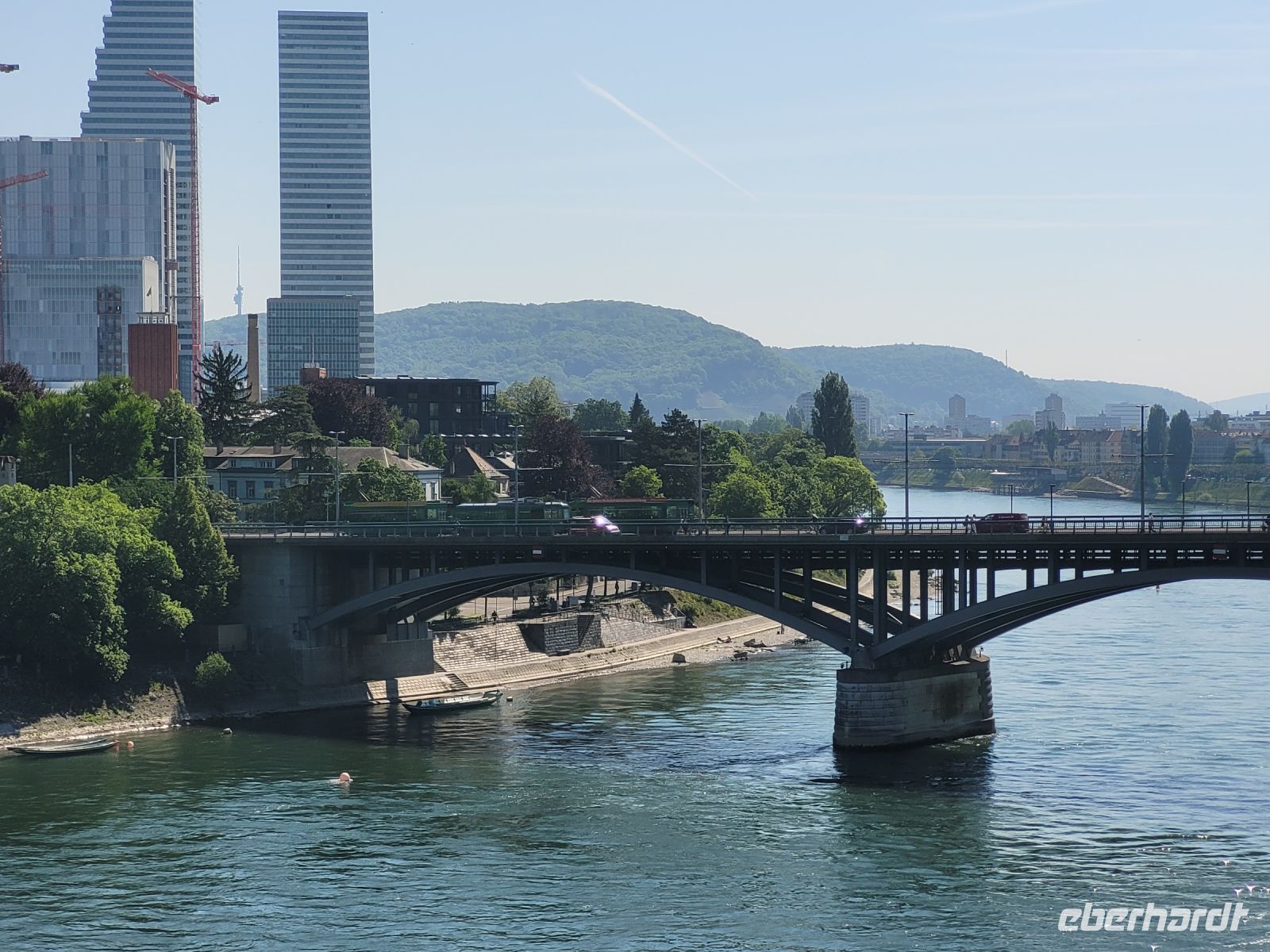 Über den Spalenring mit markanten Spalentor (es zählt zu den schönsten Stadttoren der Schweiz) fuhren weiter nach Kleinbasel - Musical Theater (Umbau zur Schwimmhalle) – alten Güterbahnhof - Badischer Bhf (D) -Sommersitz jetzt Lehrer Seminar - La Roche Pharma Türme 178 m - TRAM Linien d.h. 1. Weil am Rhein in D 2. Saint Louis in F und 3. CH - Stadttore: St. Alban und St. Johann - Stadtgraben bis 1860 danach Fußgängerzone - Hamering Man von J. Borowski – Aeschenplatz - Runde Gebäude von Mario Tossar - Bhf Ch - F Elsässischer Bhf (ICE 3h in Paris) – Markthalle - vom Viadukt prima Sicht auf 150 jährigen Zoo – Paulskirche – Diplomatenviertel – Bundesplatz – Schützenmarktplatz -Missionsstrasse (400 Missionare z.B. Herrmann Hesse)-Eulenstrasse (Mathematiker)-Baslerviertel – Synagoge - Holbeinplatz (Maler am Engl. Hof) – Univiertel – Gericht - Botanischer Garten (blühende Titanwurz in Presse gewesen - stinkend) – Unispital - Kinderspital (Fassade ändert die Farbe) - Erasmusplatz