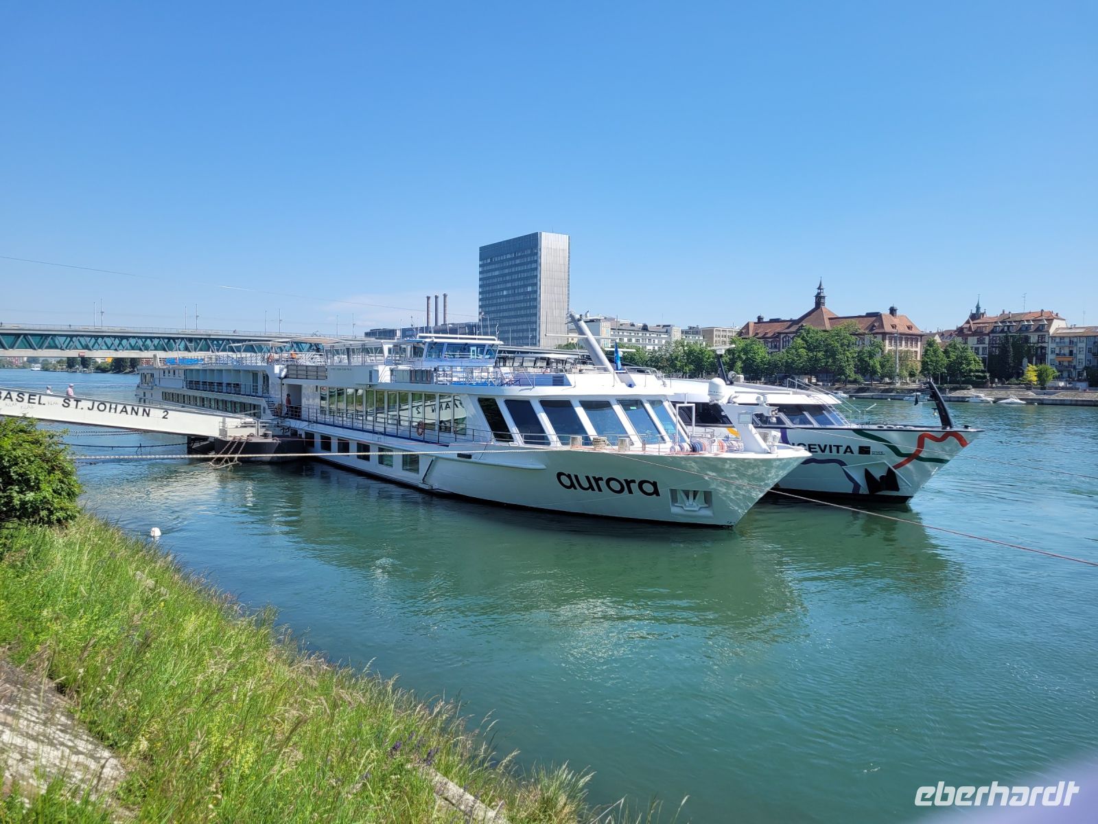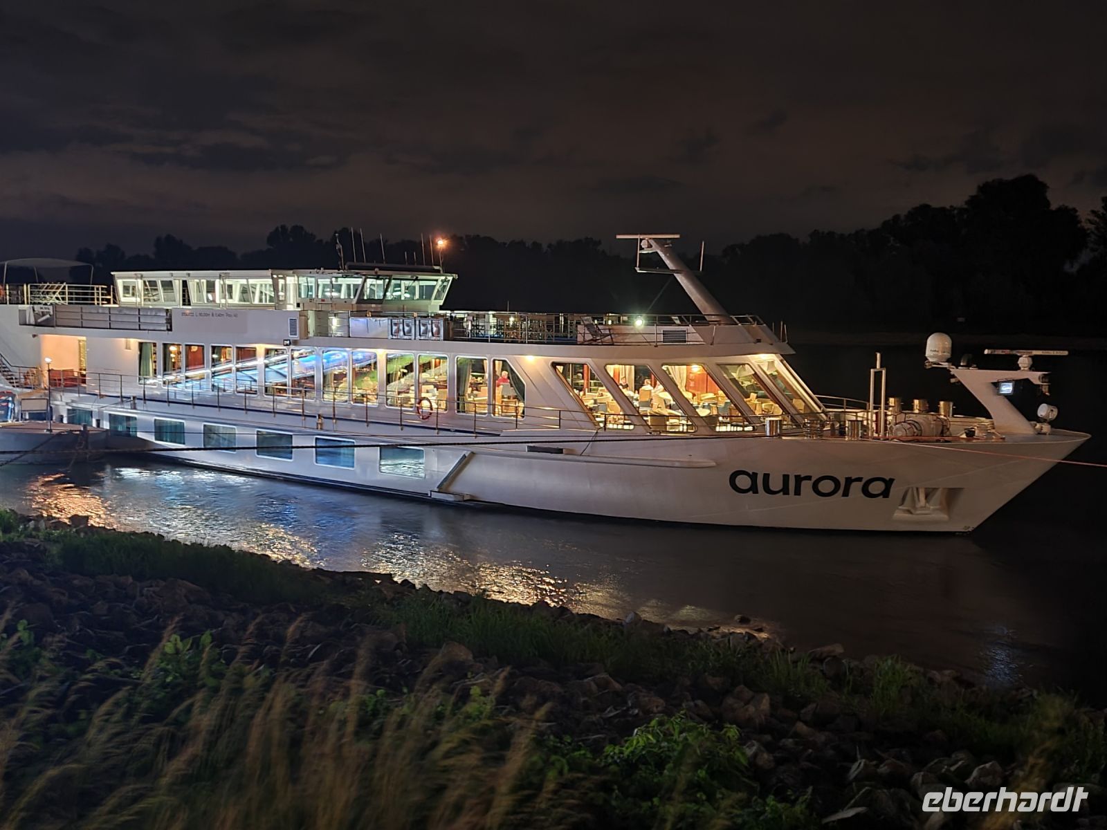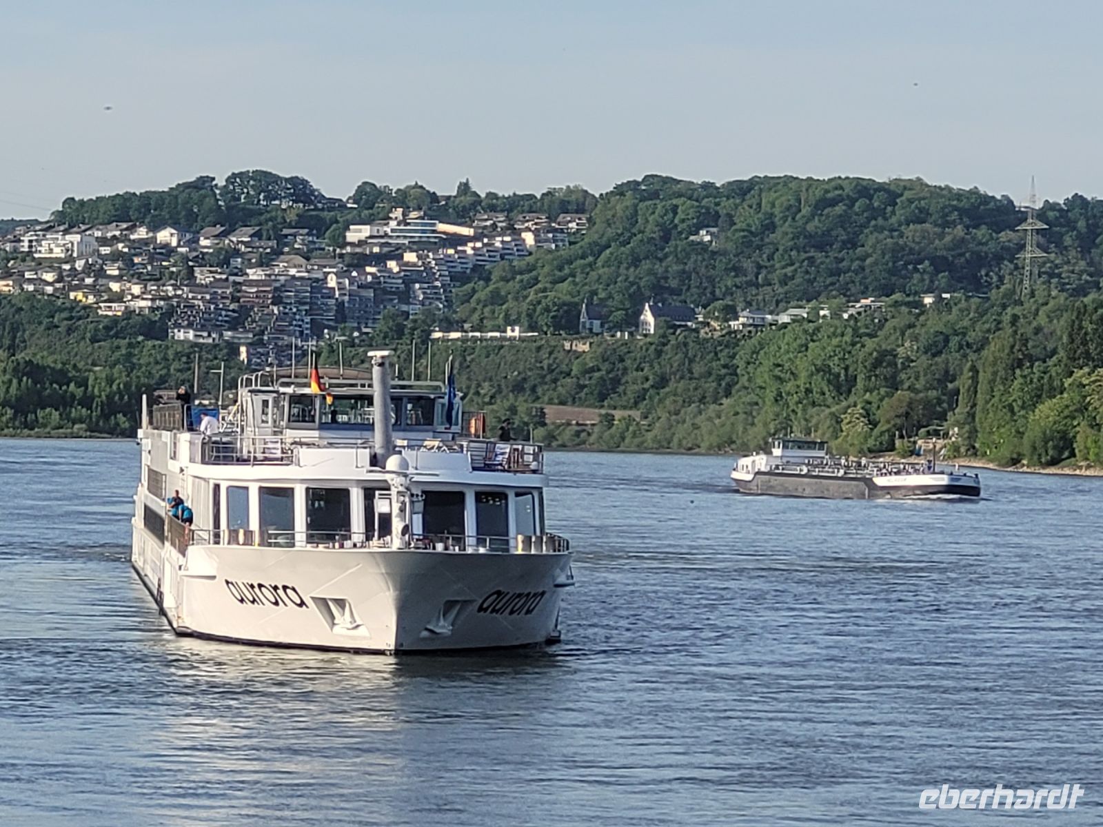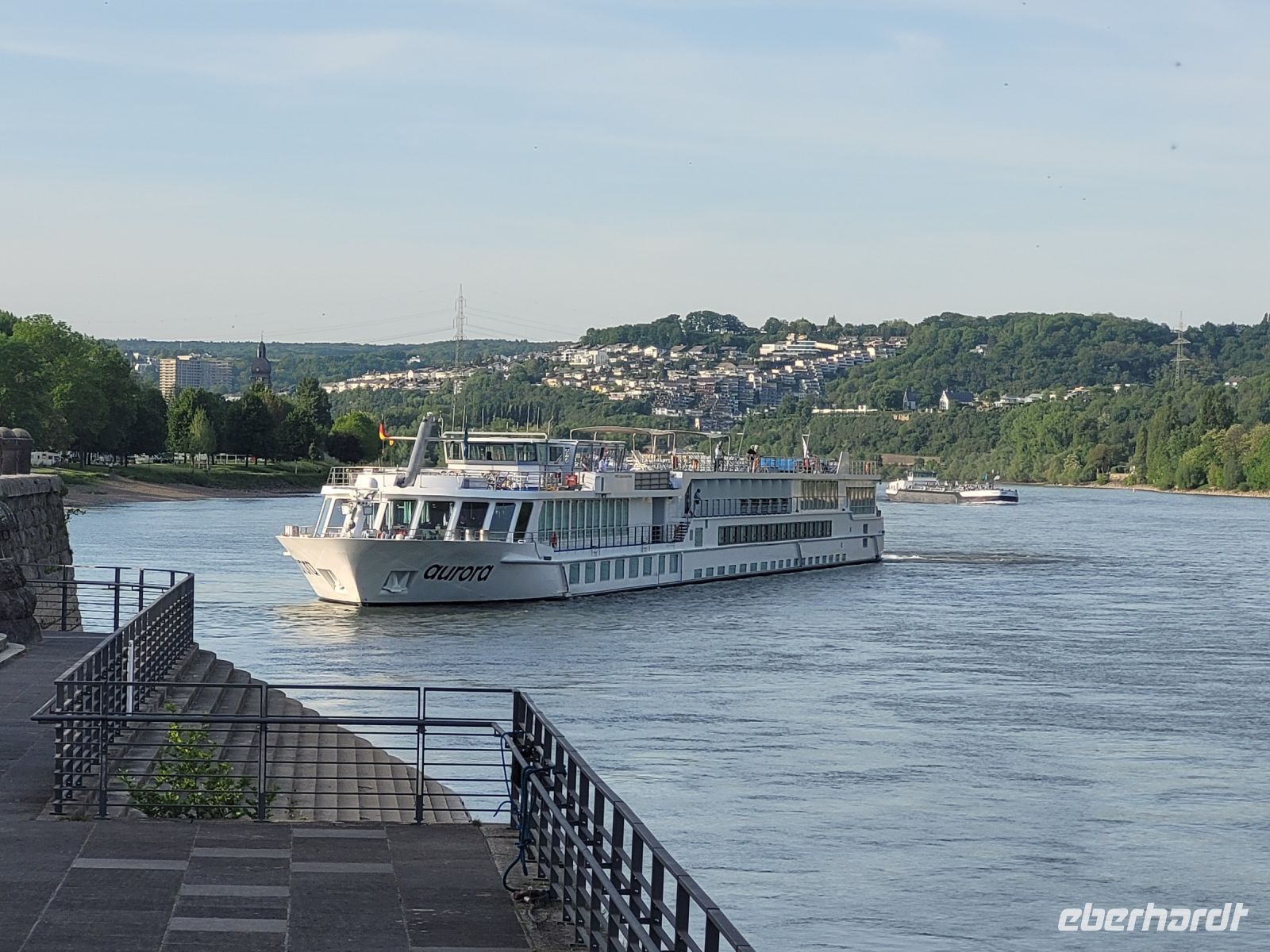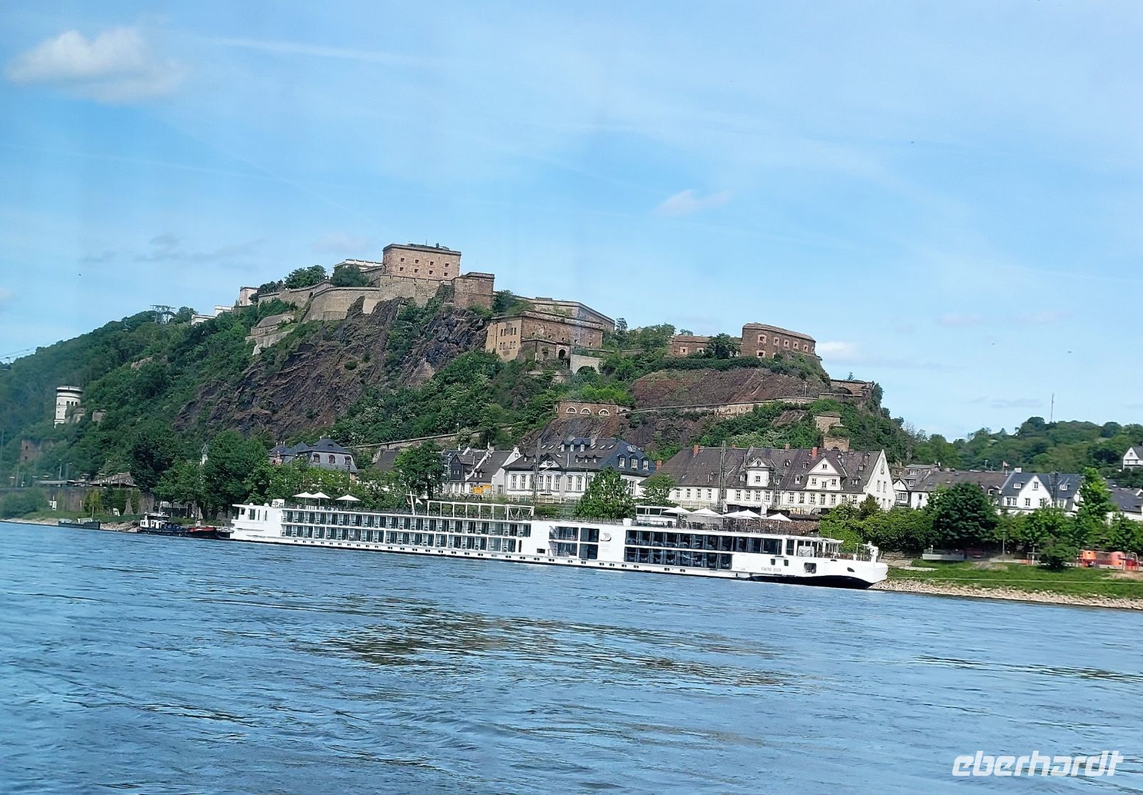 Die MS Aurora hat in der Zwischenzeit auf der Rheinseite unterhalb der Festung angelegt.