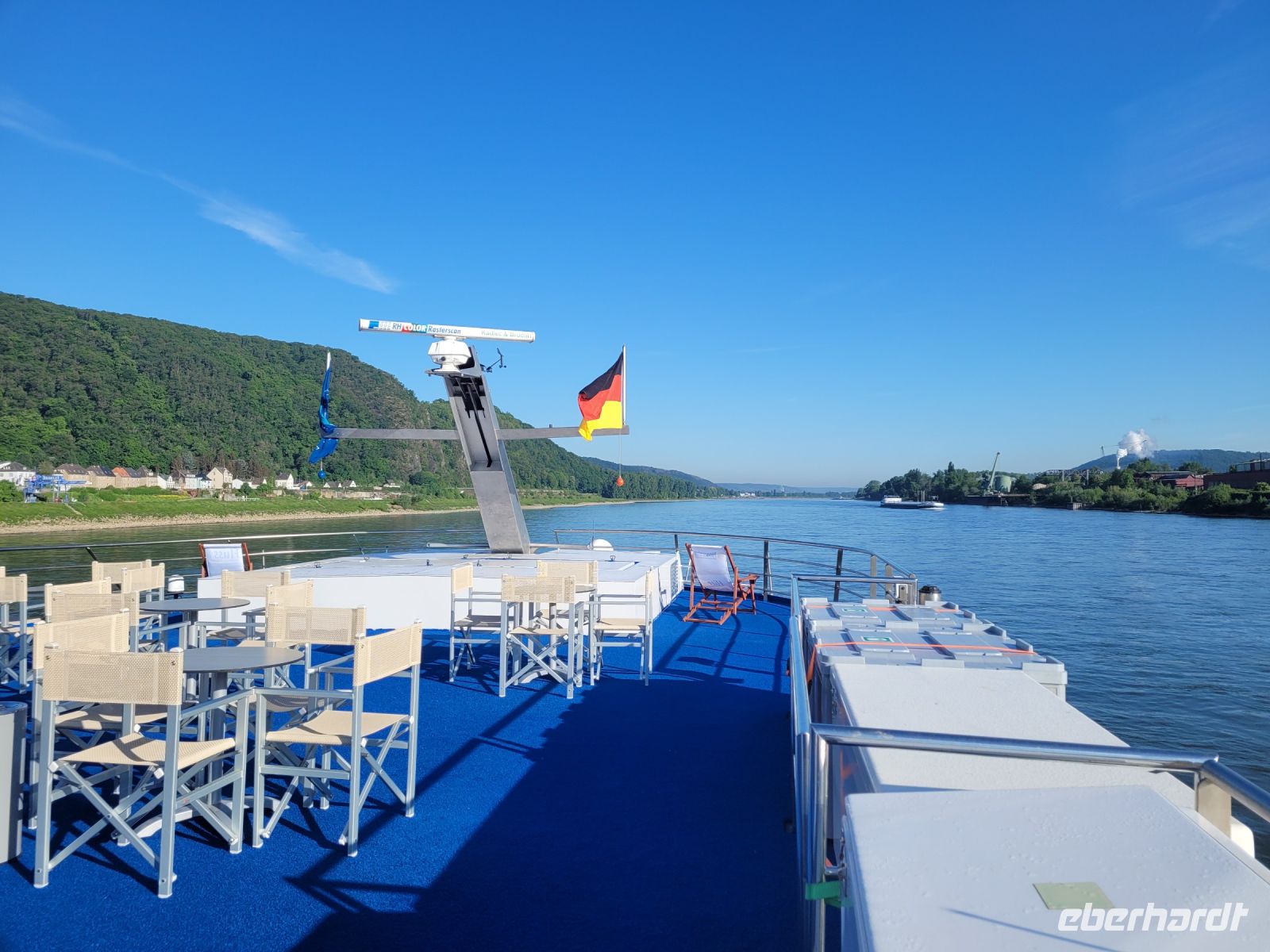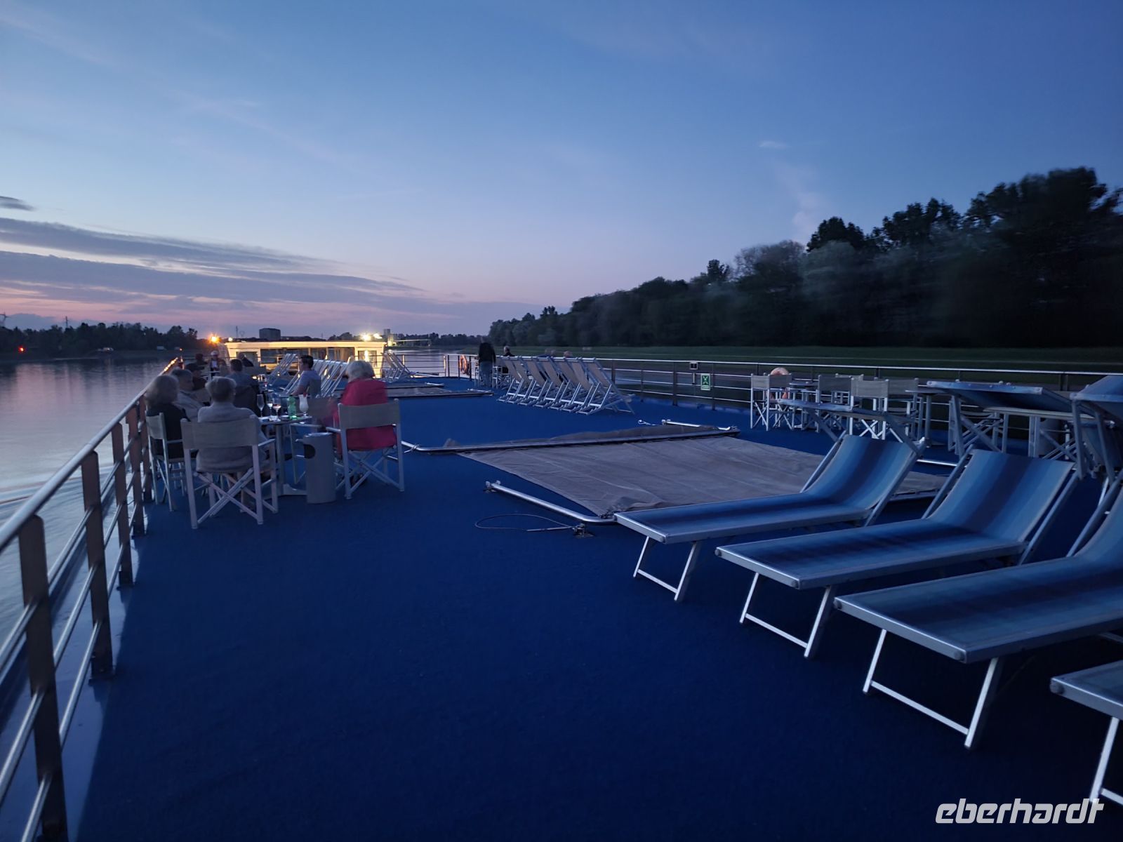 Während des Mittagessens legte unser Schiff ab und nahm Fahrt in Richtung Strasbourg auf. Den Nachmittag ließen wir uns von der Sonne an Deck verwöhnen.