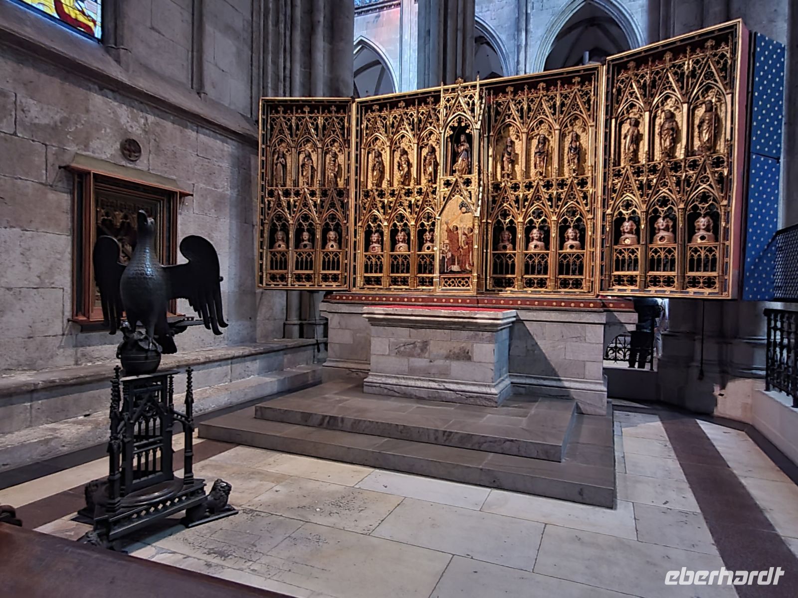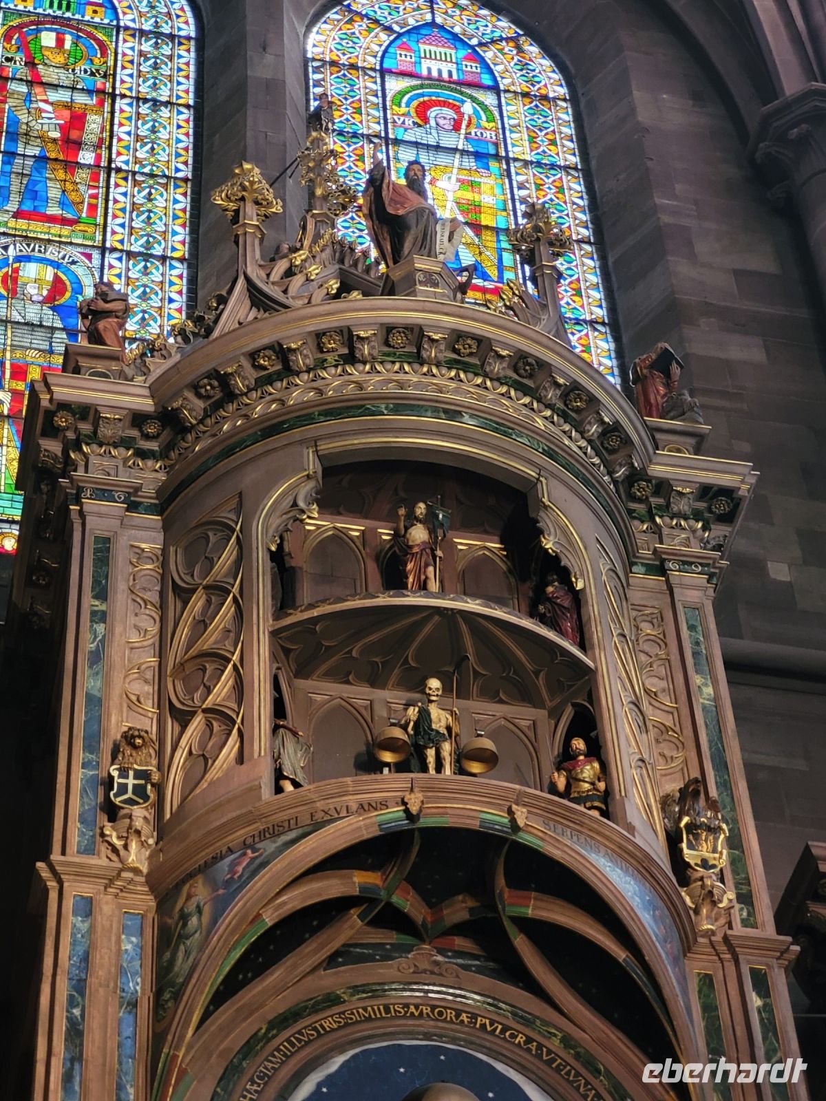 Zu den berühmtesten Ausstattungsstücken des Münsters zählen die Astronomische Uhr und der „Engelspfeiler“. Auch die Kanzel, das Taufbecken, die Schwalbennestorgel sowie die Glasfenster und die Wandteppiche mit dem Marienleben sind weltbekannt. Geheimtipp: An der Kanzel befindet sich ein kleines Hündchen, bitte streicheln! und Sie kommen garantiert wieder?