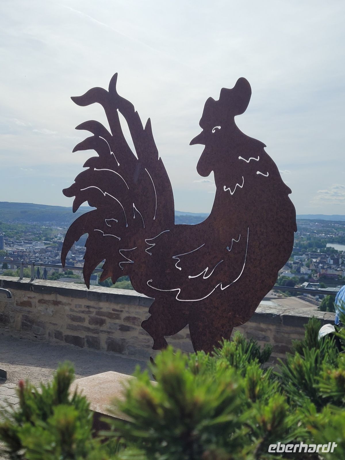 Eine Darstellung von Koblenzer „Schängelchen“ (Schängel ist die mundartliche Bezeichnung für in Koblenz geborene Jungen) und des „Augenroller“ bringt unsere Gäste zum Schmunzeln.