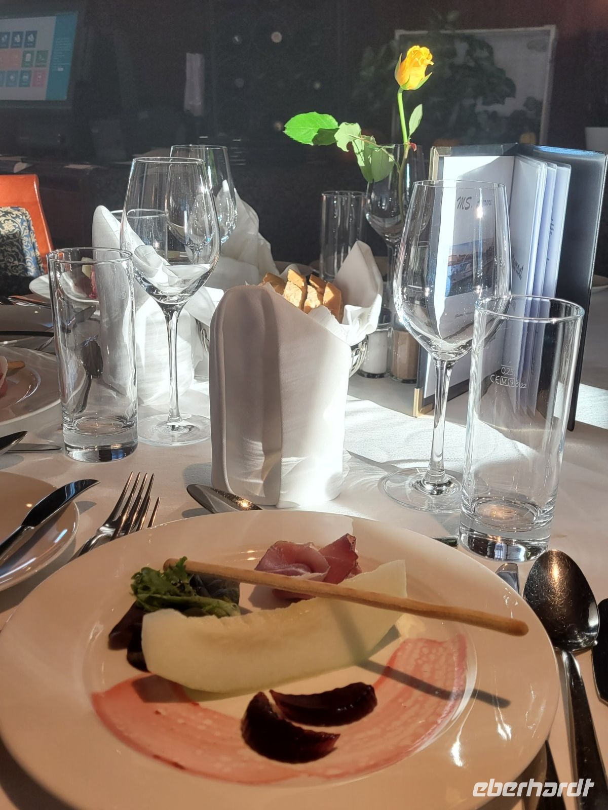 Kaum zurück auf dem Schiff, schnell schick gemacht, erwartete uns der Kapitän und seine Mannschaft zum Dinner. Wie schnell war doch die Zeit vergangen!