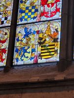 Sehenswert auch die Wände des Innenhofes, sie sind bemalt im Jugendstil und an den Zinnen sind die Wappen der 12 Kantone abgebildet, mit denen Basel damals die Eidgenossenschaft bildete.
