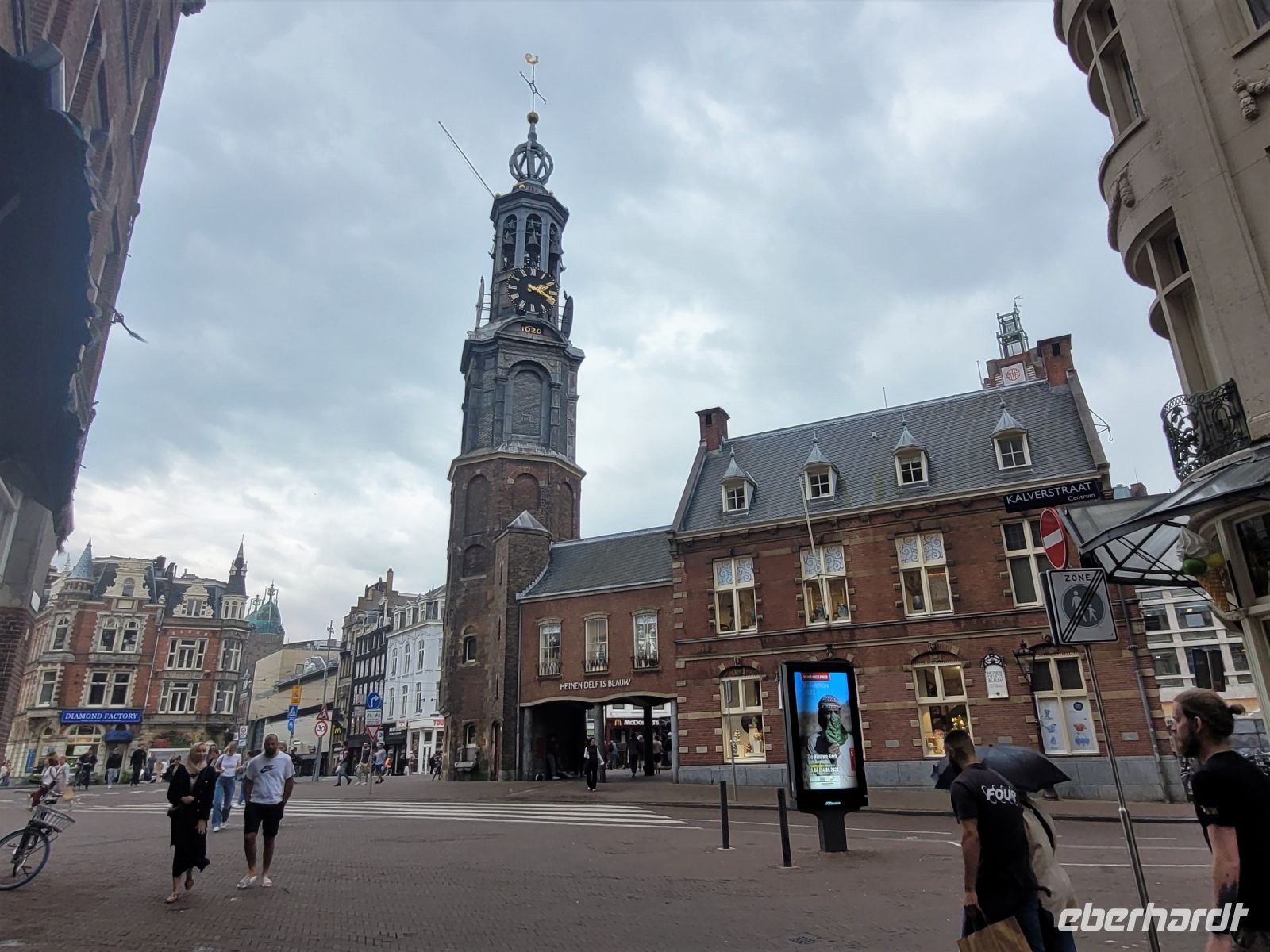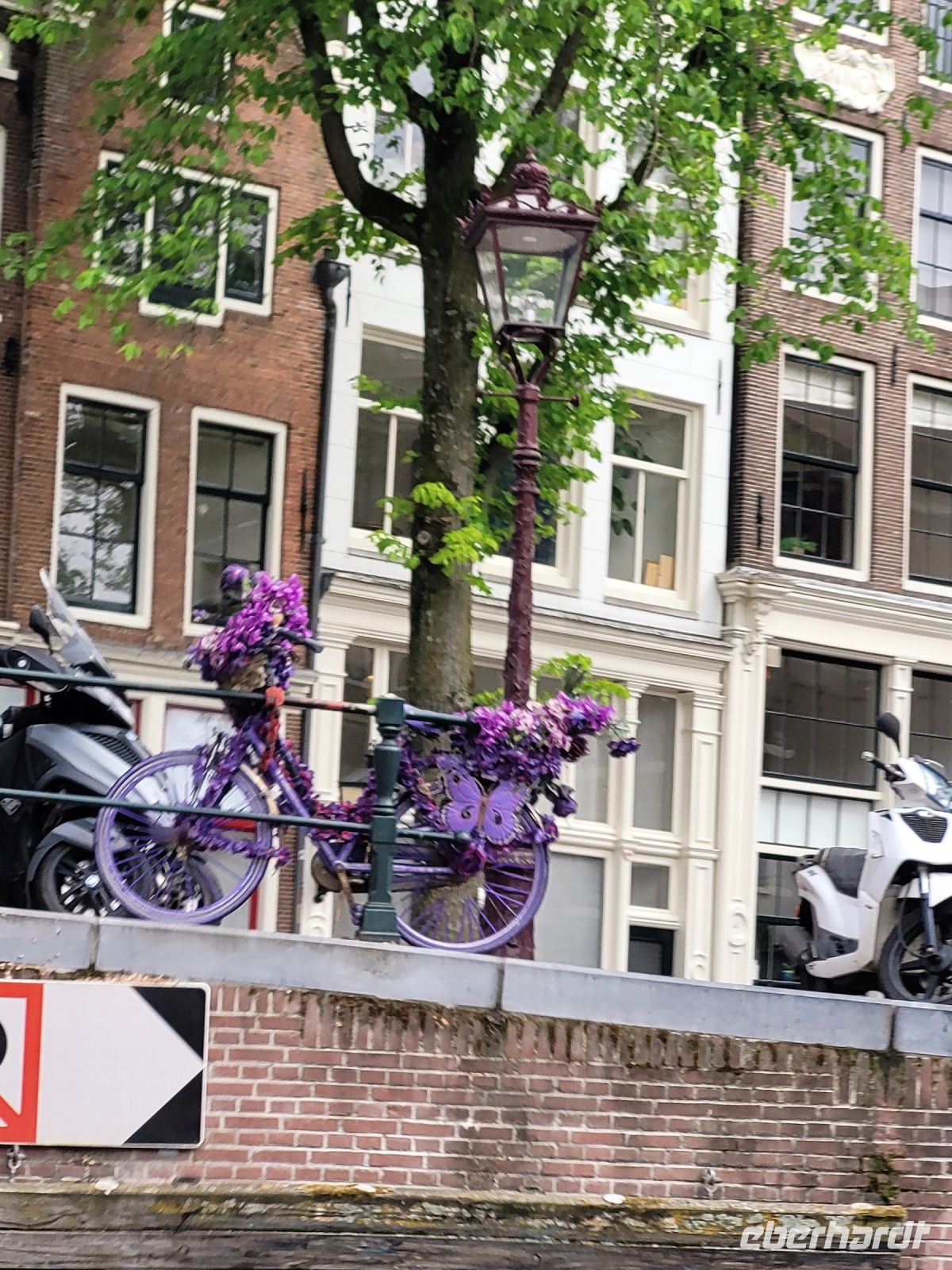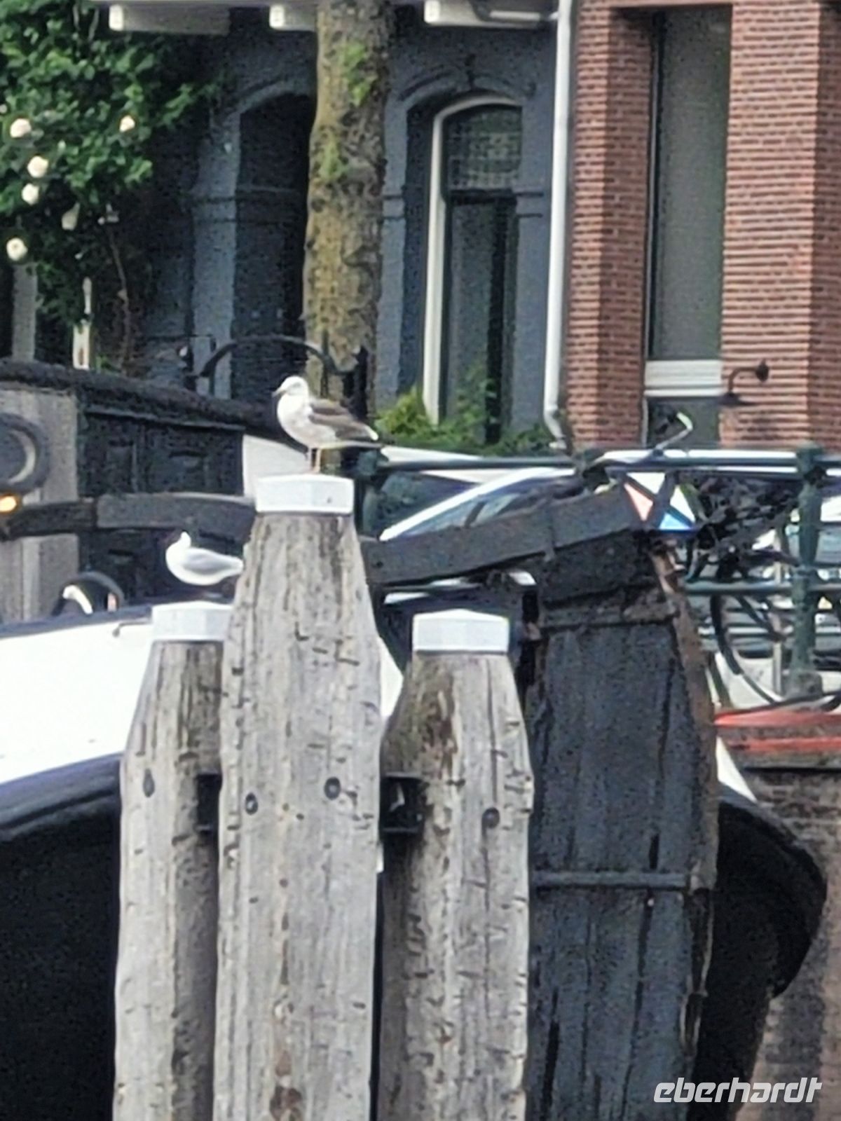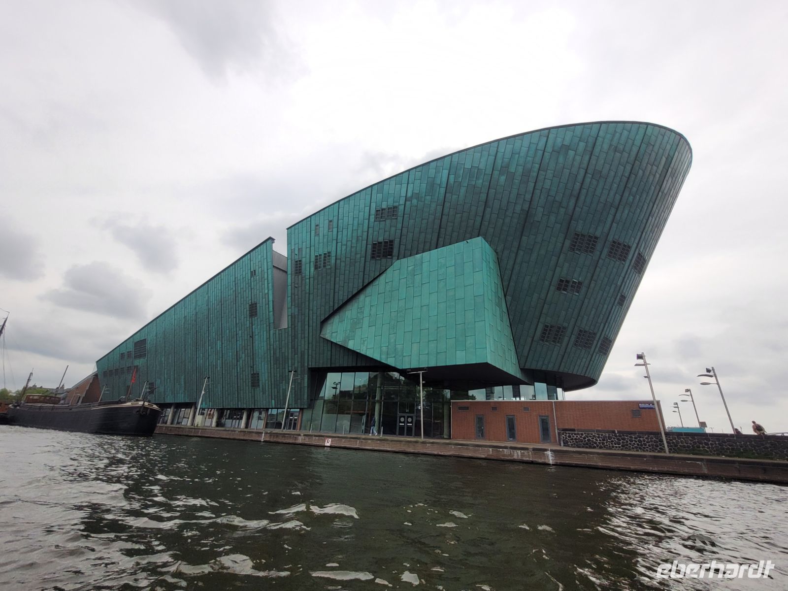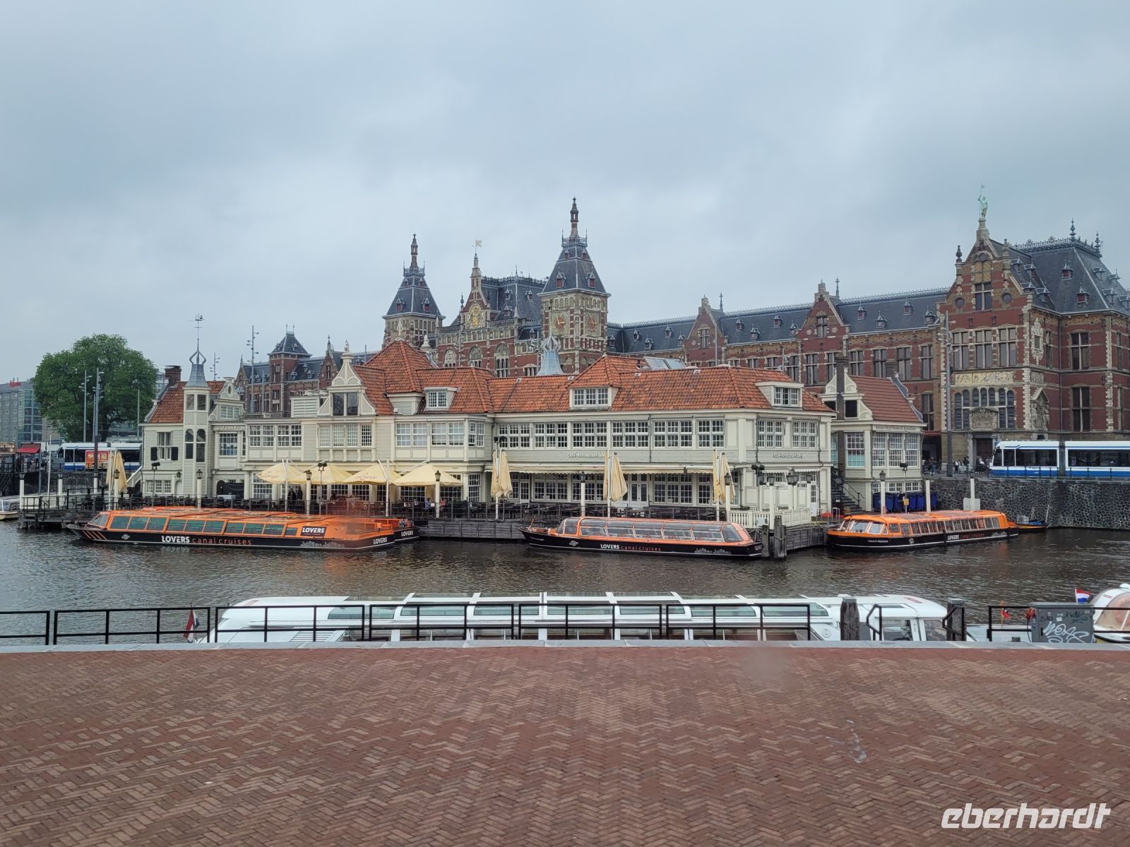 Krönender Abschluss unseres Ausfluges war die Grachtentour. Durch das Oosterdok am Nemo vorbei - technisches Museum in Form eines Walfischs, weiter in die Oudeschans - vorbei am Montelban-Turm, mit Blick in die Nieuwe Amstel biegen wir etwa nach 270° um die Altstadt in eine innere Gracht um dann entgegen dem Uhrzeigersinn weiterzufahren. Viele Quergrachten mit unzähligen Brücken sehen wir bei unserer Fahrt, sowie zahlreiche der Prachthäuser in der Heren-, Prinsen- und Kaizersgracht und zum Abschluss ein Museumsschiff, einen Nachbau des V.O.C.