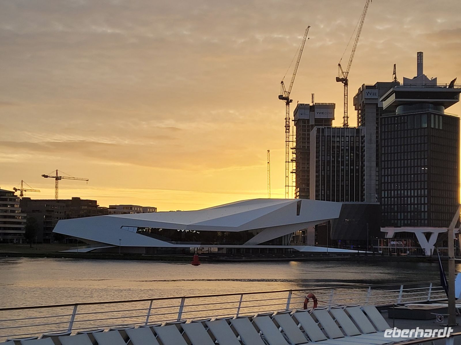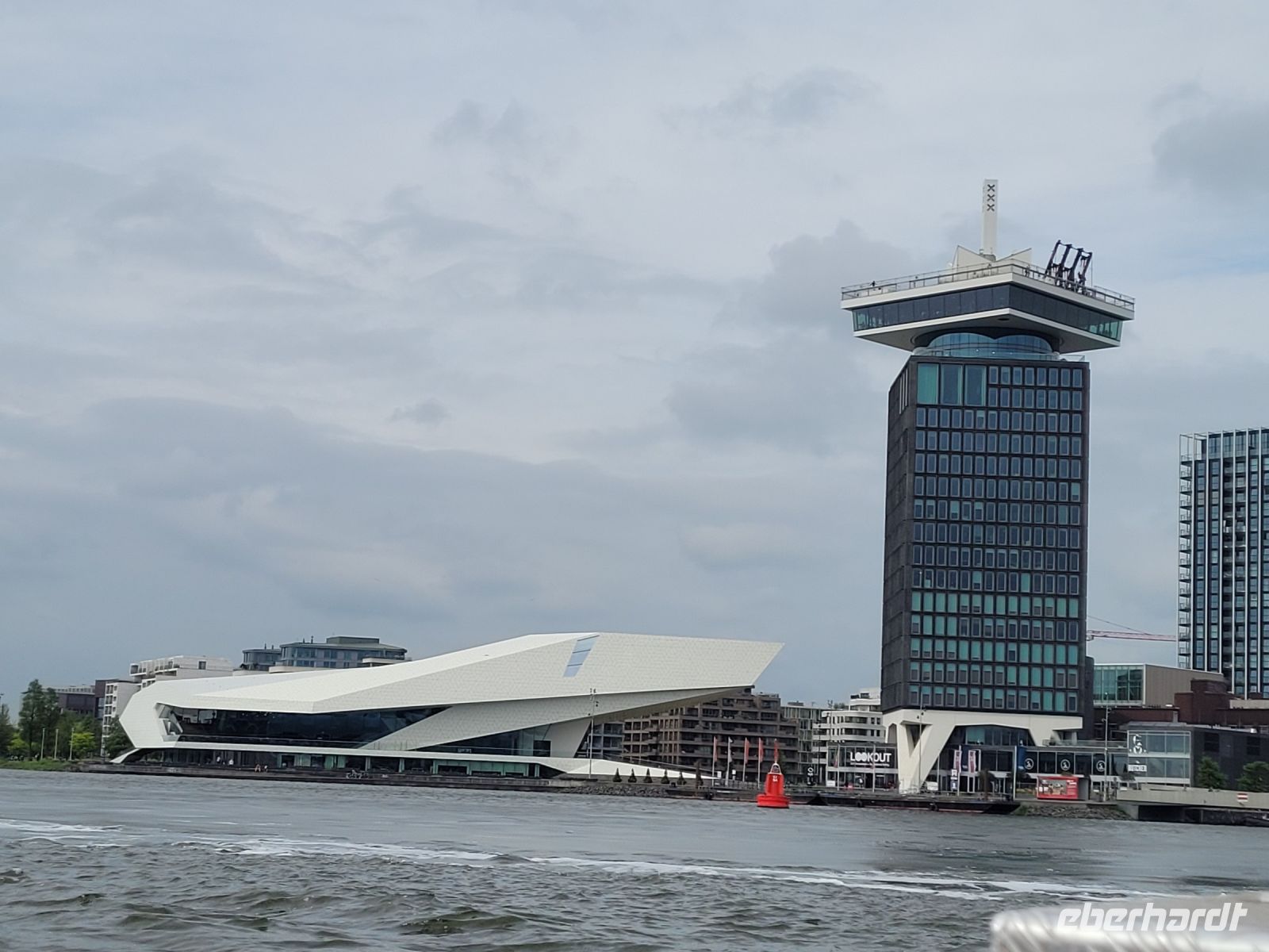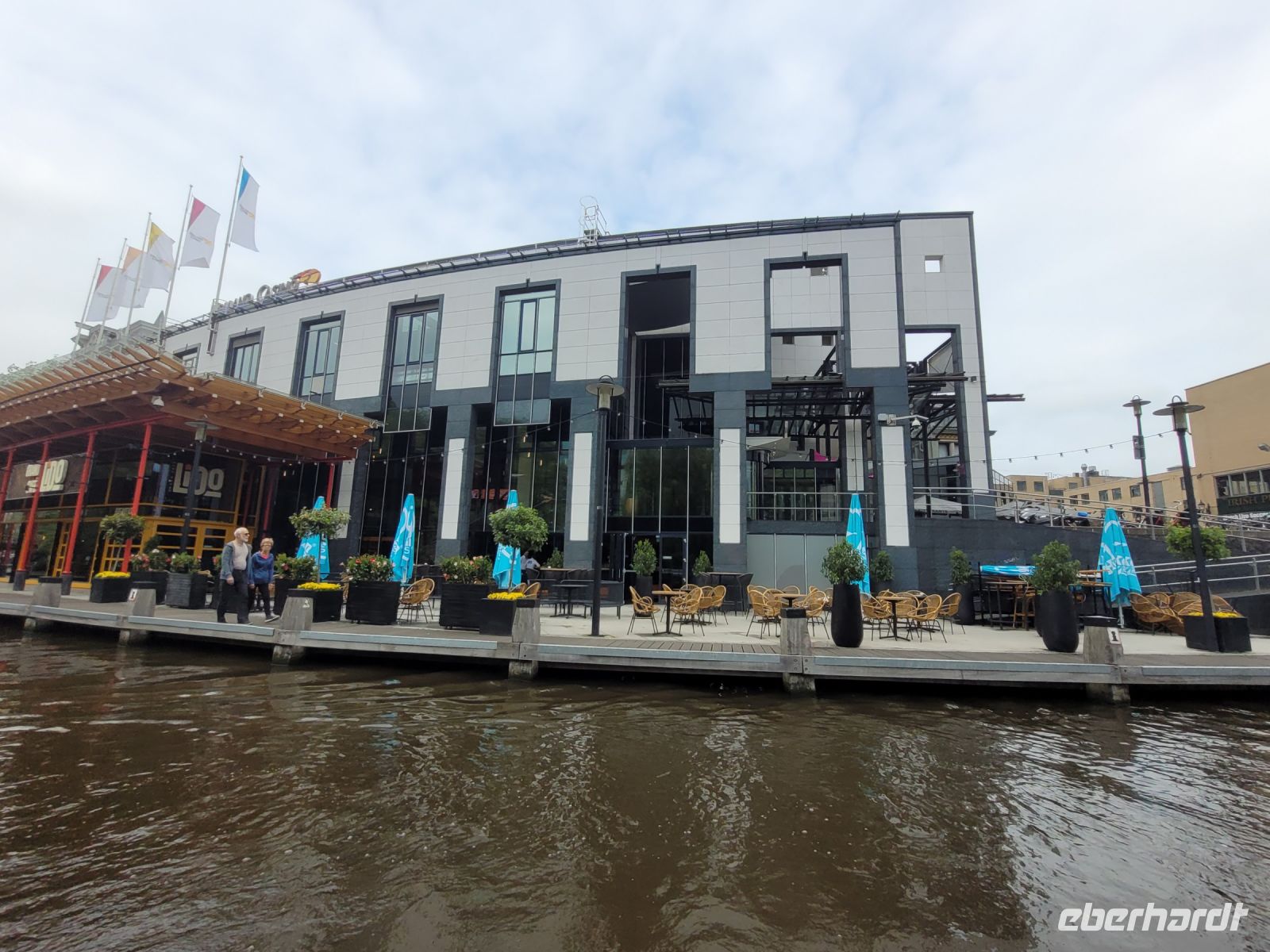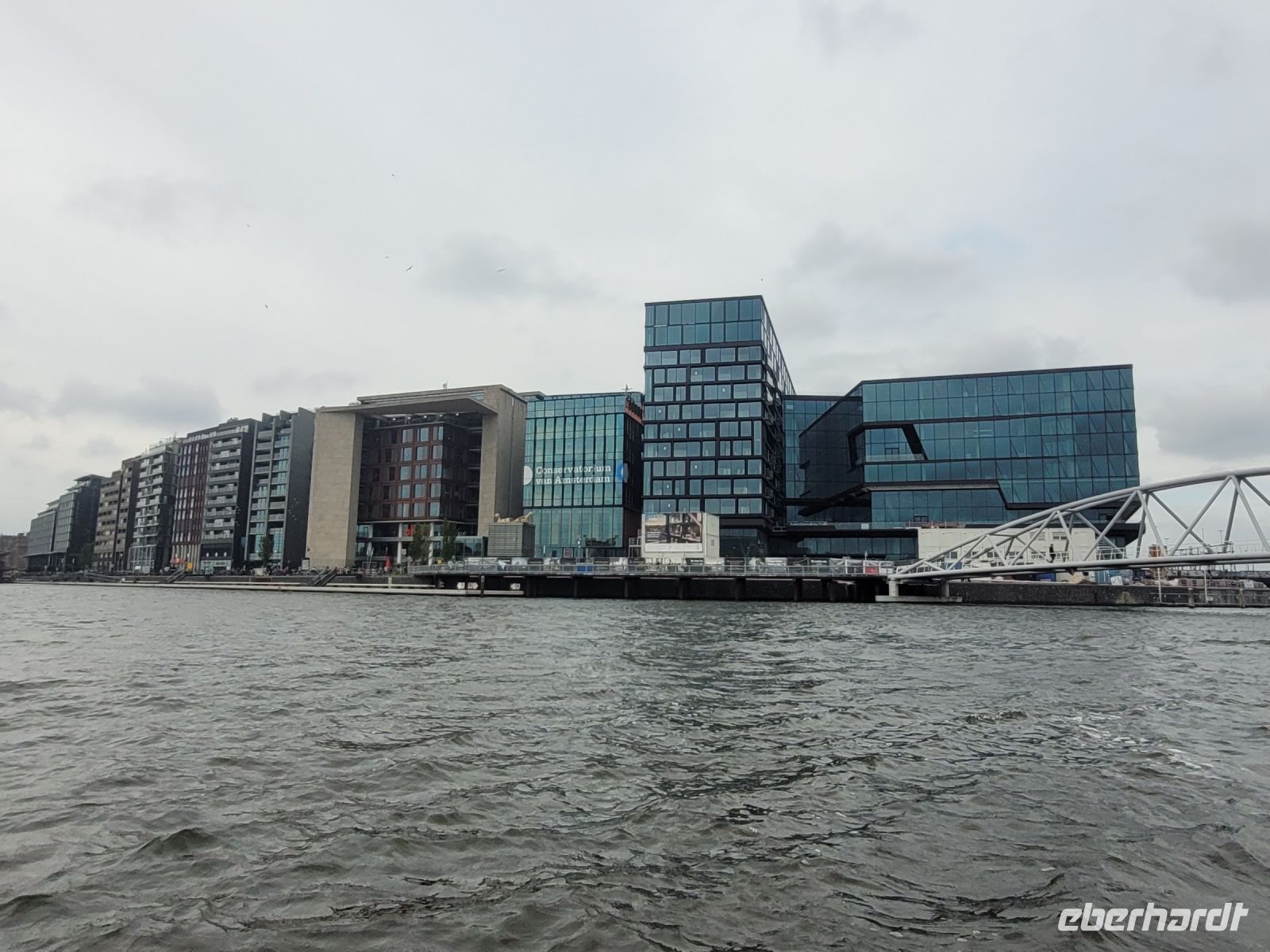 Krönender Abschluss unseres Ausfluges war die Grachtentour. Durch das Oosterdok am Nemo vorbei - technisches Museum in Form eines Walfischs, weiter in die Oudeschans - vorbei am Montelban-Turm, mit Blick in die Nieuwe Amstel biegen wir etwa nach 270° um die Altstadt in eine innere Gracht um dann entgegen dem Uhrzeigersinn weiterzufahren. Viele Quergrachten mit unzähligen Brücken sehen wir bei unserer Fahrt, sowie zahlreiche der Prachthäuser in der Heren-, Prinsen- und Kaizersgracht und zum Abschluss ein Museumsschiff, einen Nachbau des V.O.C.