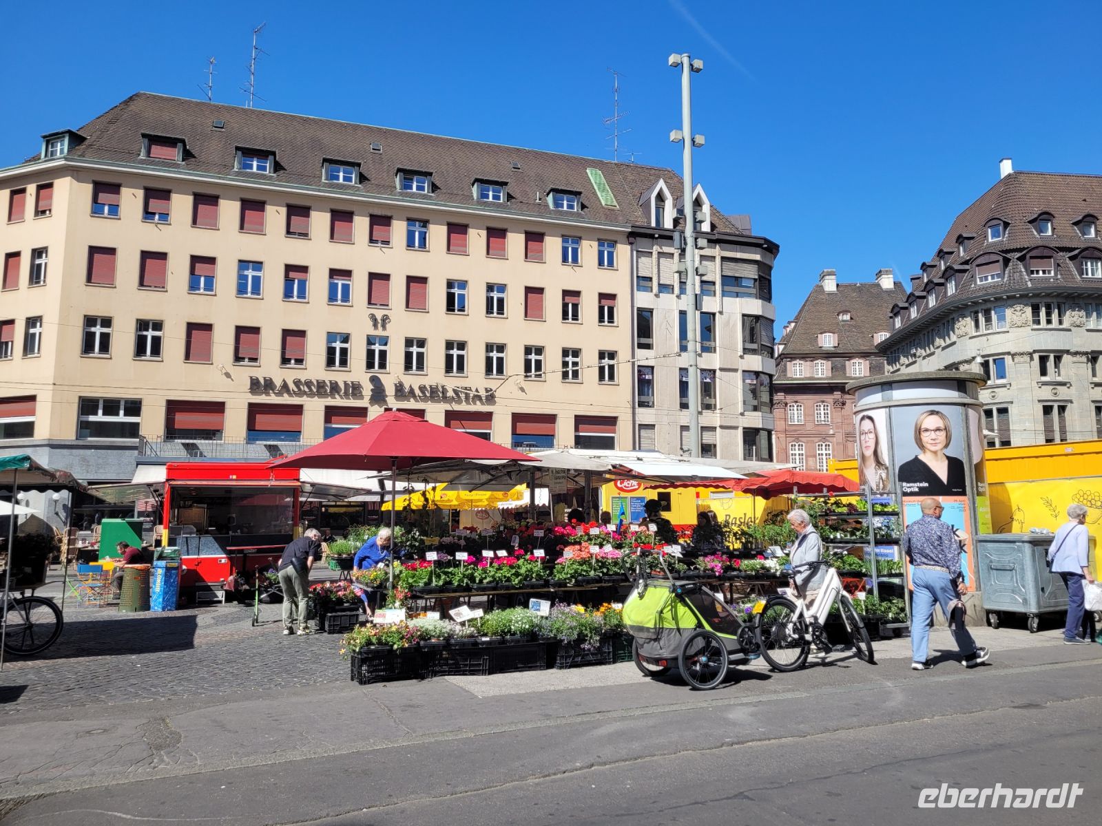 Ein weiteres optisches Highlight fanden wir auf dem Marktplatz, dem Mittelpunkt der Basler Altstadt. Hier fiel sofort die rote, bemalte Sandsteinfassade des Rathauses ins Auge, das zwischen 1507 und 1513 errichtet wurde. Zu Ehren eines Besuches der englischen Königin Elisabeth II. erhielt es seinen heutigen Anstrich.