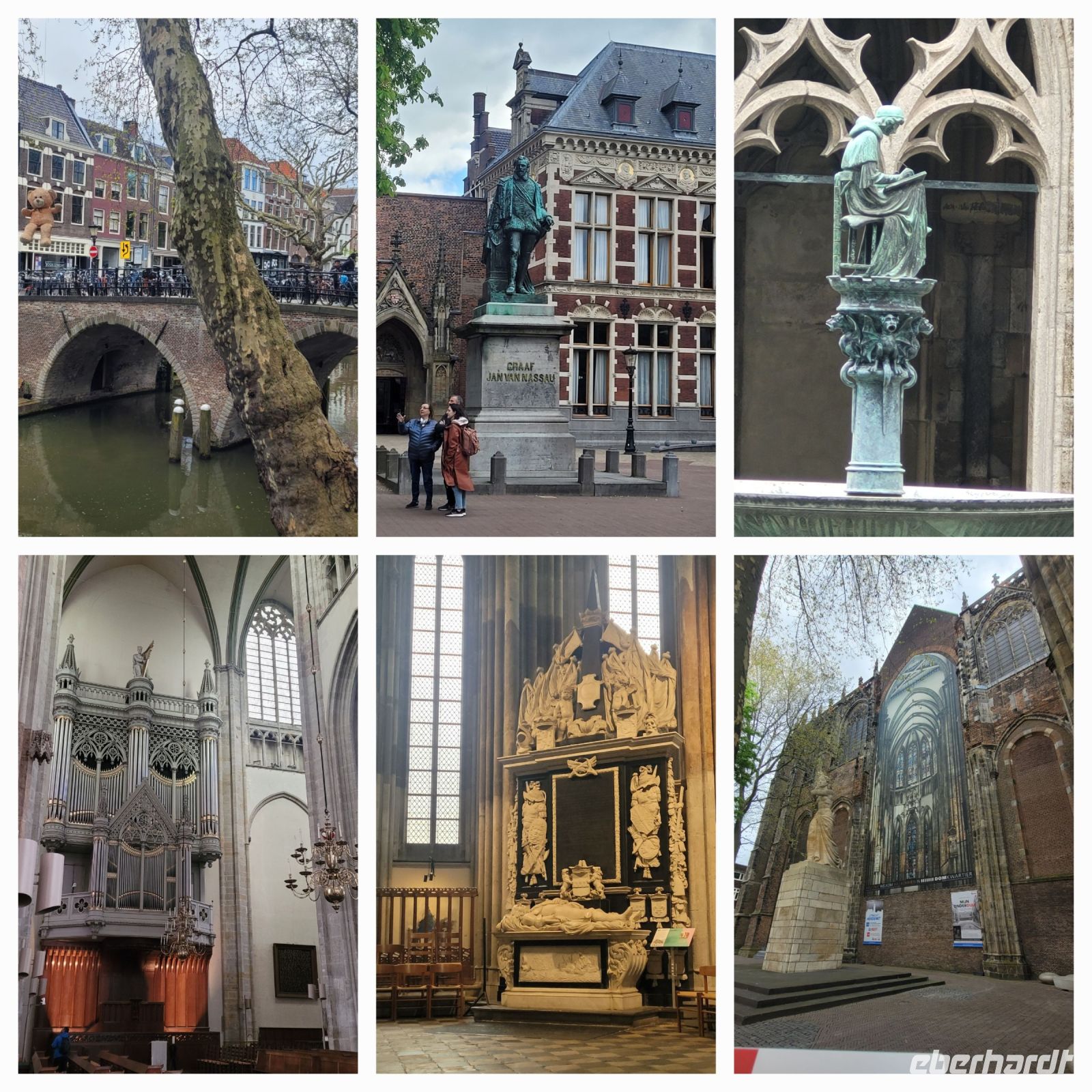 Heute werden wir in der Hauptstadt der Provinz Utrecht zu Gast sein. Den Vormittag starteten wir gemütlich mit einem Sektfrühstück und anschließenden Informationen der Reiseleiter für die kommenden Tage. Mit dem PTI Bus starteten wir nach Utrecht, dass man liebevoll das „kleine Amsterdam“ nennt. Entlang der Grachten spazierten wir in der Innenstadt bis zum Dom, eines der bedeutendsten Kirchengebäude der Niederlande. Seit das Langhaus 1674 durch einen Tornado einstürzte, klafft eine Lücke zwischen der Vierung und dem Westturm, mit 112,5 Meter der höchste Kirchturm des Landes. Er hat ein Hemony-Glockenspiel aus dem 17. Jahrhundert. Wunderschöne alte Häuser und Stadtschlösser zieren die Strassen, überall Blumen und Bänkchen vor den Häusern runden das Stadtbild ab. Vergessen darf man auch nicht die Universität (größte der NL) mit ihrer berühmten Bibliothek, den architektonisch bedeutenden Campus im Osten der Stadt und das Studentenwohnheim „De Bisschoppen“.