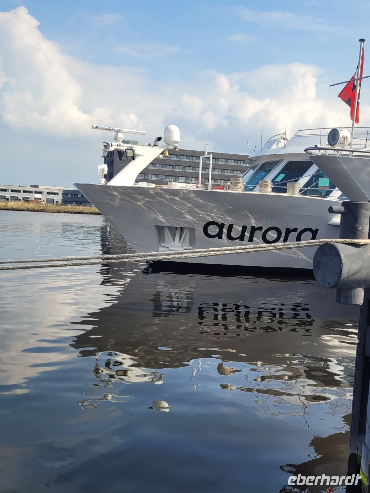 Im Anschluss fuhr unser Bus 25 km nach Haarlem zur MS Aurora, die dort vor Anker lag. In der Lounge erwartete man uns mit einer kleinen Erfrischung. Das Check-in war schnell erledigt und die MA der Crew brachten uns auf die Kabine. Vor dem leckeren Dinner stellte uns Kapitän Marco seine Mannschaft vor. Den Abend ließen wir in der Lounge mit Musik von Jordan ausklingen.