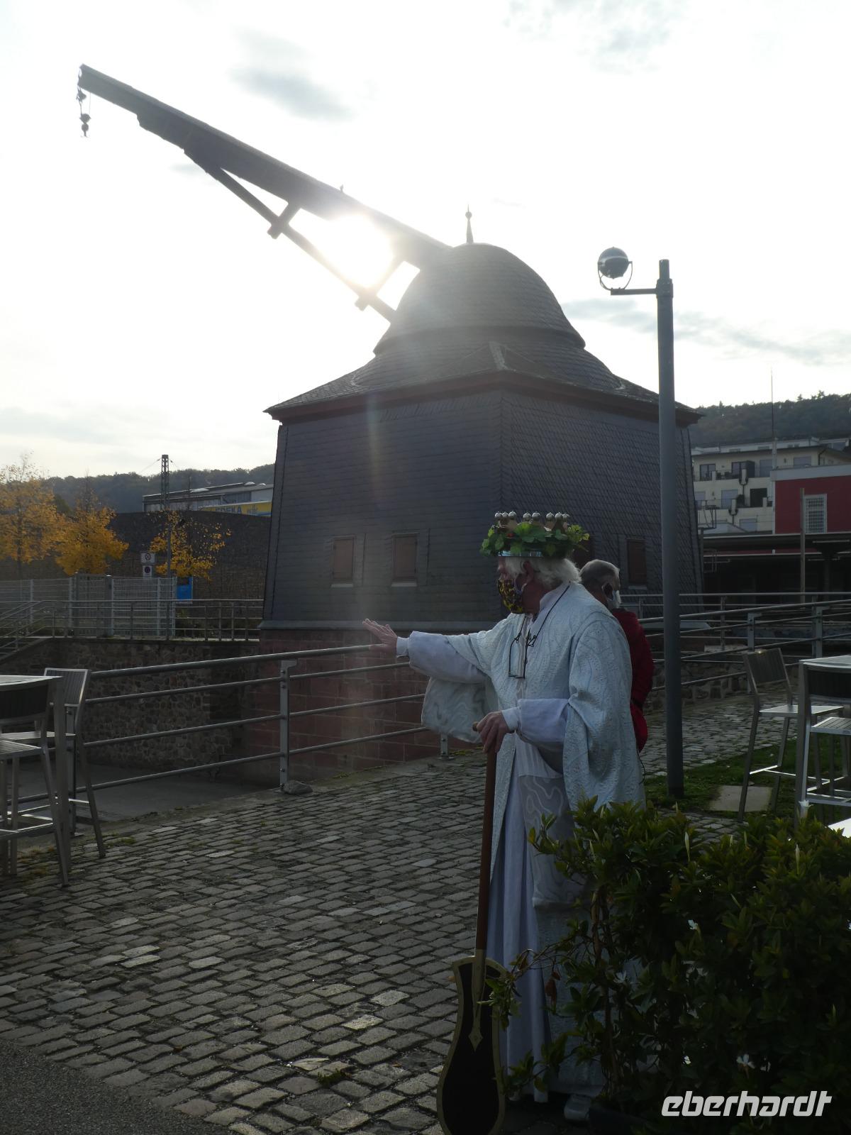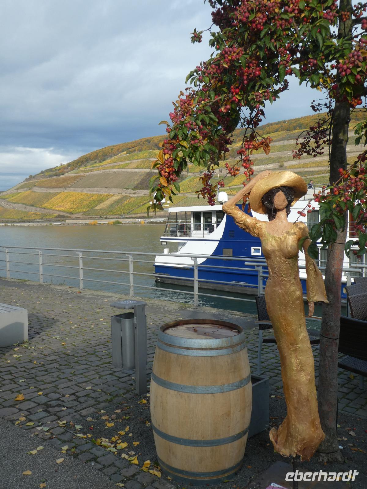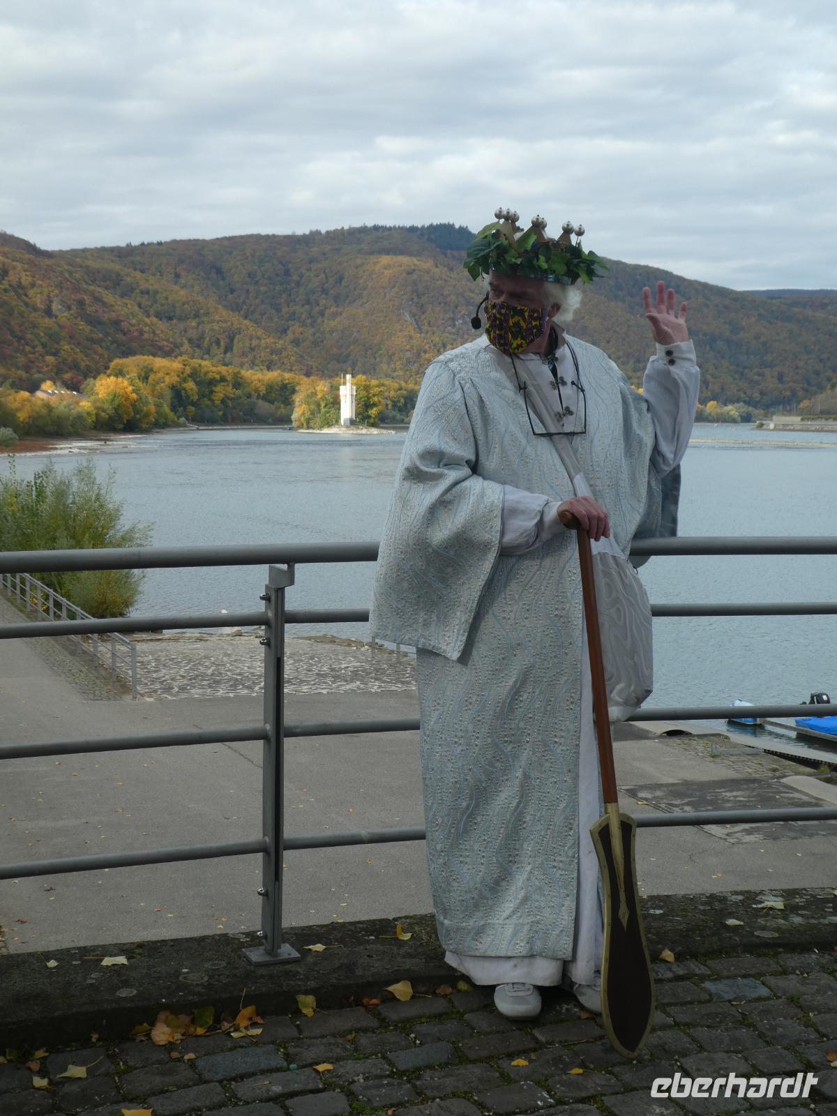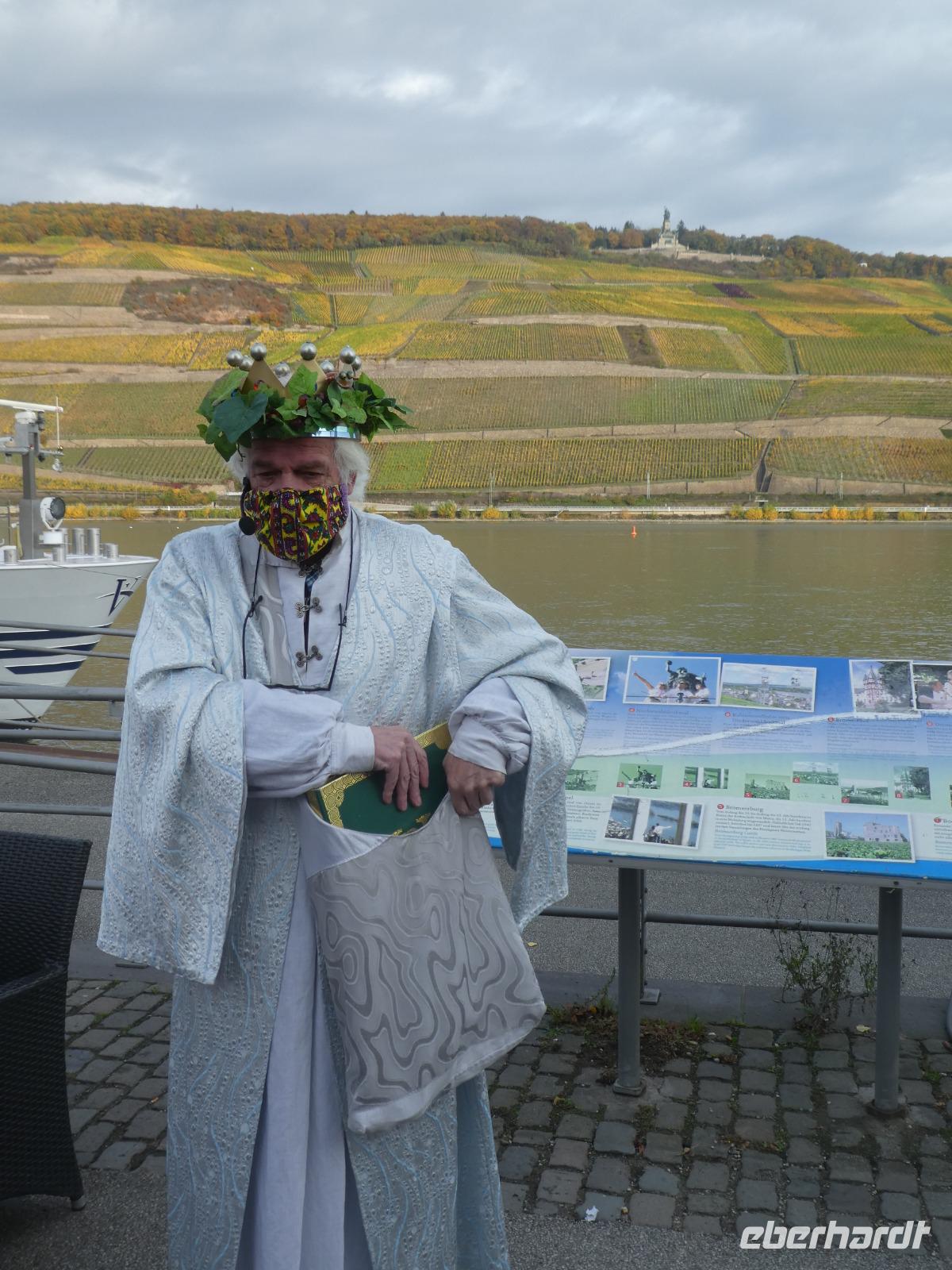 In der Nacht legte unser Schiff in Bingen an. Das Tor zum romantischen Mittelrheintal wie sie auch genannt wird. Oberhalb der Stadt thront die Burg Klopp die leider nicht zu besichtigen ist. Auf der anderen Seite des Rhein befindet sich Burg Ehrenfels und Rüdesheim. Von Rüdesheim führt die Seilbahn zum Niederwalddenkmal. Es war Zeit die Stadt individuell zu erkunden oder mit dem „Vater Rhein" unterwegs zu sein. Mit ihm tauchen wir in die Geschichte von Bingen und des Rhein ein. Der Sage nach sitz er auf dem Grund der der Mäuseturminsel und beobachtet das Geschehen auf dem Rhein. Wir spazierten zum Rhein-Nahe Eck und erfuhren die Geschichte des Mäuseturm. Wir verließen Bingen und unser Schiff brachte uns in das romantischen Mittelrheintal, das seit 2002 auf der Liste des UNESCO Weltkulturerbes steht. Vorbei an den Weinbergen sahen wir den Loreley Felsen und an der Spitze der Halbinsel saß die Loreley. Weiter ging es nach Koblenz wo wir den Rhein vorerst verließen und unsere Fahrt auf der Mosel fortsetzten. Am Abend erreichten wir den Weinanbauort Alken. Schon von weitem war die schön beleuchtete Burg Thurant zu sehen. Nach dem Abendessen lohnte es sich noch einen Ortsrundgang zu unternehmen.