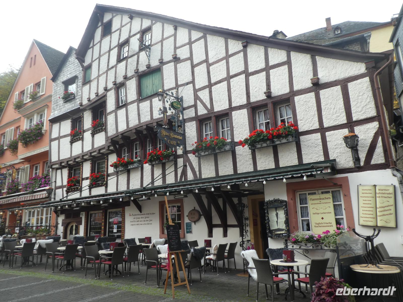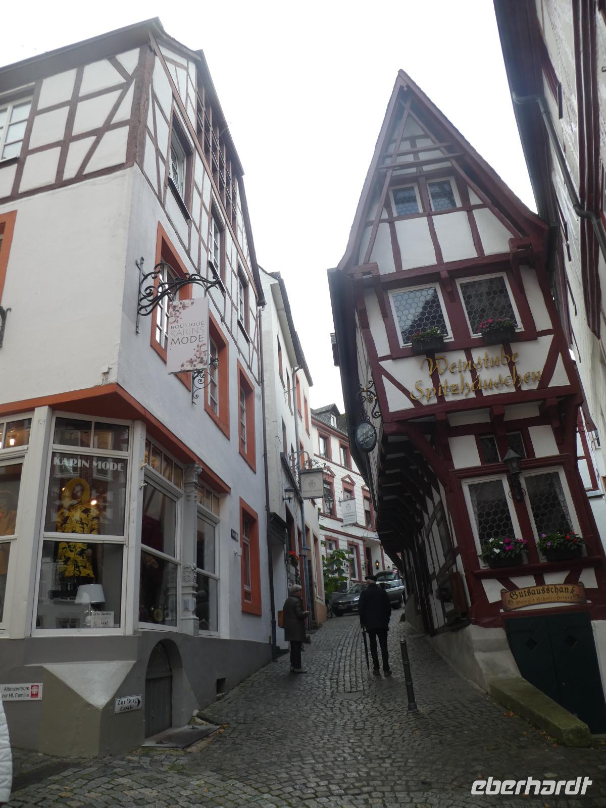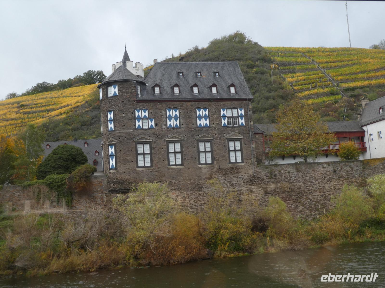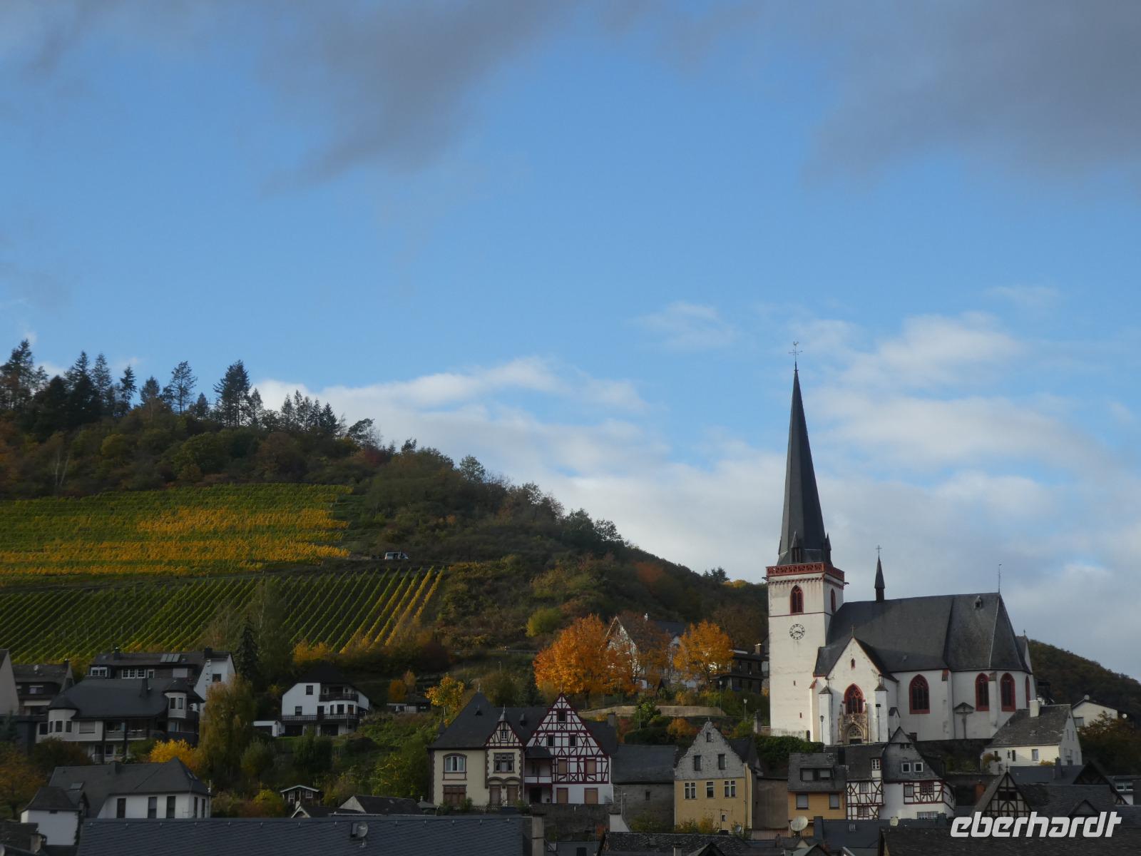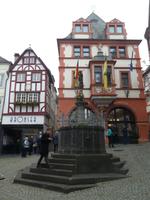 In Bernkastel erwartete uns einer der schönsten und meistbesuchten Weinorte an der Mosel. Überragt wird der Ort von der Burgruine Landshut. Die MS River Voyager lag in Kues und so spazierten wir über die Brücke in die malerische Altstadt. Der Mittelpunkt des Ortes ist der Marktplatz mit dem Alten Rathaus und den schönen Fachwerkhäusern wie das Spitzhaus. Es war genügend Zeit zum Bummeln und Einkaufen in den kleinen Gassen. Nach dem Mittagessen an Bord startete der Weinerlebnisausflug an die Mosel. Nach einer kurzen Stippvisite in Bernkastel fuhr der Reisebus hinauf in die Weinberge. Unterwegs wurde eine alte römische Weinpresse besichtigt. Von der Panoramastraße ergaben sich immer wieder schöne Blicke auf die buntgefärbten Weinberge und in das Moseltal. An der Aussichtsplattform war wohl der Spektakulärste Blick auf die Moselschleife. Die anderen Gäste besuchten in Kues das Weingut Wemmer. Bernkastel-Kues gehört zu einem der ältesten Weinanbaugebiete in Deutschland. Der bekannteste und teuerste Wein in der Bernkasteler Doctor. Die Sommeliere erläuterte die verschiedenen Weinsorten, die zur Probe gereicht wurden.