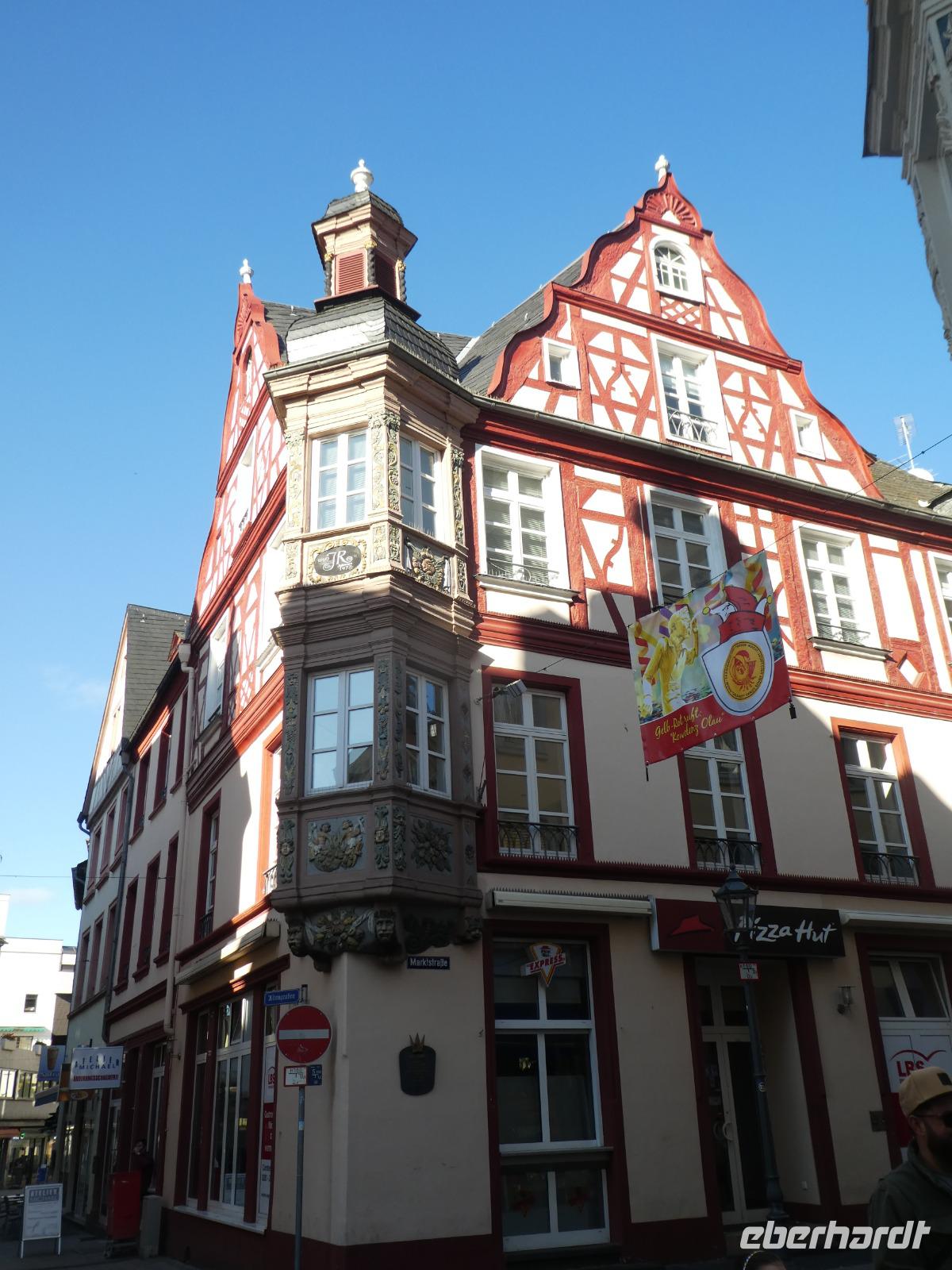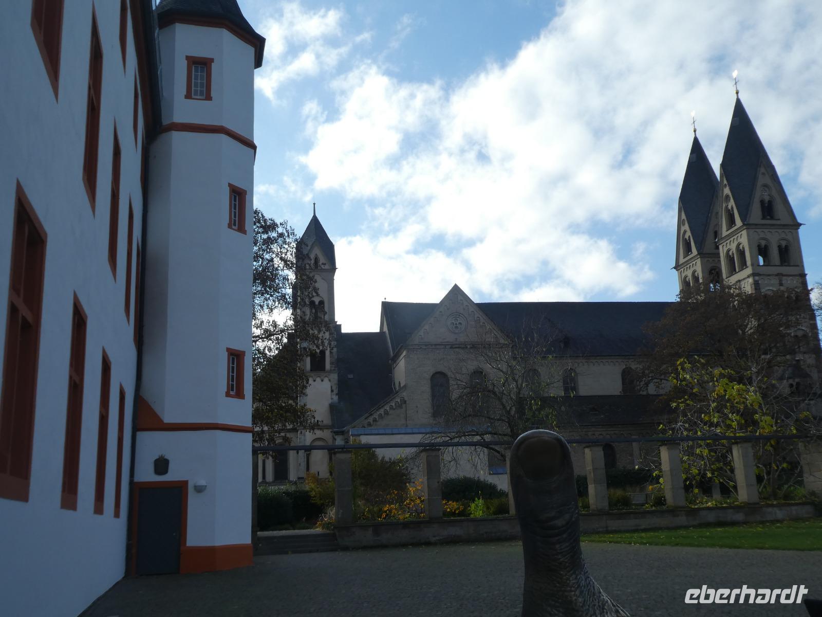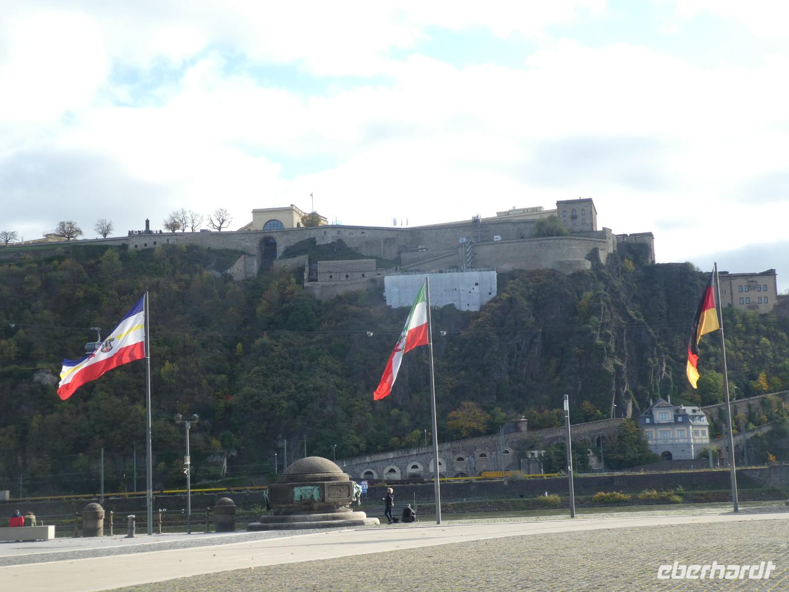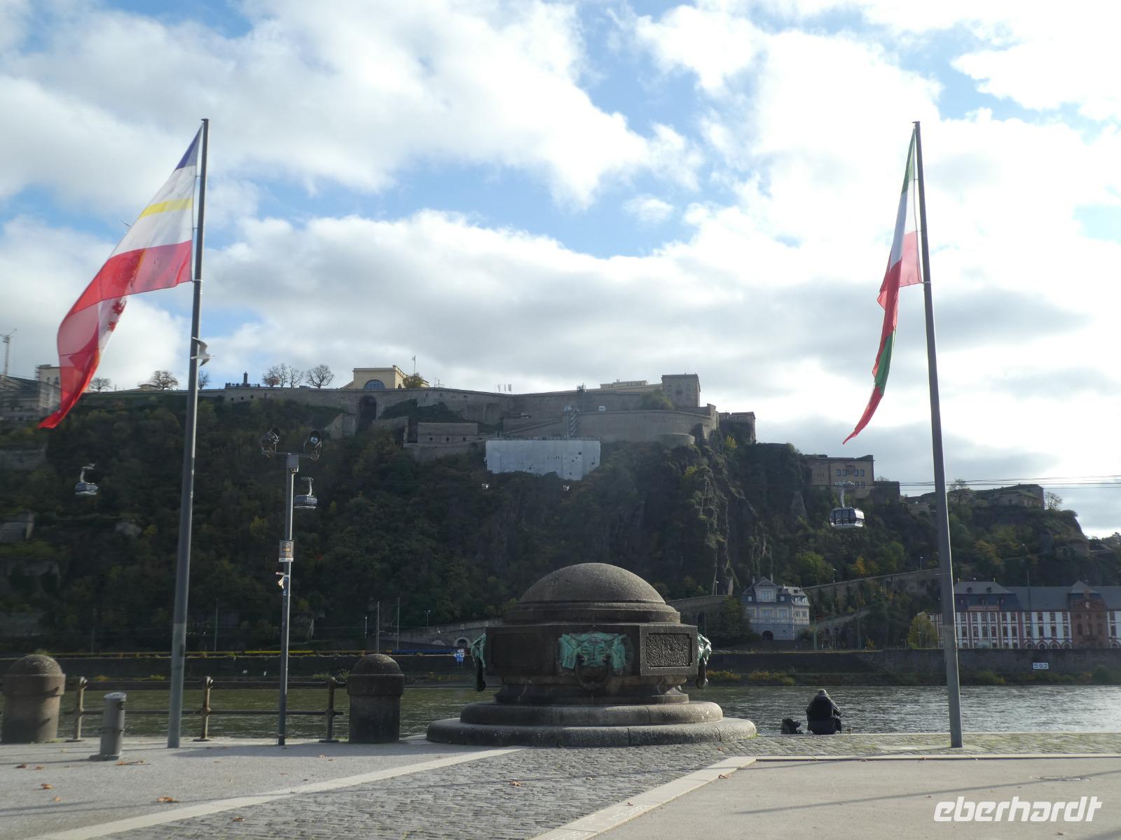 Gegen Mittag erreichten wir Koblenz am Deutschen Eck. Unser Schiff lag an der Mosel und so hatten wir einen schönen Blick auf die Festung Ehrenbreitstein. Sie ist nach der Festung Königstein die zweitgrößte Festung Europas. Mit der Seilbahn schwebten wir hinauf zur Festung. Sie wurde anlässlich der BUGA 2011 gebaut. Von dem Festungsplateau konnte man die schöne Sicht auf Koblenz und das Deutsche Eck mit dem Kaiser Wilhelm Denkmal genießen. An Hand der farblichen Abtrennung war genau zu sehen wo die Mosel sich mit dem Rhein verbindet. Wieder an der Rheinpromenade angelangt begann die Stadtführung durch die Altstadt. Die Basilika St. Kastor ist die älteste der Stadt. Auf dem Görresplatz bewunderten wir den Brunnen mit der Historiensäule wo die Geschichte Koblenz erläutert wird. Wir spazierten weiter zum Rathausplatz. Im Hof des Rathauses steht der Schängelbrunnen. Die Stadtführerin erzählte die Geschichte des Wahrzeichens der Stadt. Auf einem Sockel steht der Bub und spuckt aller paar Minuten einen Wasserstrahl. Noch einen Abstecher zum Danzhaus und ein Blick auf den Augenroller und schon hatten wir das Schiff wieder erreicht. In der Nacht lag das Schiff in Koblenz und so war ein abendlicher Spaziergang möglich um Koblenz bei Nacht kennen zu lernen.