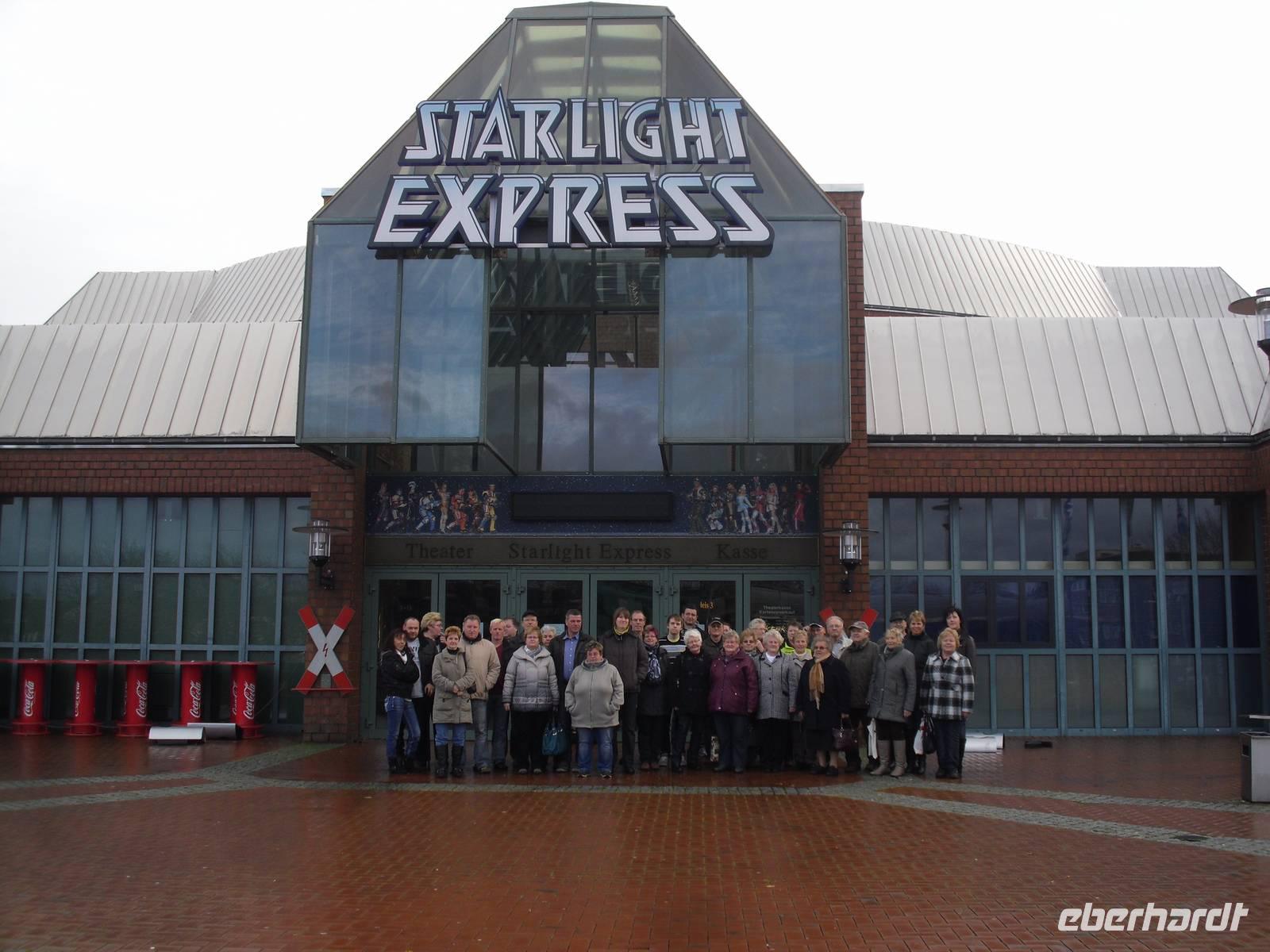 Heute war erst einmal Ausschlafen angesagt. Nach einem reichhaltigen Frühstücksbuffet trafen wir uns gut gestärkt kurz vor 10 Uhr und versammelten uns vor dem Starlight-Express-Theater, um zur Erinnerung an dieses schöne Wochenende ein Gruppenfoto zu erstellen. Anschließend begannen wir die Heimreise über Kassel und Eisenach in die Ausgangsorte.