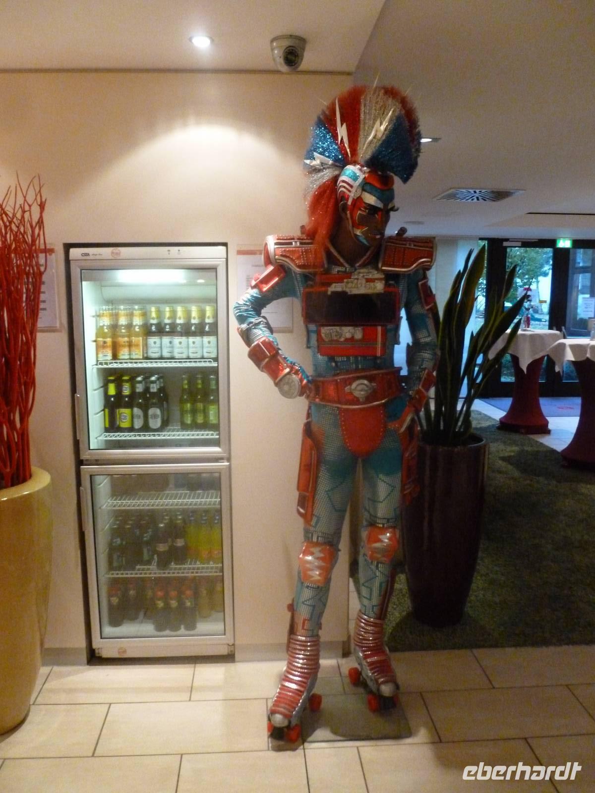 Nachdem unsere Gruppe mit insgesamt 33 Gästen komplett war, führte uns unsere Route über Eisenach und Kassel nach Bochum. Am frühen Nachmittag bezogen wir unsere Zimmer im 4-Sterne-Hotel „RAMADA" in Bochum. Komfortabel ausgestattete Zimmer sorgen hier für beste Wohlfühlatmosphäre. Am Nachmittag blieb uns noch etwas Zeit, um die Innenstadt von Bochum auf eigene Faust zu erkunden und uns in aller Ruhe auf den Abend vorzubereiten. Dank der unmittelbaren Nähe unseres Hotels zum Starlight-Express-Theater ging am Abend jeder Gast individuell zum eigentlichen „Highlight" dieser 2-Tages-Reise - der Musical-Veranstaltung „STARLIGHT -EXPRESS". Das Stück erzählt den Traum eines Kindes von der Weltmeisterschaft der internationalen Züge. Im Mittelpunkt steht die kleine, liebenswerte, aber eigentlich veraltete Dampflock Rusty und ihr Kampf gegen die eigentlich übermächtigen Gegner in Form der hypermodernen E-Lok Elektra und der mächtigen Diesellok Greaseball. Hierbei spielt insbesondere die Liebe zum 1.-Klasse-Waggon Pearl eine besondere Rolle. Denn als diese vor die Entscheidung gestellt wird, mit wem sie die Rennen bestreiten soll, mit Rusty oder Elektra, weiß sie nicht für wen sie sich entscheiden soll. Am Ende gewinnt Rusty sowohl das Rennen als auch Pearl für sich.