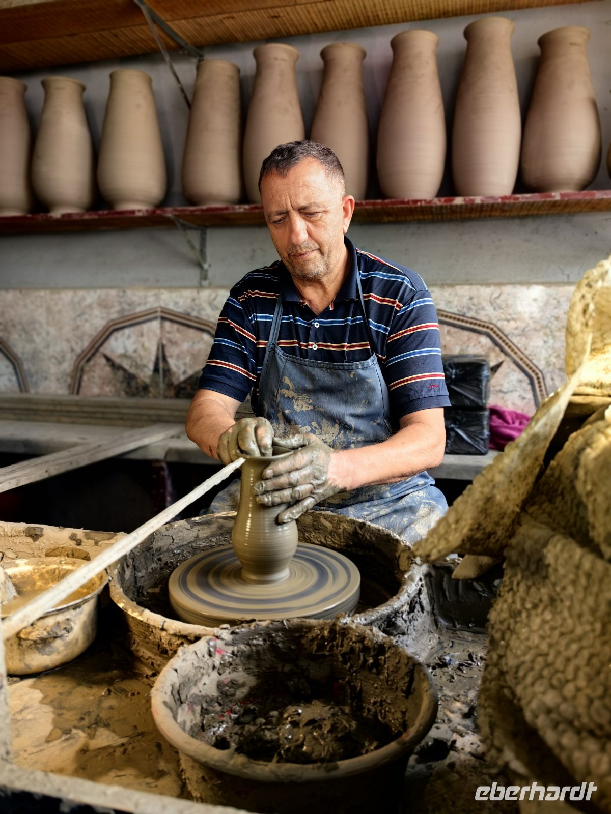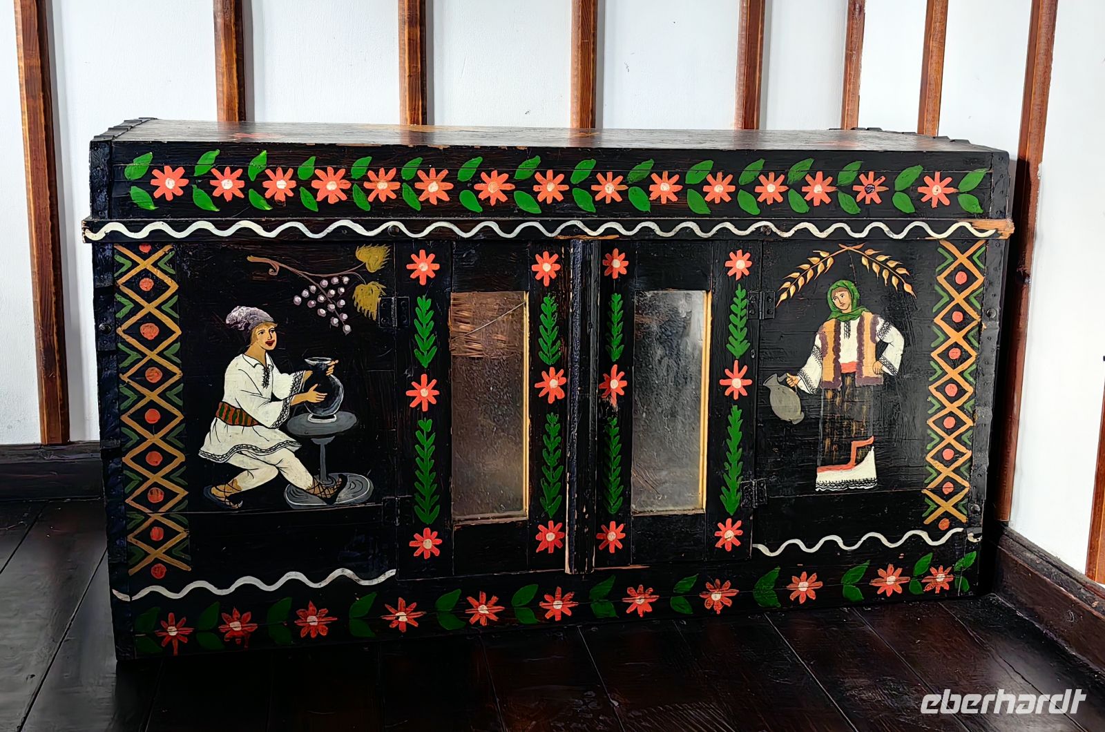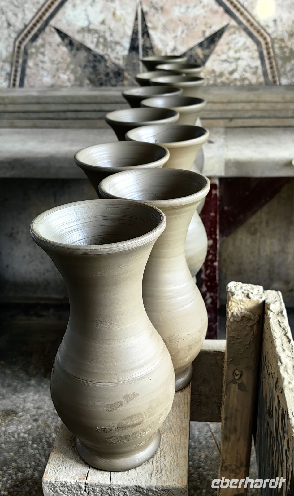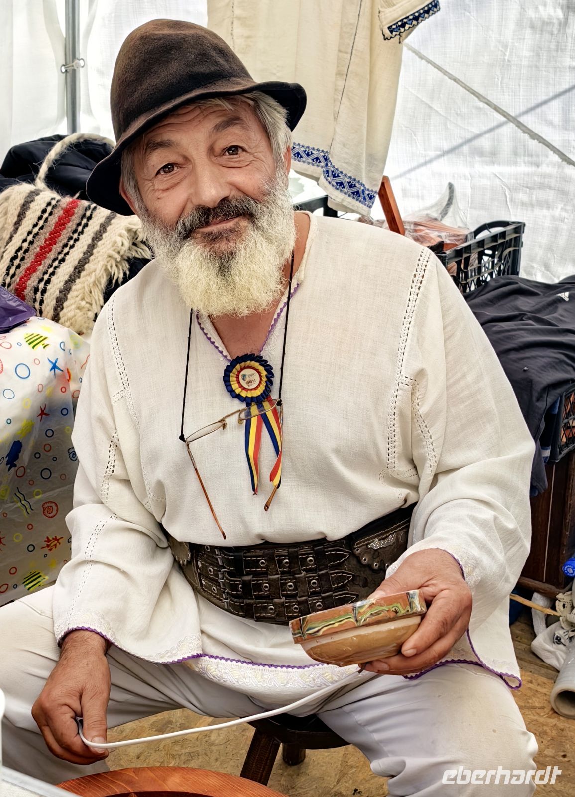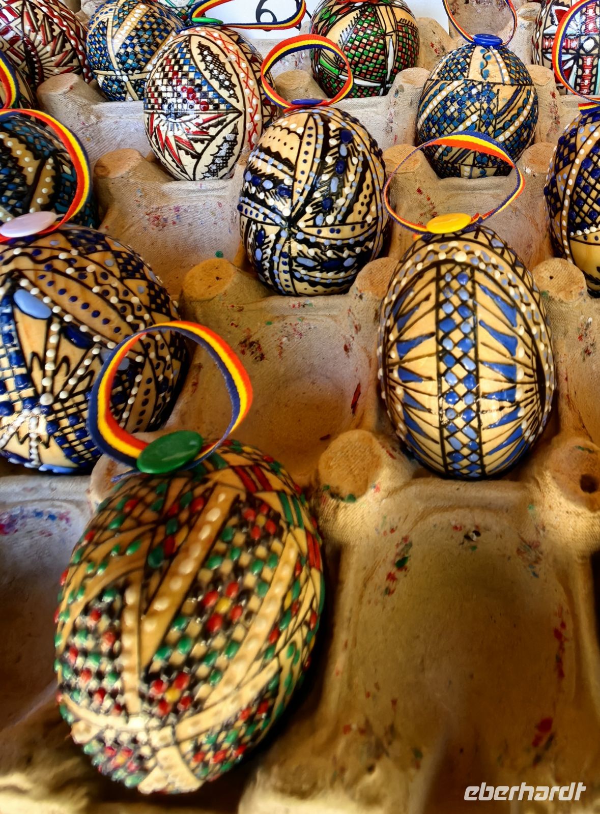Am Morgen machen wir zuallererst einen Abstecher nach Marginea im Kreis Suceava und schauen uns die Werkstätten an, die die berühmte schwarze Keramik herstellen. Im Gegensatz zum üblichen Oxidationsbrand werden die schwarzen Gefäße geschmaucht, was bedeutet, sie werden erst etwa vier Stunden in der allgemein üblichen Brenntechnik gebrannt und danach weitere vier Stunden sozusagen geräuchert, indem man die obere Öffnung mit Scherben und Lehm verschließt und möglichst hermetisch abdichtet und die Gefäße dadurch dem geschlossenen Brand aussetzt. Einige Gäste finden ein schönes Mitbringsel und wir fahren weiter durch die lieblich hügelige Landschaft der Bukovina. Erneut sehen wir etliche Storchennester, samt Bewohnern und unser Fahrer ist sogar so nett, an der Straße zu halten, damit wir endlich einen Pferdewagen fotografieren können.