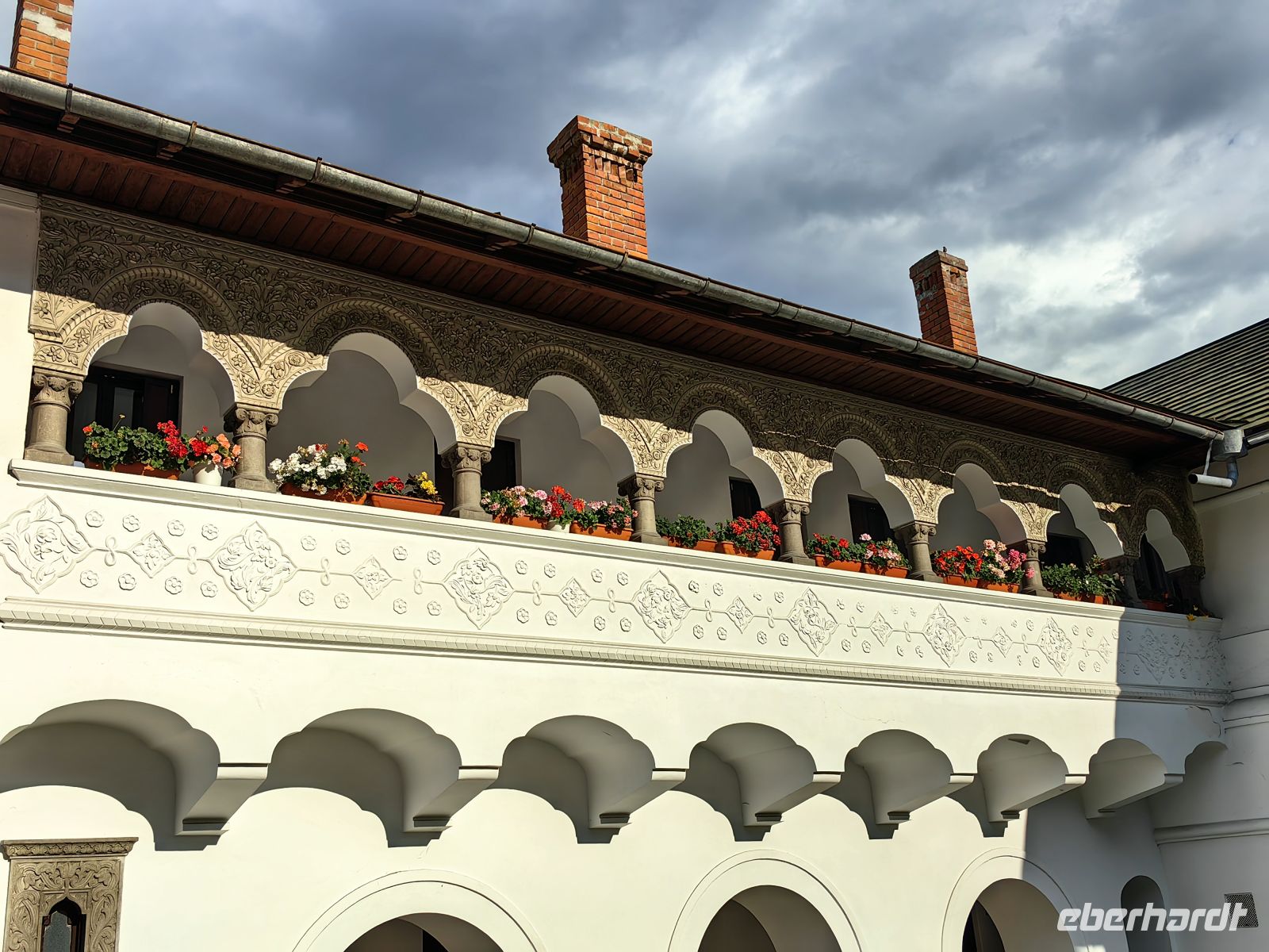 Am Nachmittag fahren wir weiter und besuchen das Kloster Sinaia. Das Kloster wurde 1695 von Fürst Mihail Cantacuzino gegründet und nach dem großen Katharinenkloster auf dem Berg Sinai in Ägypten benannt. Seit 2005 wird es von 13 orthodoxen Mönchen unter der Leitung von Hegumen Macarie Bogu bewohnt. Wir schauen uns die Anlage gemeinsam an und machen Erinnerungsfotos und bekommen sogar zwei orthodoxe Priester auf unsere Fotos gebannt.