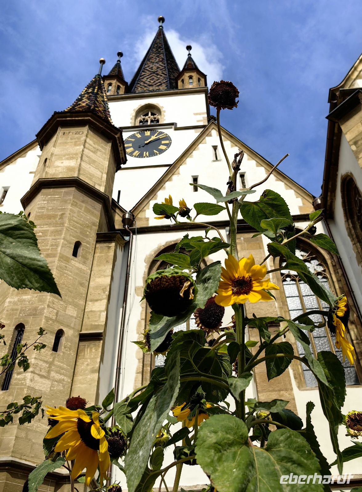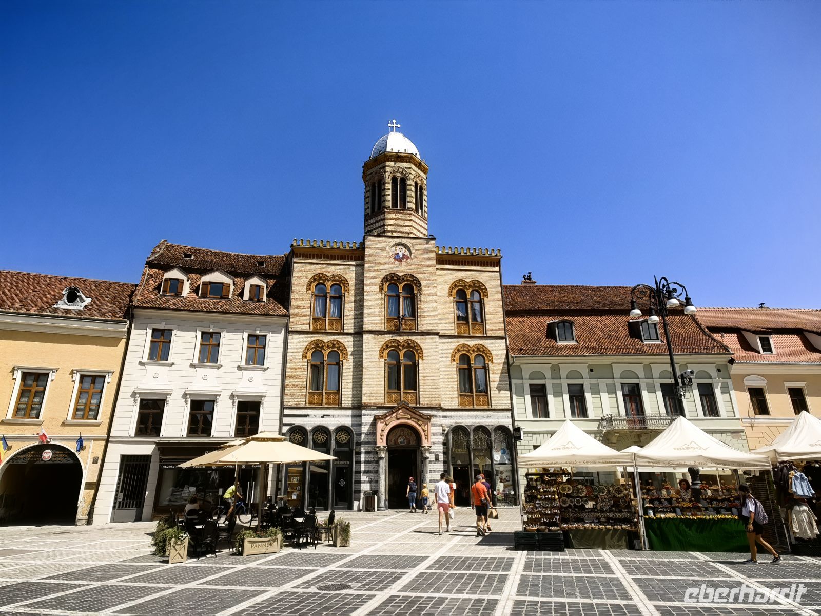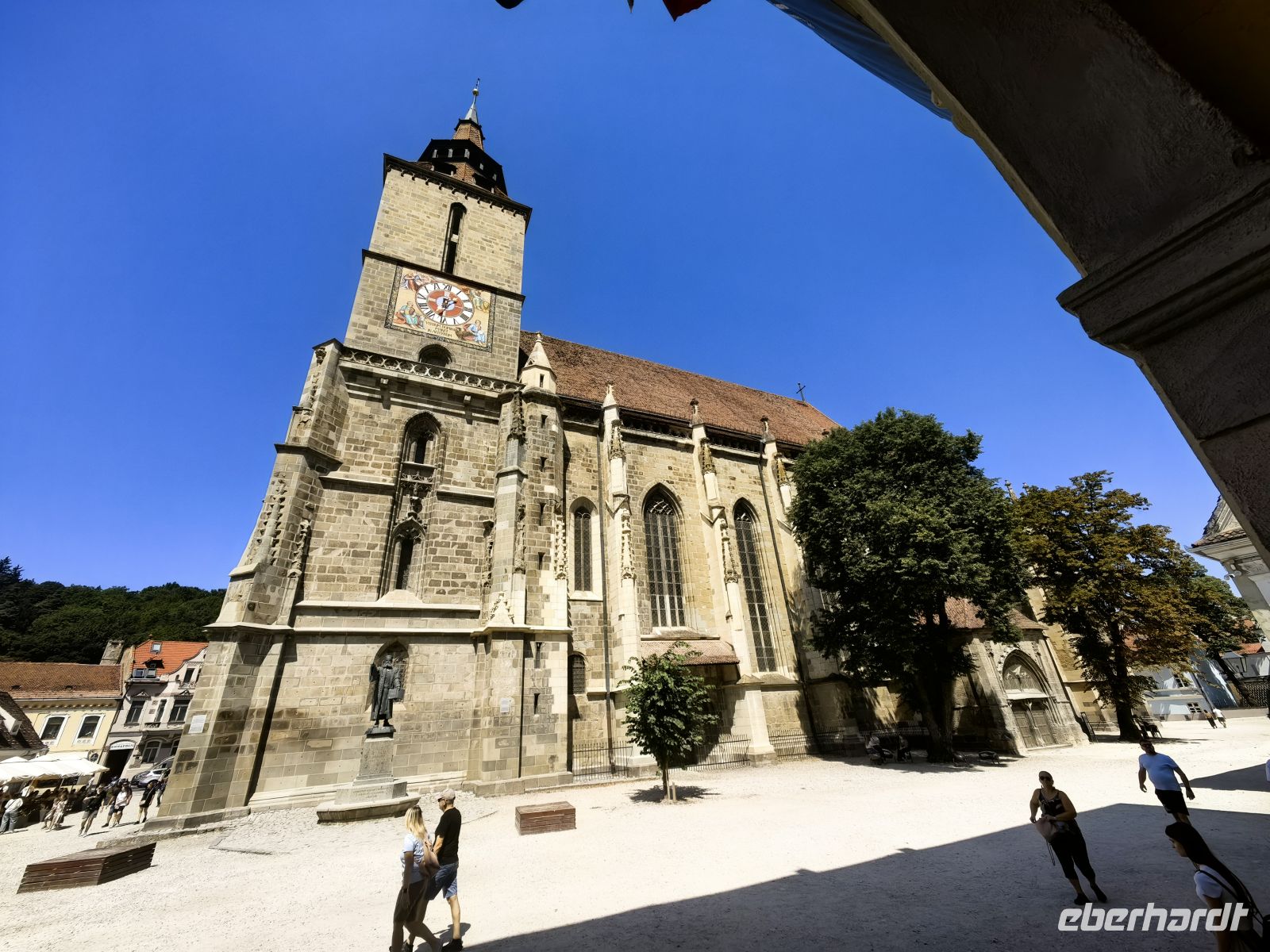 Wir schauen uns zuerst den beeindruckenden Marktplatz mit dem Rathaus an und werfen einen Blick in die versteckte Kirche Maria Himmelfahrt und wollen gleich darauf noch die berühmte Biserica Neagra (die Schwarze Kirche) besichtigen. Sie beherbergt eine Sammlung an Orientteppichen und zählt zu den bedeutendsten Baudenkmälern Rumäniens. Ursprünglich wurde sie der Heiligen Jungfrau Maria gewidmet und war eine katholische Kirche. Mit der Reformation in Siebenbürgen, wurde das katholische Patrozinium aufgegeben und heute ist sie ein evangelisches Gotteshaus. Den Namen schwarze Kirche verdankt sie einem Stadtbrand im Jahre 1689.