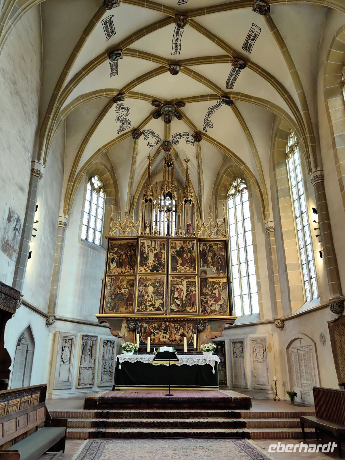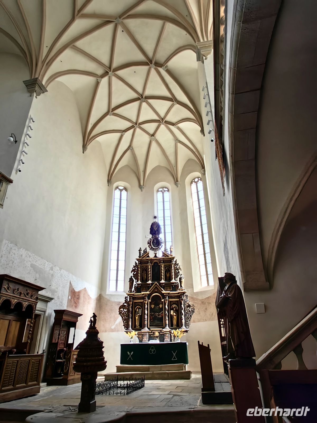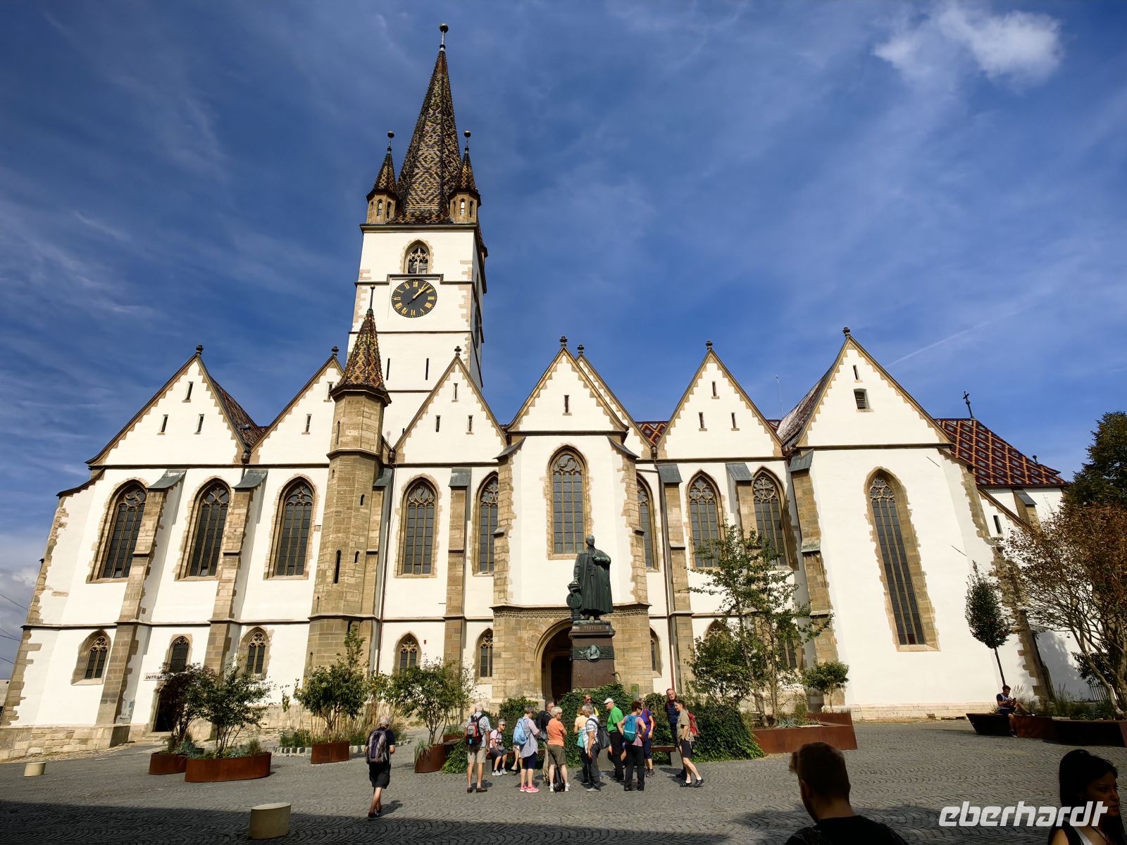 Wir schauen uns zuerst den beeindruckenden Marktplatz mit dem Rathaus an und werfen einen Blick in die versteckte Kirche Maria Himmelfahrt und wollen gleich darauf noch die berühmte Biserica Neagra (die Schwarze Kirche) besichtigen. Sie beherbergt eine Sammlung an Orientteppichen und zählt zu den bedeutendsten Baudenkmälern Rumäniens. Ursprünglich wurde sie der Heiligen Jungfrau Maria gewidmet und war eine katholische Kirche. Mit der Reformation in Siebenbürgen, wurde das katholische Patrozinium aufgegeben und heute ist sie ein evangelisches Gotteshaus. Den Namen schwarze Kirche verdankt sie einem Stadtbrand im Jahre 1689.