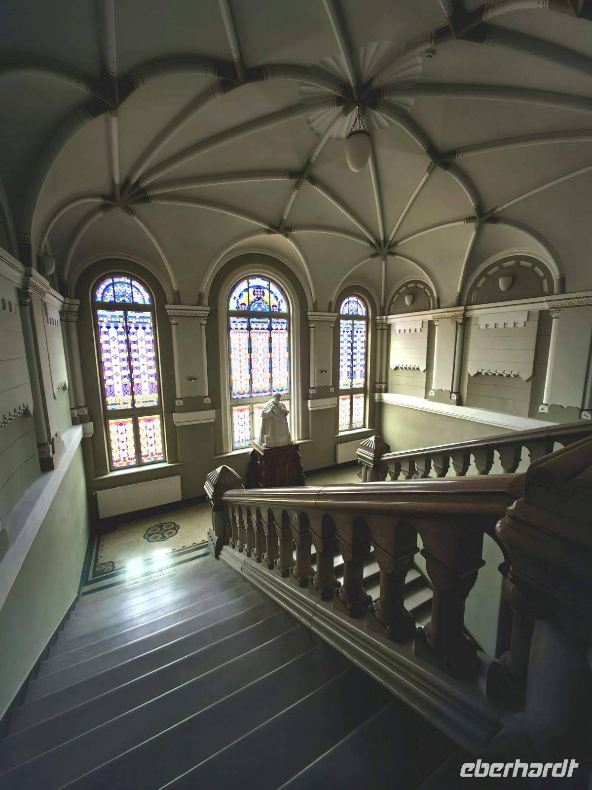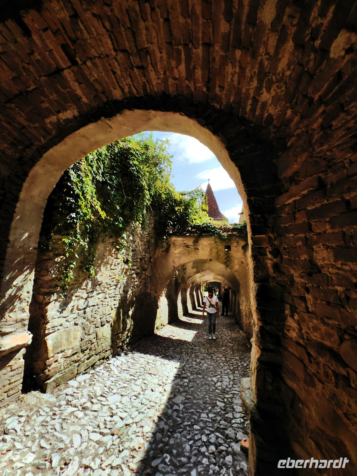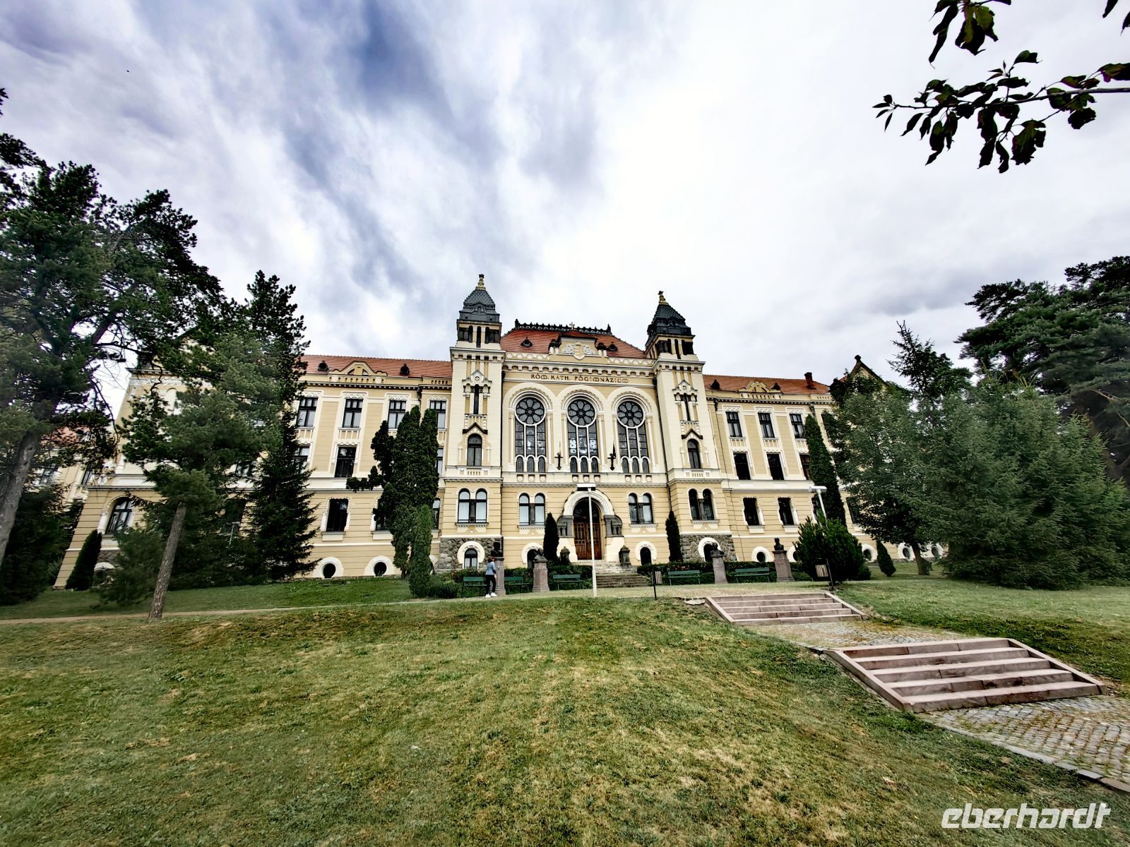 Nun wird es anstrengend. Wir erklimmen die 176 Stufen der sogenannten "gedeckten Schülertreppe", die zum Gipfel des Schulberg-Hügels führt, wo sich das Josef Haltrich Lyzeum befindet, in dem seit Anfang des 17. Jahrhunderts Deutsch unterrichtet wird. Die Schüler und Lehrer dieses Gymnasiums müssen alle sportlich sein, sie legen diesen Weg mehrmals täglich zurück!