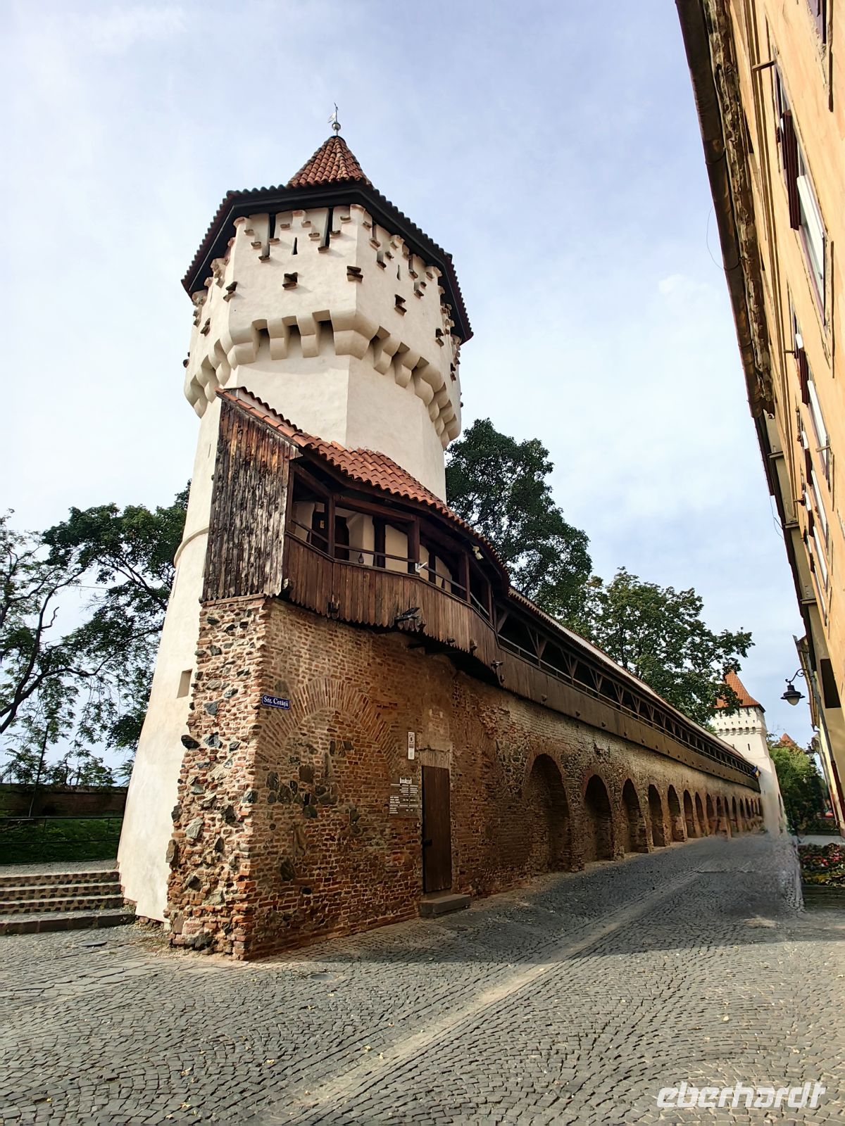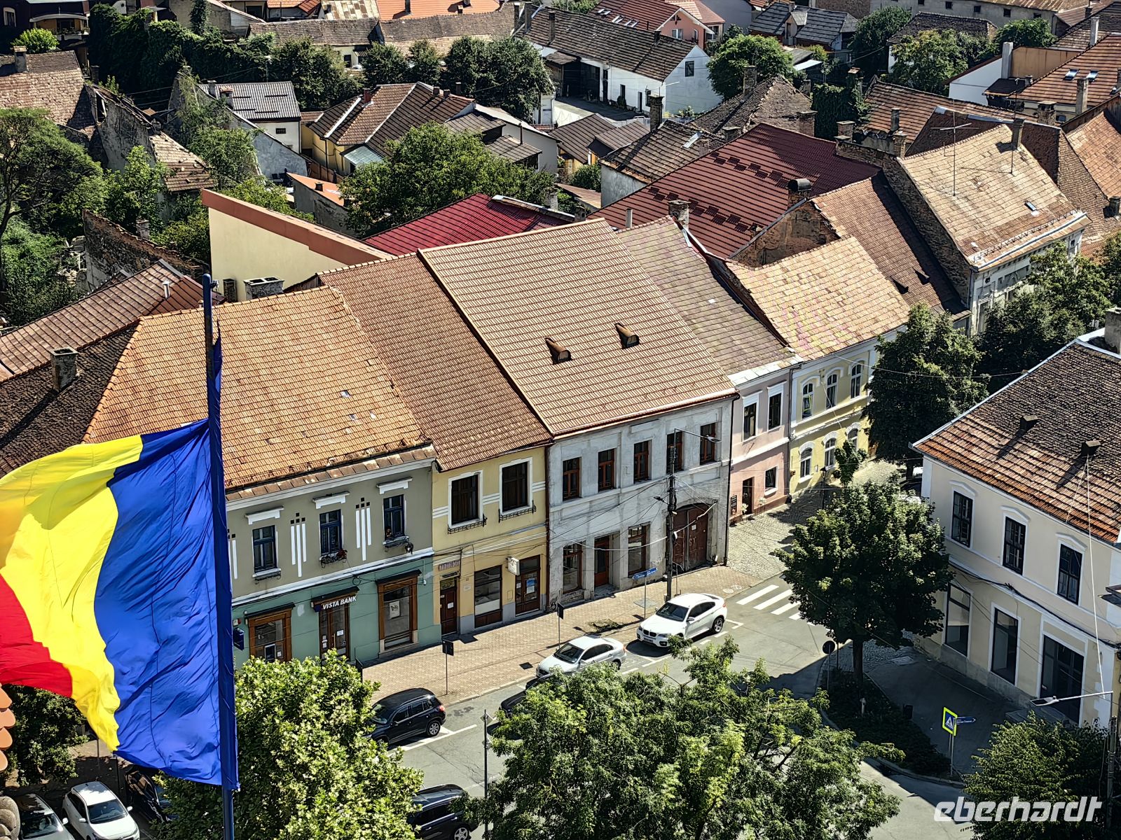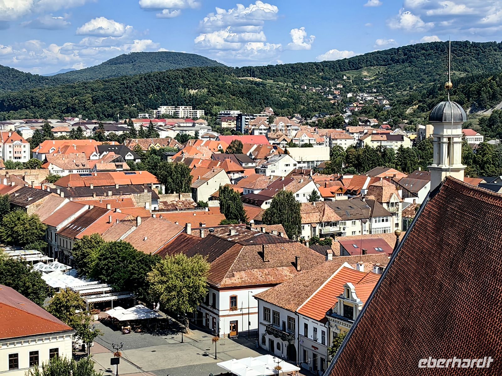 Am Beginn der Fußgängermeile gelegen, schauen wir uns die evangelische Kirche an, im Inneren befindet sich ein schlichter Barockaltar, während die restliche Kirche im Stil der Gotik errichtet wurde. Gegenüber den üppig bemalten Moldauklöstern wirkt sie auf uns eher schmucklos. Die Flaniermeile ist rechts und links von schmucken kleinen Häuschen und unzähligen Cafés und Restaurants gesäumt. Hier suchen wir uns ein schattiges Plätzchen und machen eine gemütliche Mittagspause.