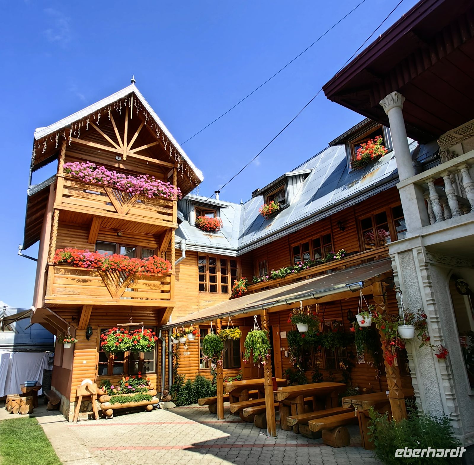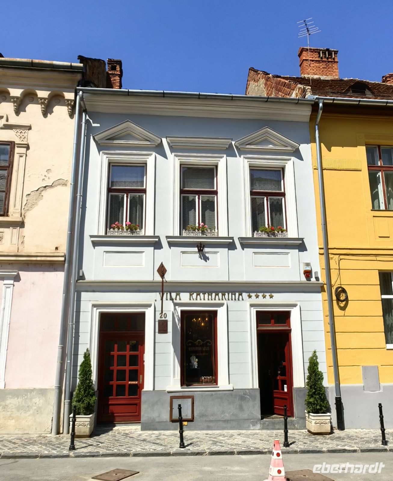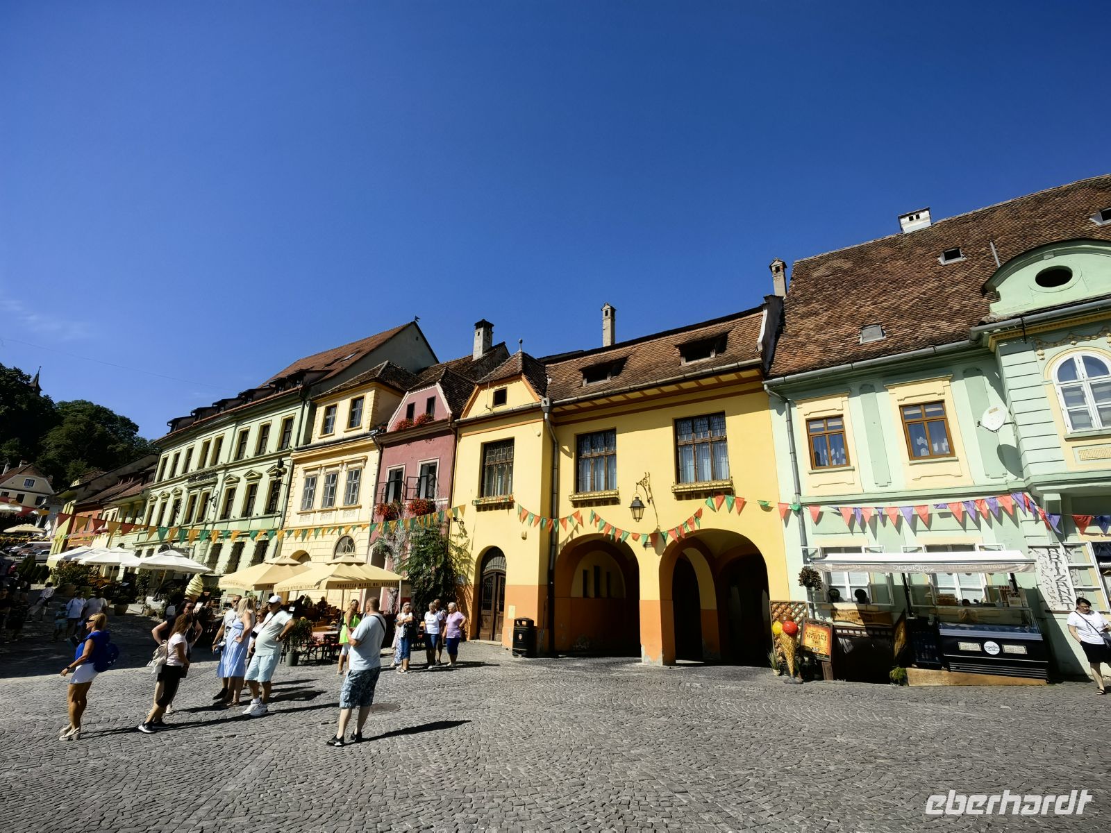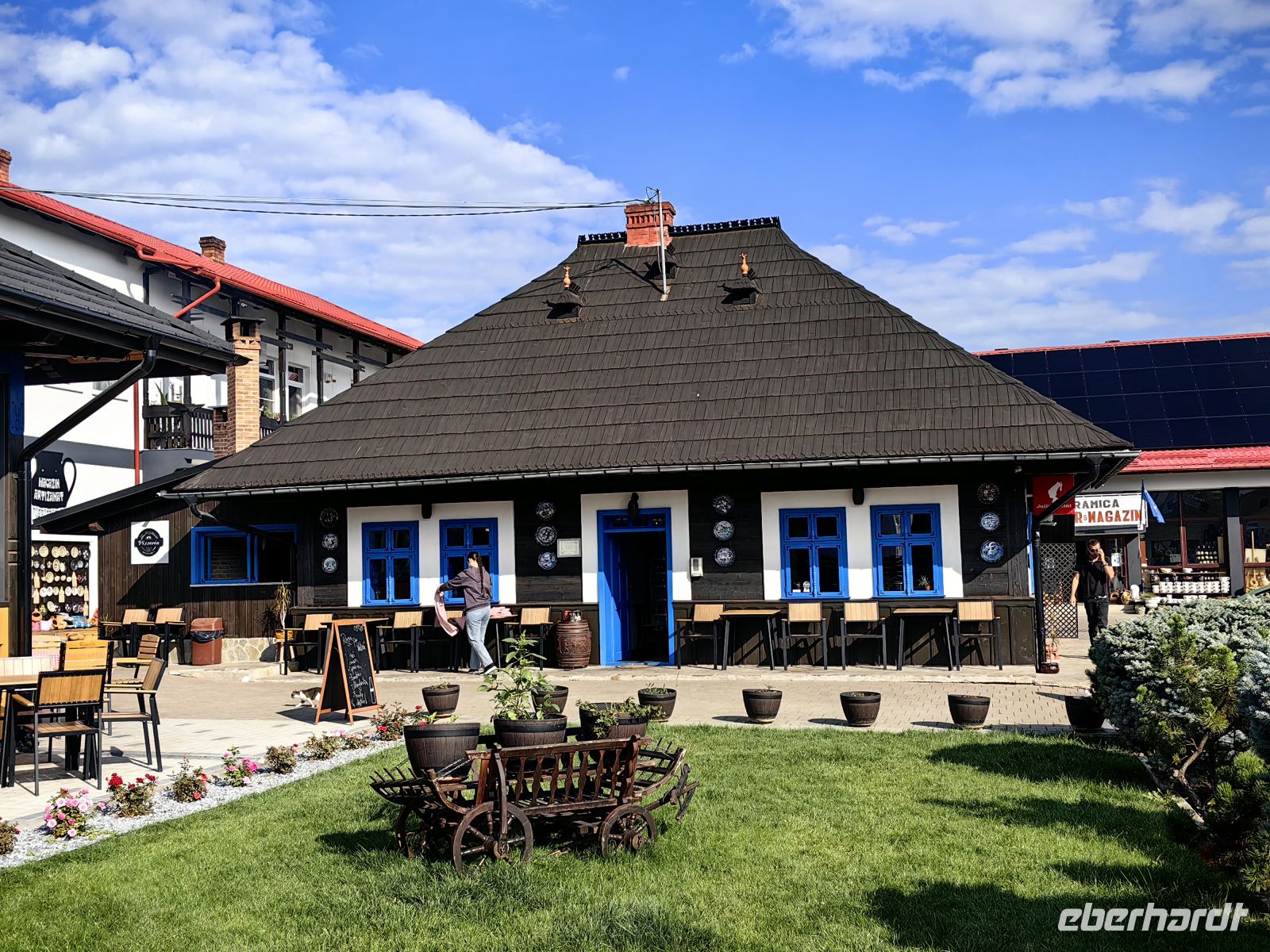 Am Beginn der Fußgängermeile gelegen, schauen wir uns die evangelische Kirche an, im Inneren befindet sich ein schlichter Barockaltar, während die restliche Kirche im Stil der Gotik errichtet wurde. Gegenüber den üppig bemalten Moldauklöstern wirkt sie auf uns eher schmucklos. Die Flaniermeile ist rechts und links von schmucken kleinen Häuschen und unzähligen Cafés und Restaurants gesäumt. Hier suchen wir uns ein schattiges Plätzchen und machen eine gemütliche Mittagspause.