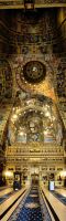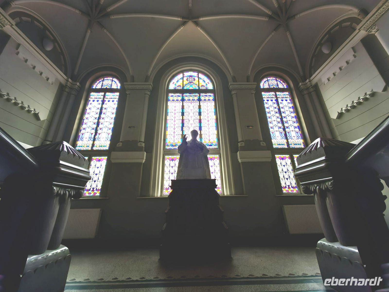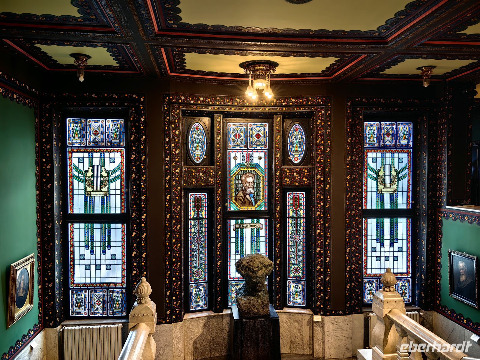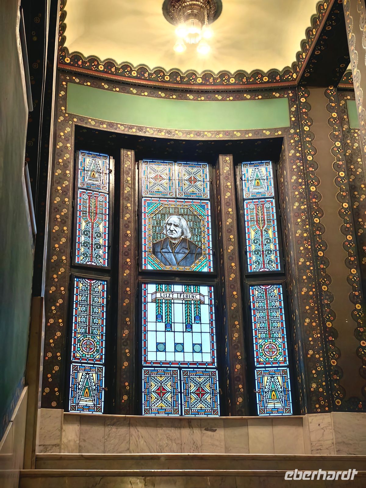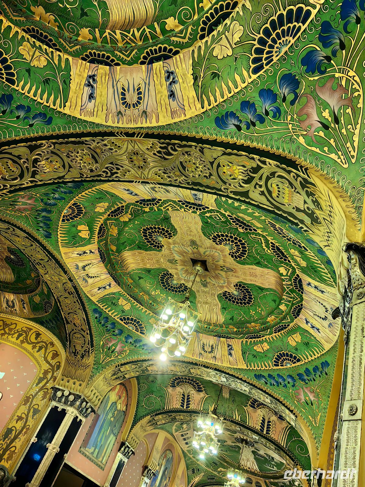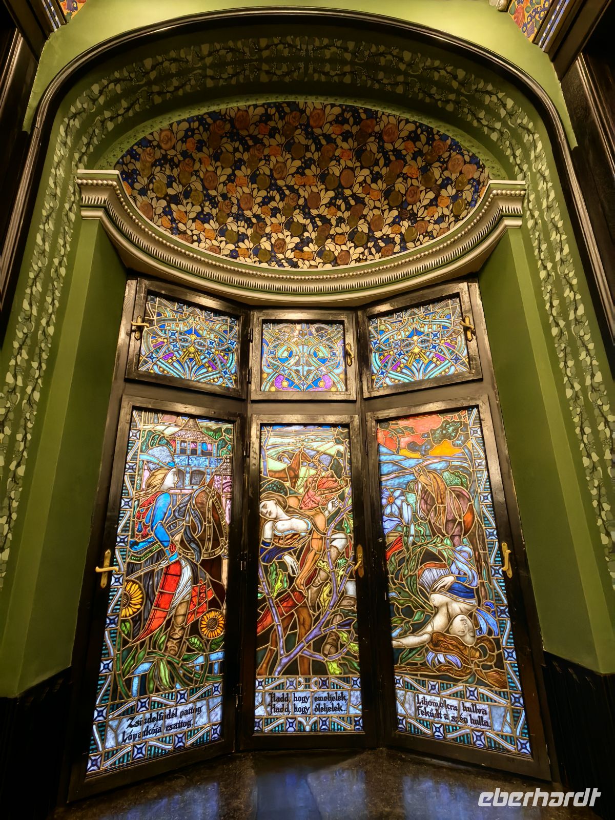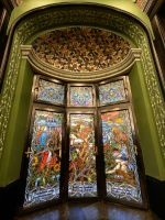 Gleich nach dem Frühstück werfen wir einen Blick ins Innere des Kulturpalastes, der ein Erlebnis für sich ist. Das Gebäude beherbergt die Bibliothek des Kreises Mures, das städtische Museum und die Staatsphilharmonie. Im Inneren staunen wir zuerst über das reich im ungarischen Jugendstil verzierte Foyer, was uns eher an eine Oper erinnert als an einen Kulturpalast. Im großen Saal im ersten Stock schauen wir uns die bunten Glasfenster an, auf denen verschiedene mystische Motive und Folkslegenden verewigt wurden. Im Obergeschoß befinden sich ein prunkvoller Konzertsaal und eine Galerie mit Bildern von rumänischen und ungarischen Künstlern.