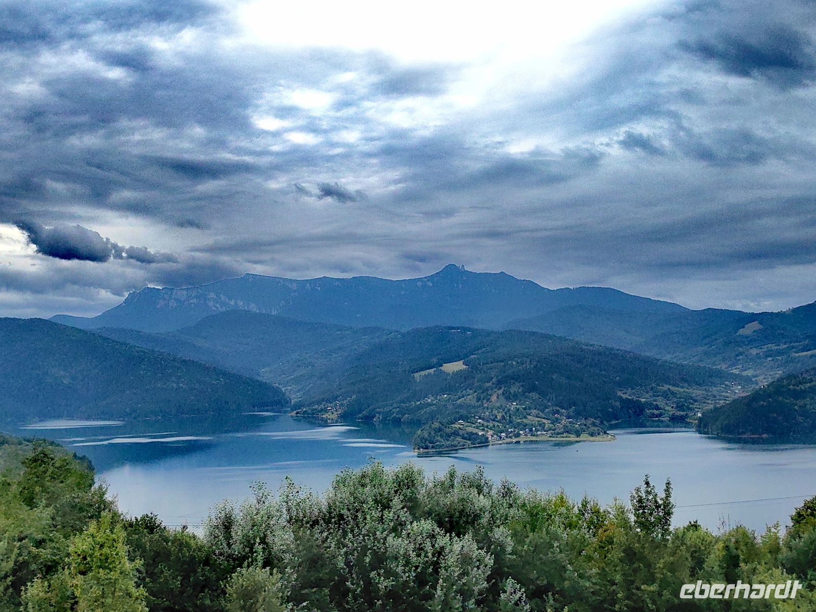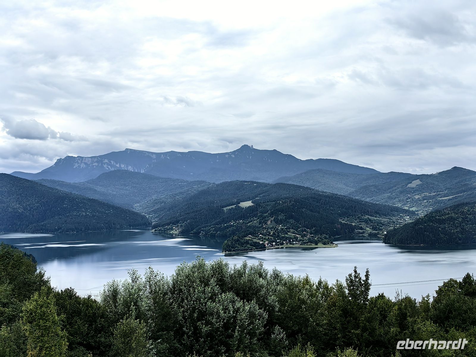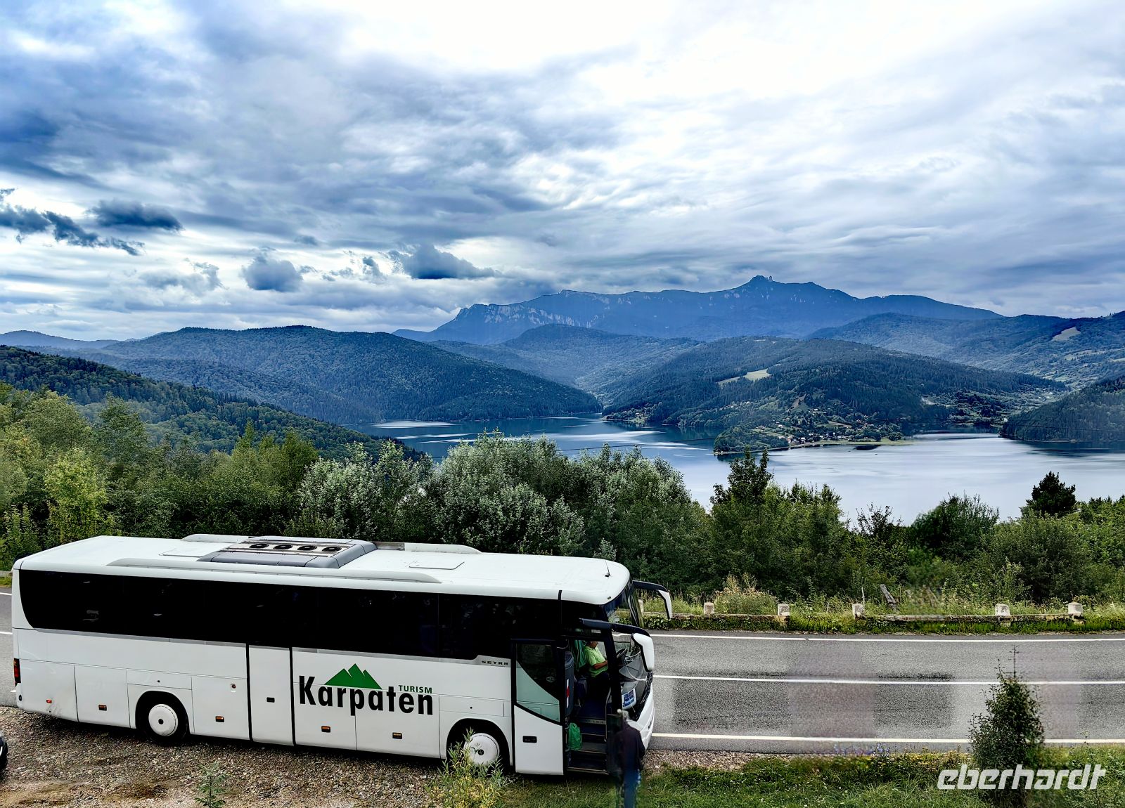 Am Ende der Schlucht erreichen wir den Stausee Bicaz, der wunderschön eingebettet in den Bergen Transsilvaniens liegt. Die Aussicht ist so malerisch, obwohl die Sonne Mühe hat, die dichte Wolkendecke zu druchdringen, daß wir um einen weiteren Fotostopp bitten.