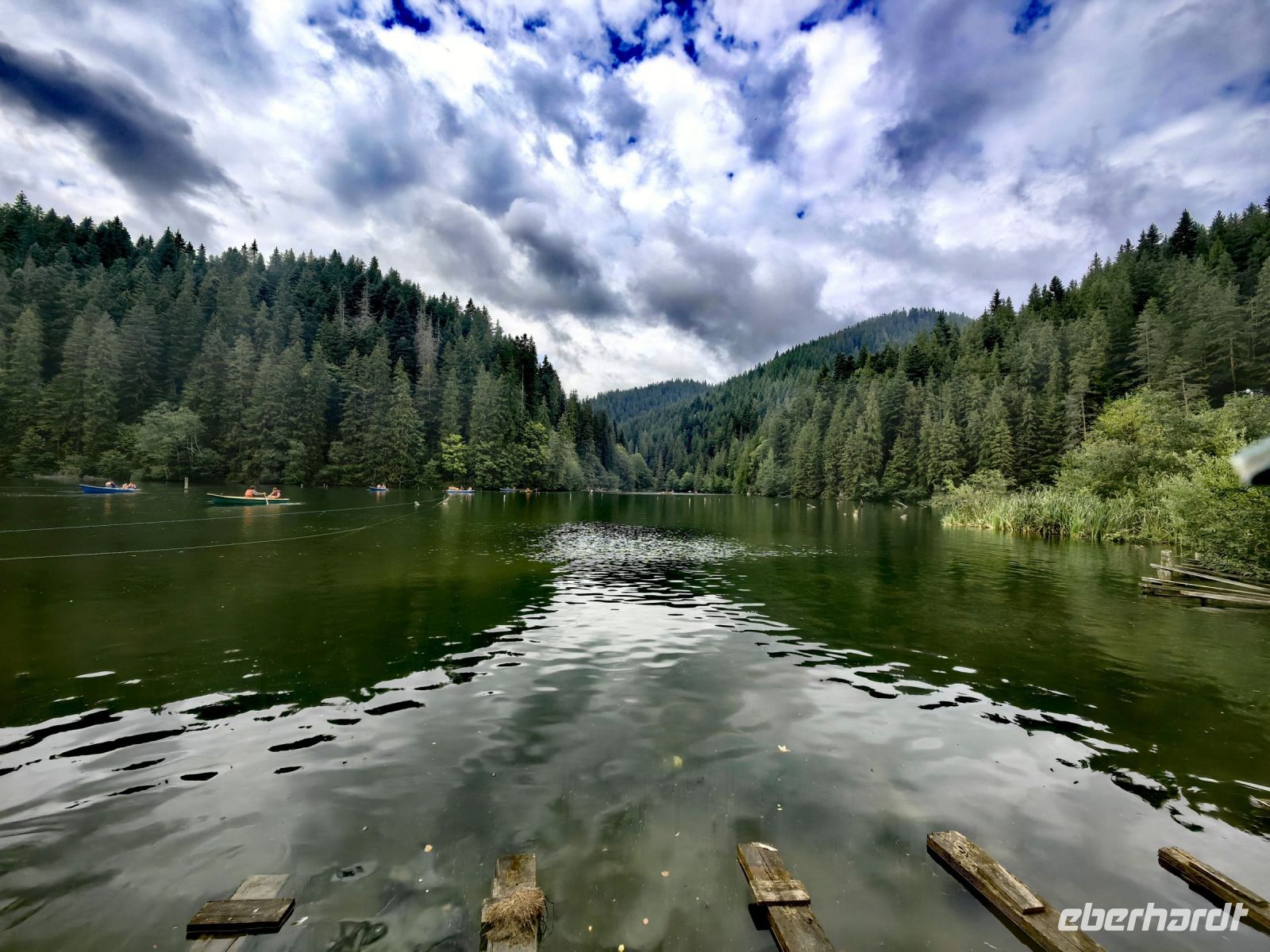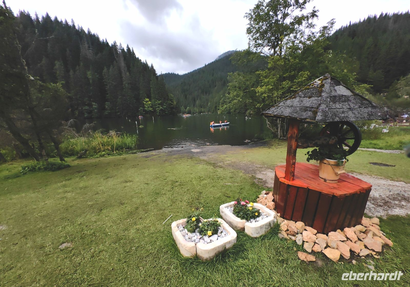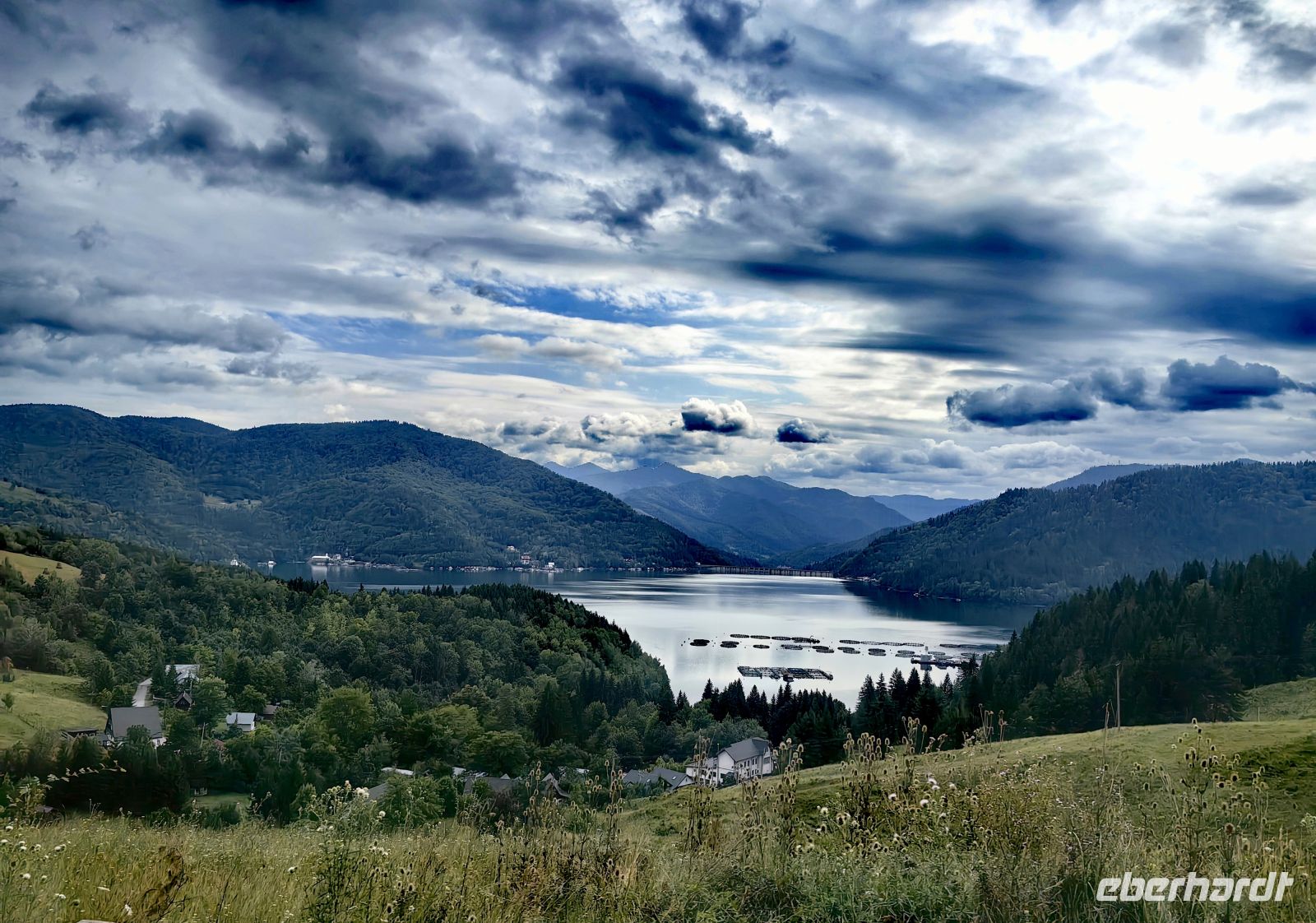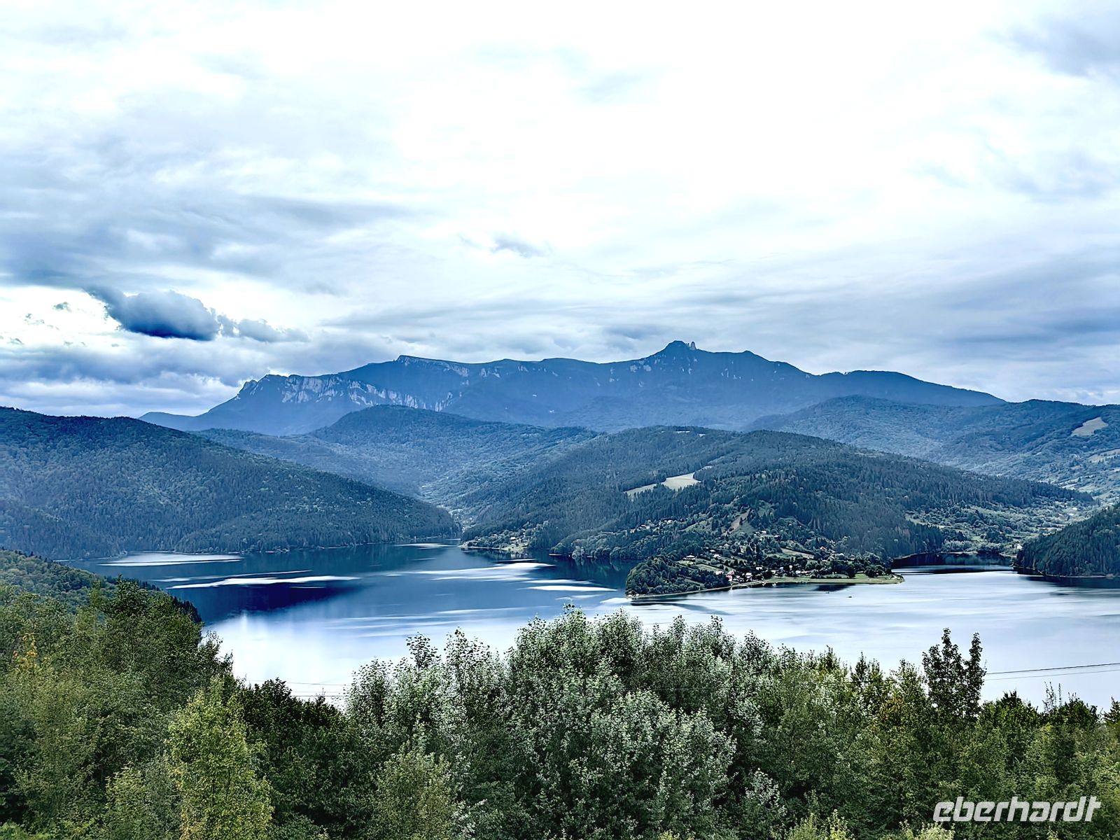 Am Ende der Schlucht erreichen wir den Stausee Bicaz, der wunderschön eingebettet in den Bergen Transsilvaniens liegt. Die Aussicht ist so malerisch, obwohl die Sonne Mühe hat, die dichte Wolkendecke zu druchdringen, daß wir um einen weiteren Fotostopp bitten.